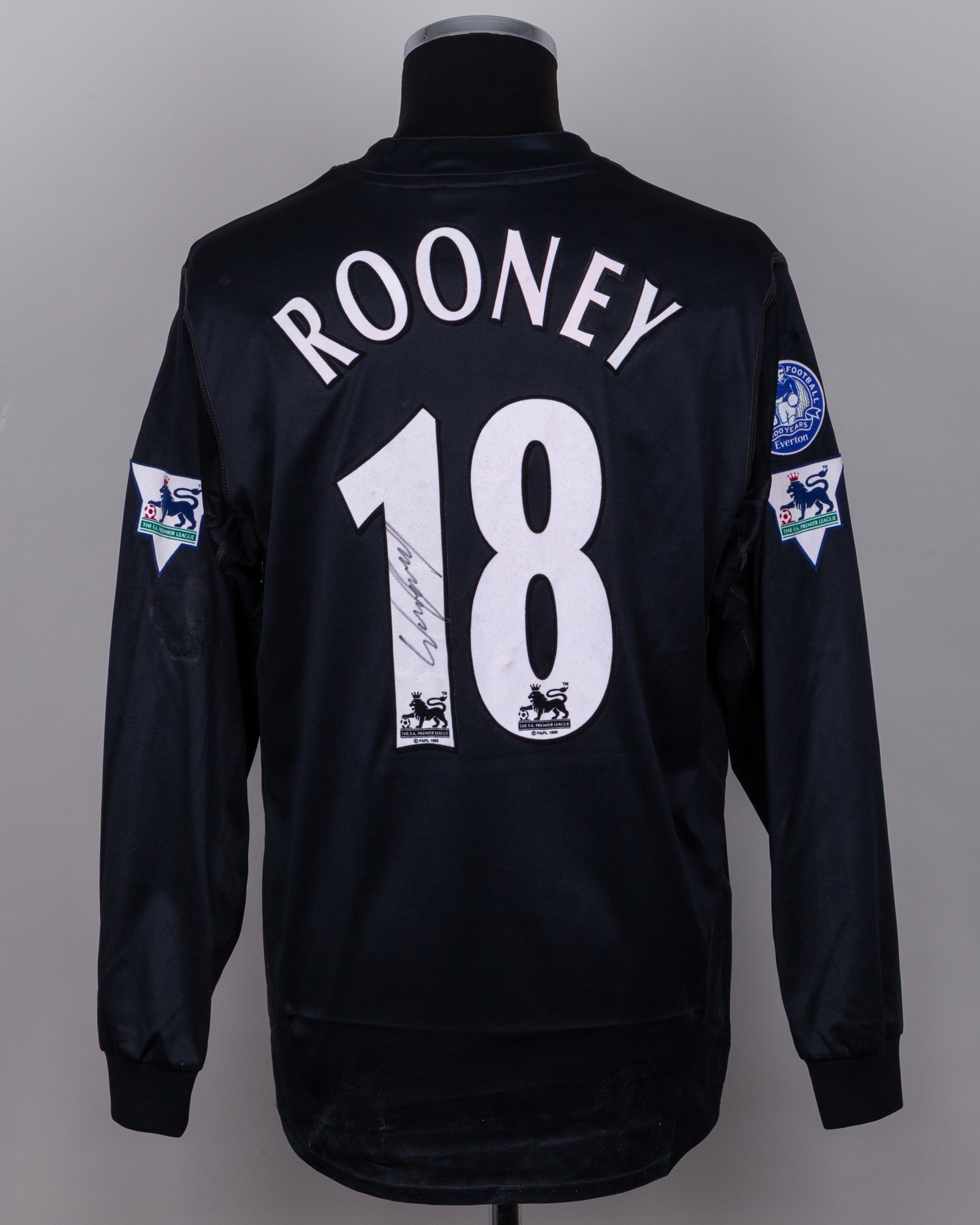 Wayne Rooney black No.18 Everton autographed long-sleeved shirt, 2002