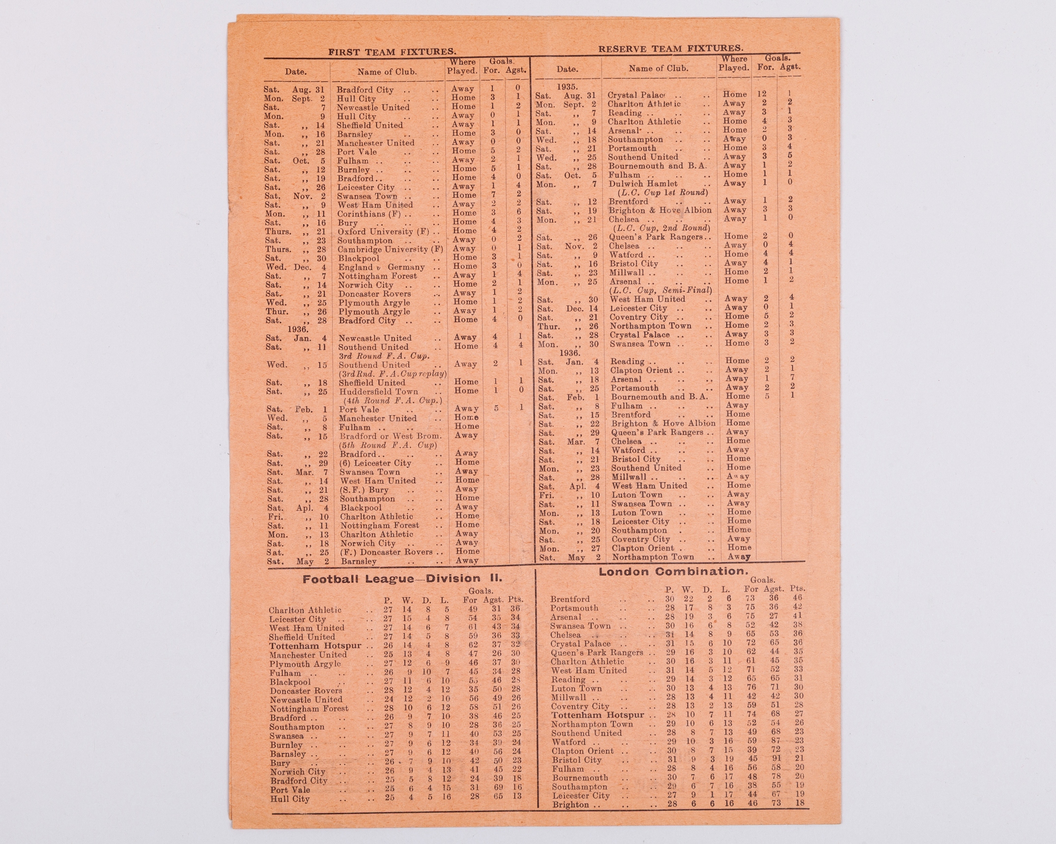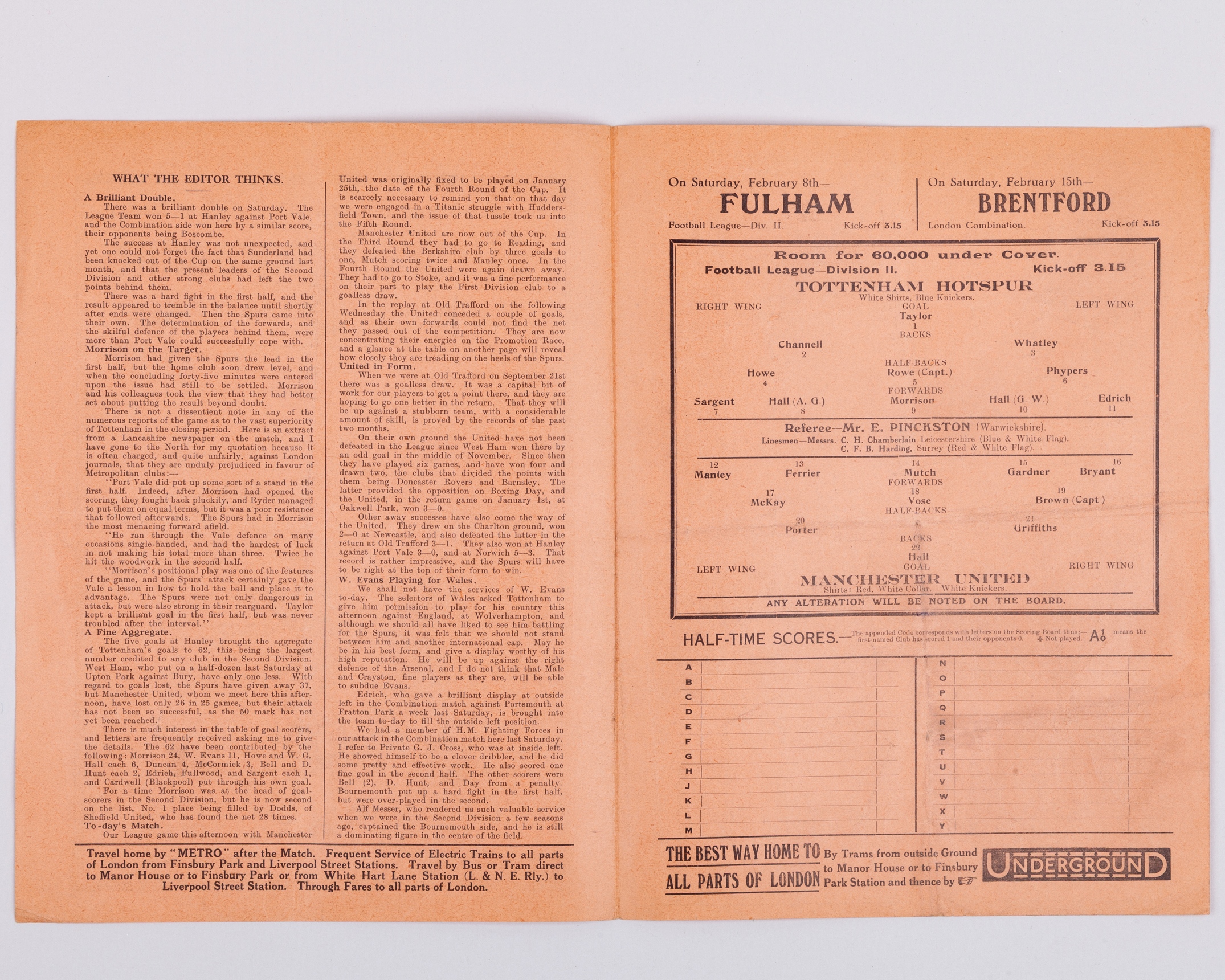 Tottenham Hotspur v. Manchester United match programme, 5th February 1936, folds