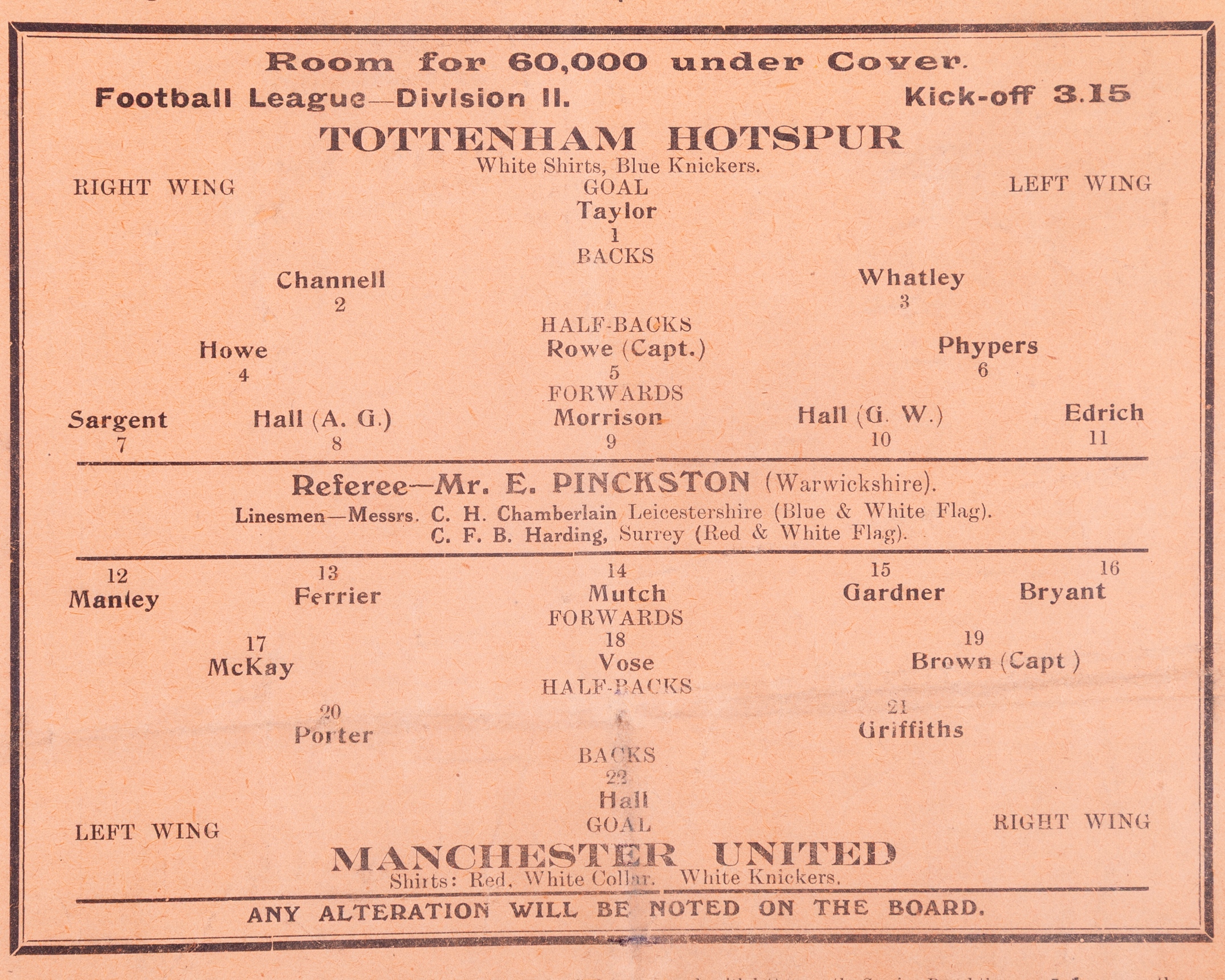 Tottenham Hotspur v. Manchester United match programme, 5th February 1936