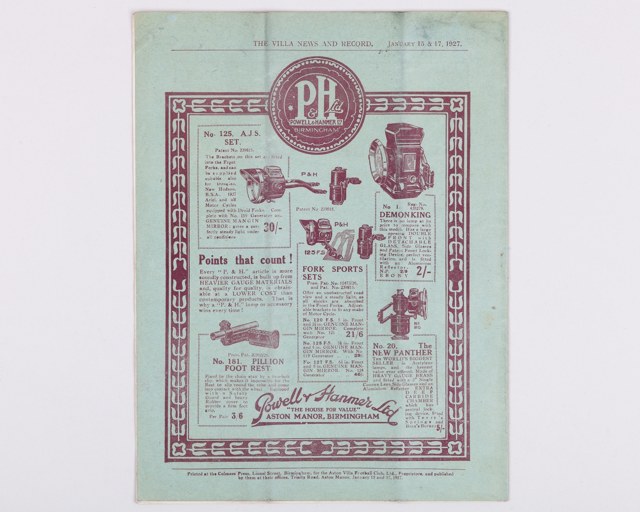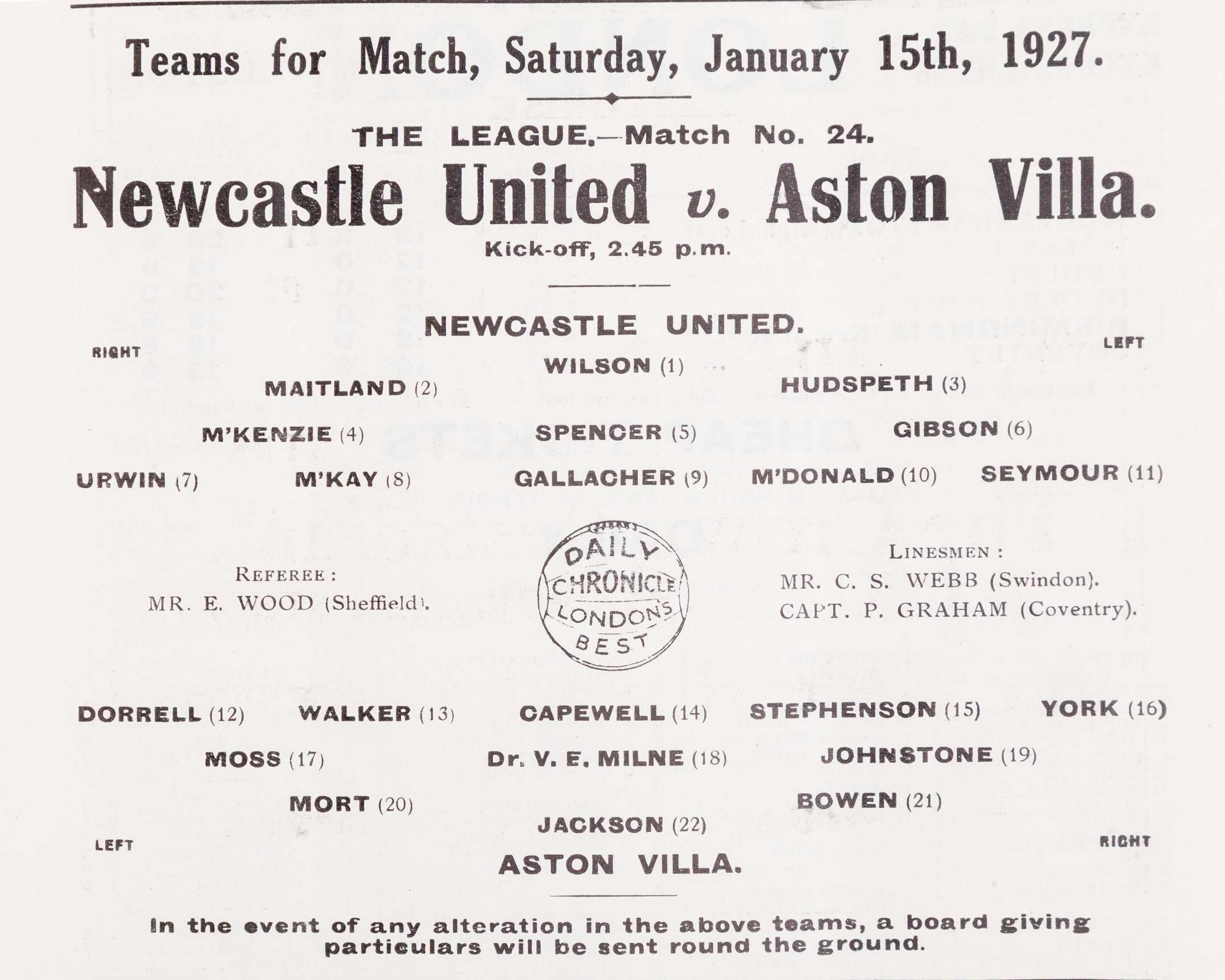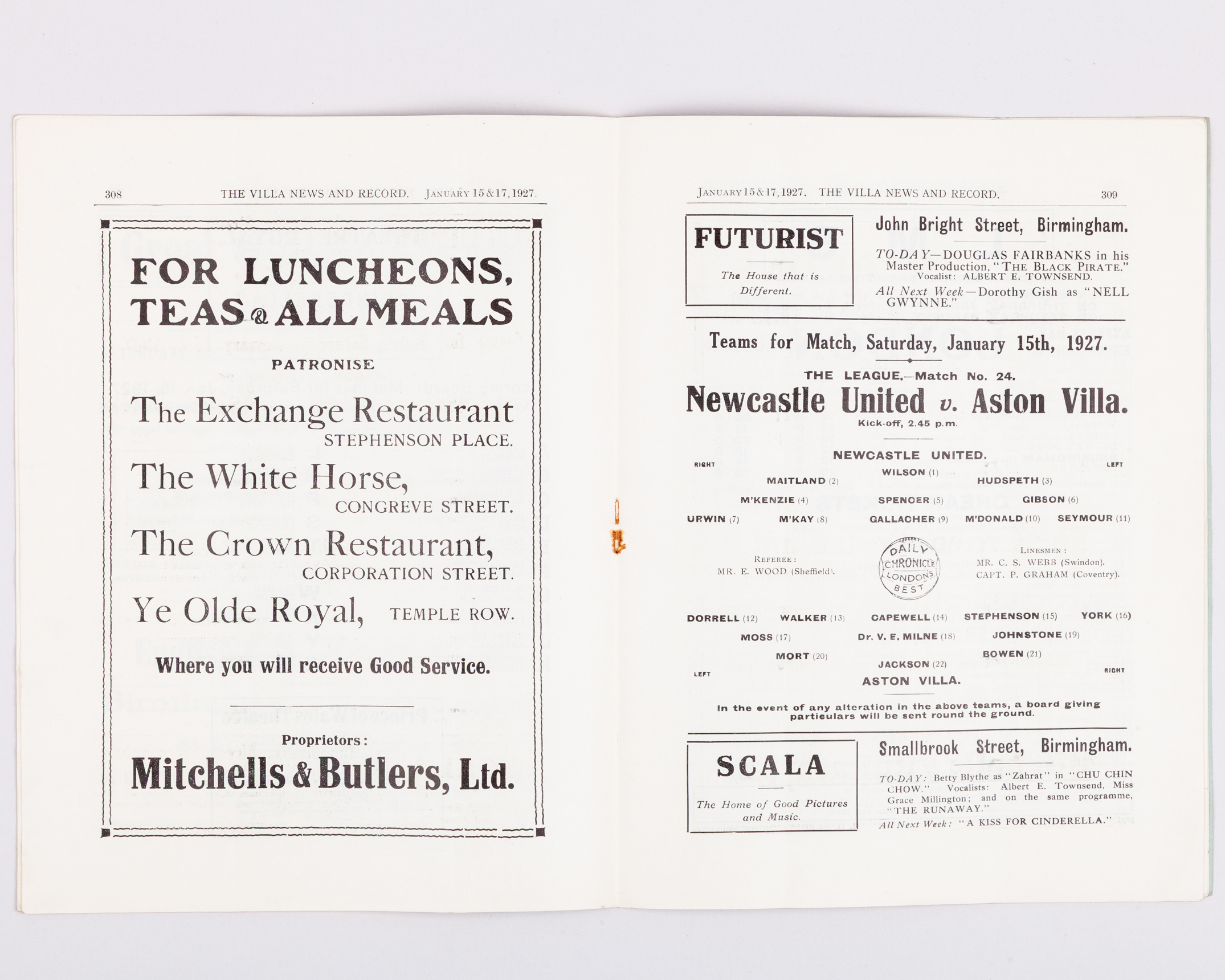 Reading v. Manchester United, F.A.Cup 3rd round, 2nd replay match programme, 17th January 1927 combined with Aston Villa v. Newcastle United, league programme, 15th January 1927, folds, lacking staple