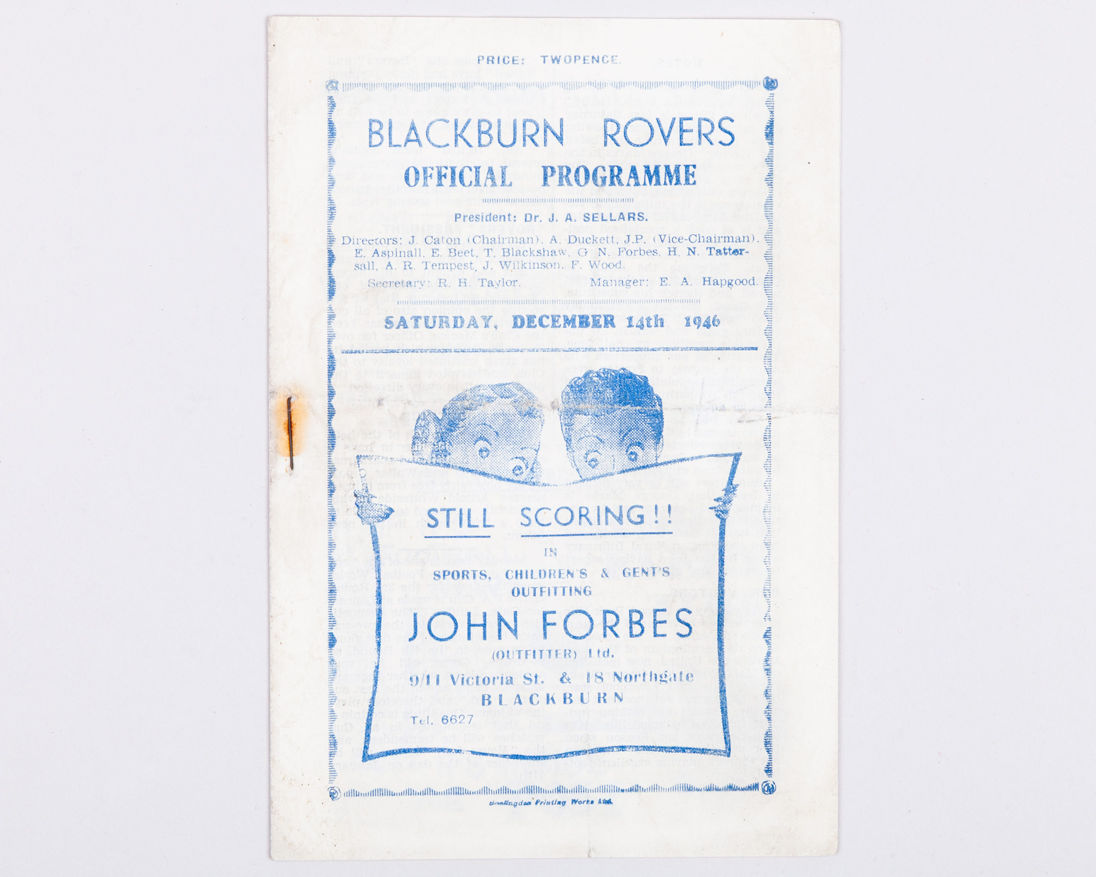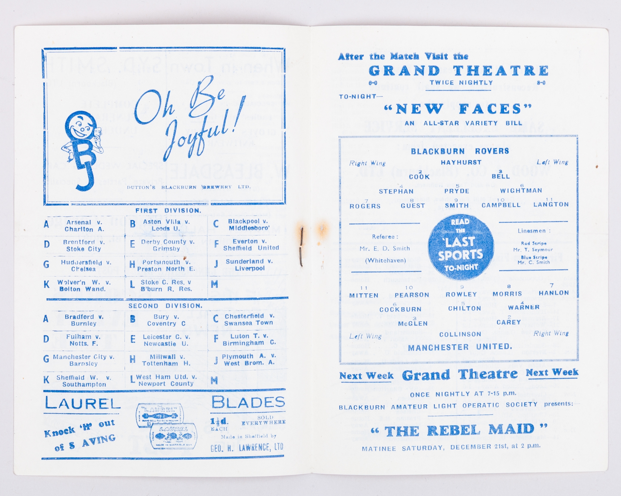 Blackburn Rovers v. Manchester United match programme, 14th December 1946