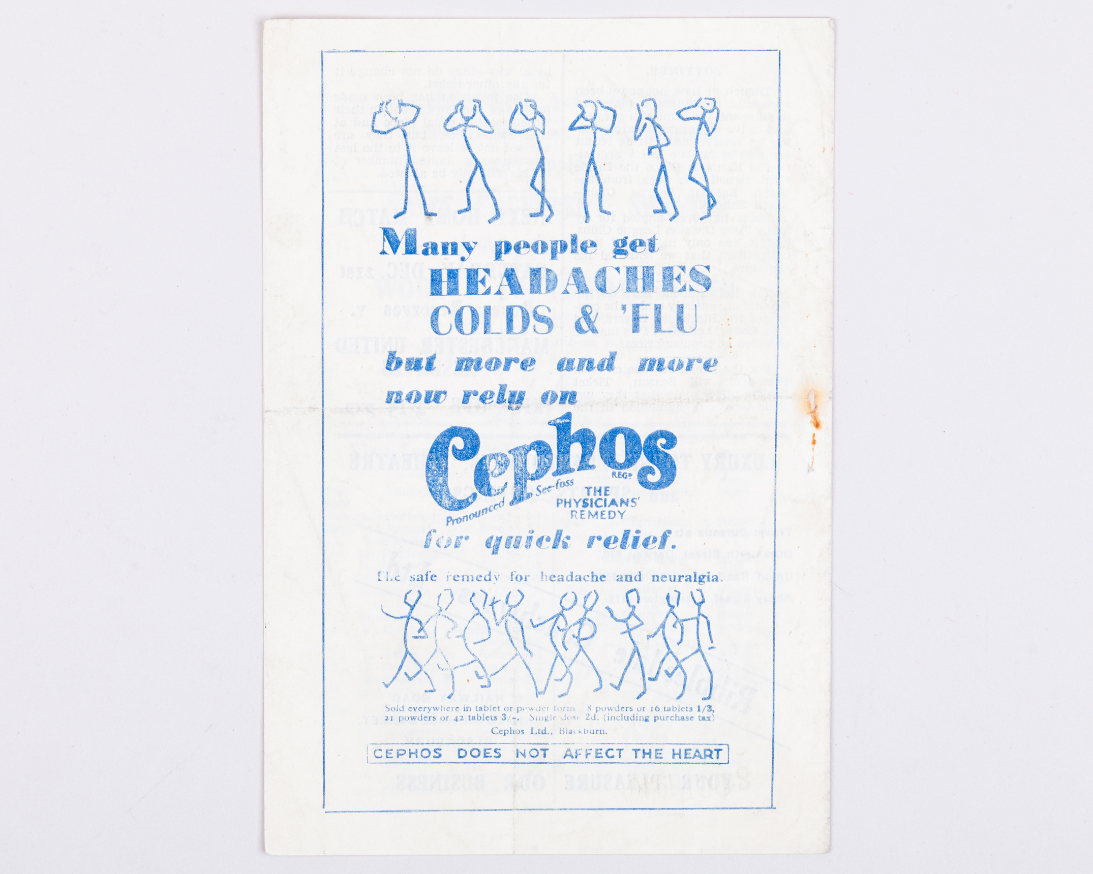 Blackburn Rovers v. Manchester United match programme, 14th December 1946, folds