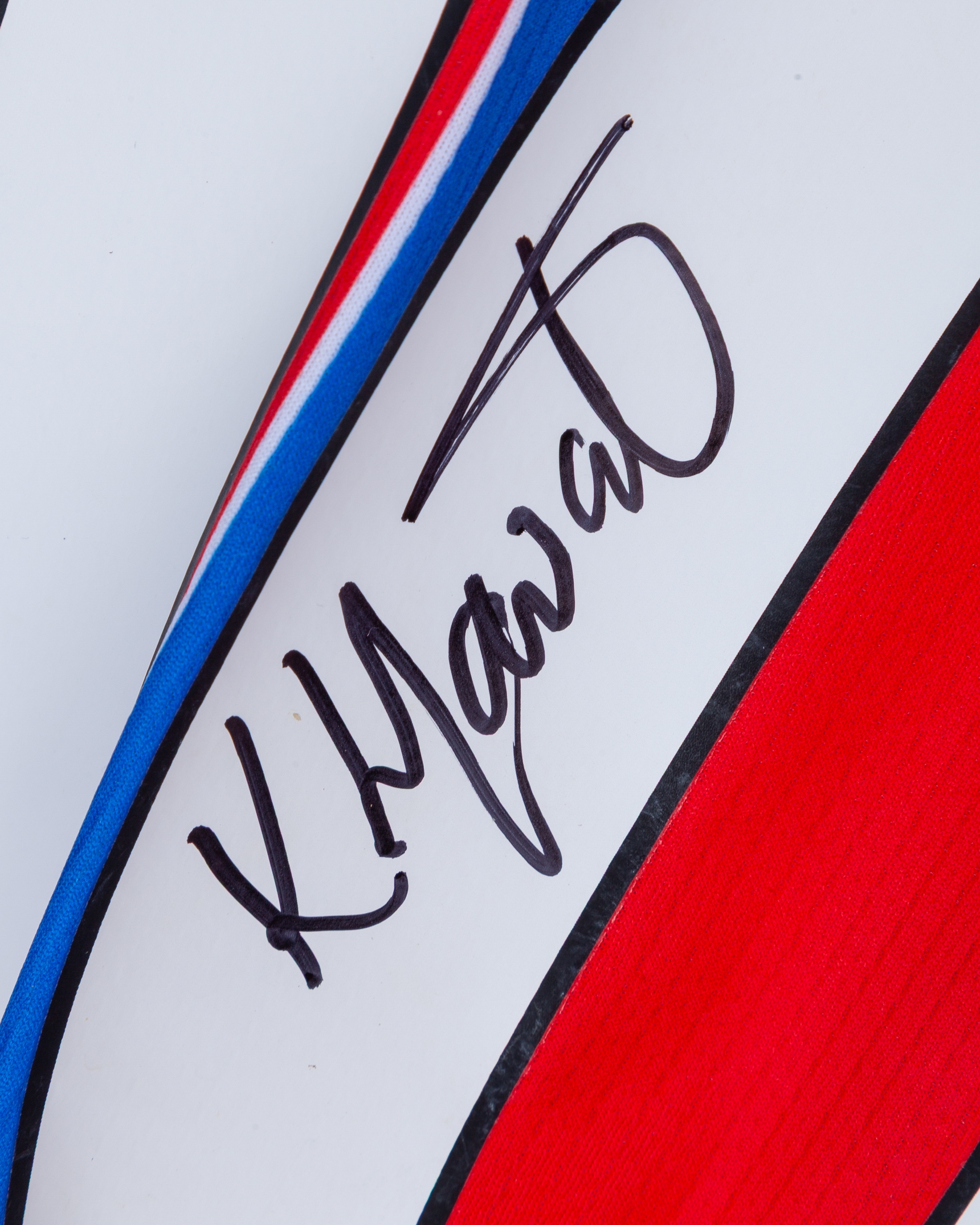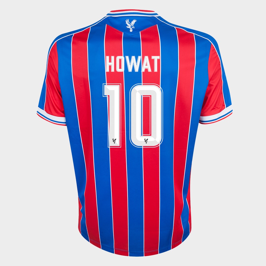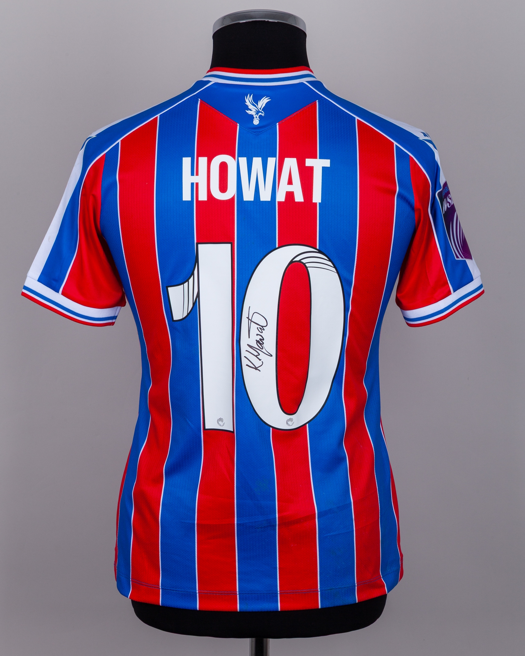 Kirsty Howat red and blue No.10 Crystal Palace v. Sheffield United match worn signed short-sleeved shirt, Women's Super League 2 2025, Macron, with crew-neck collar and printed badge with commemorative poppy, the reverse lettered HOWAT, the right sleeve with WSL 2 logo
