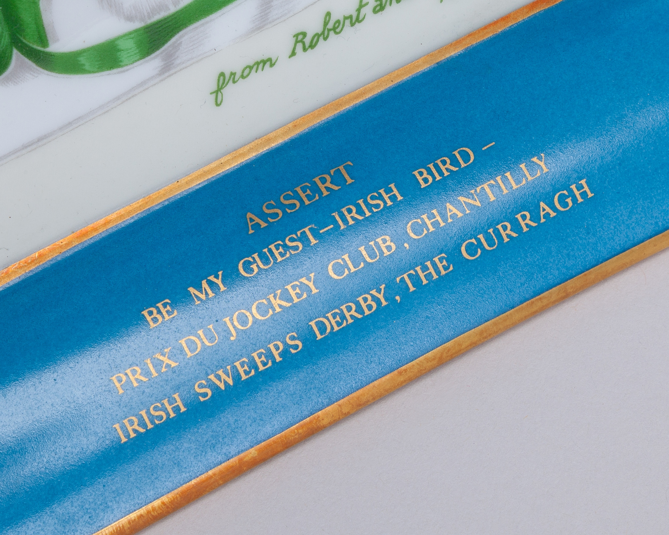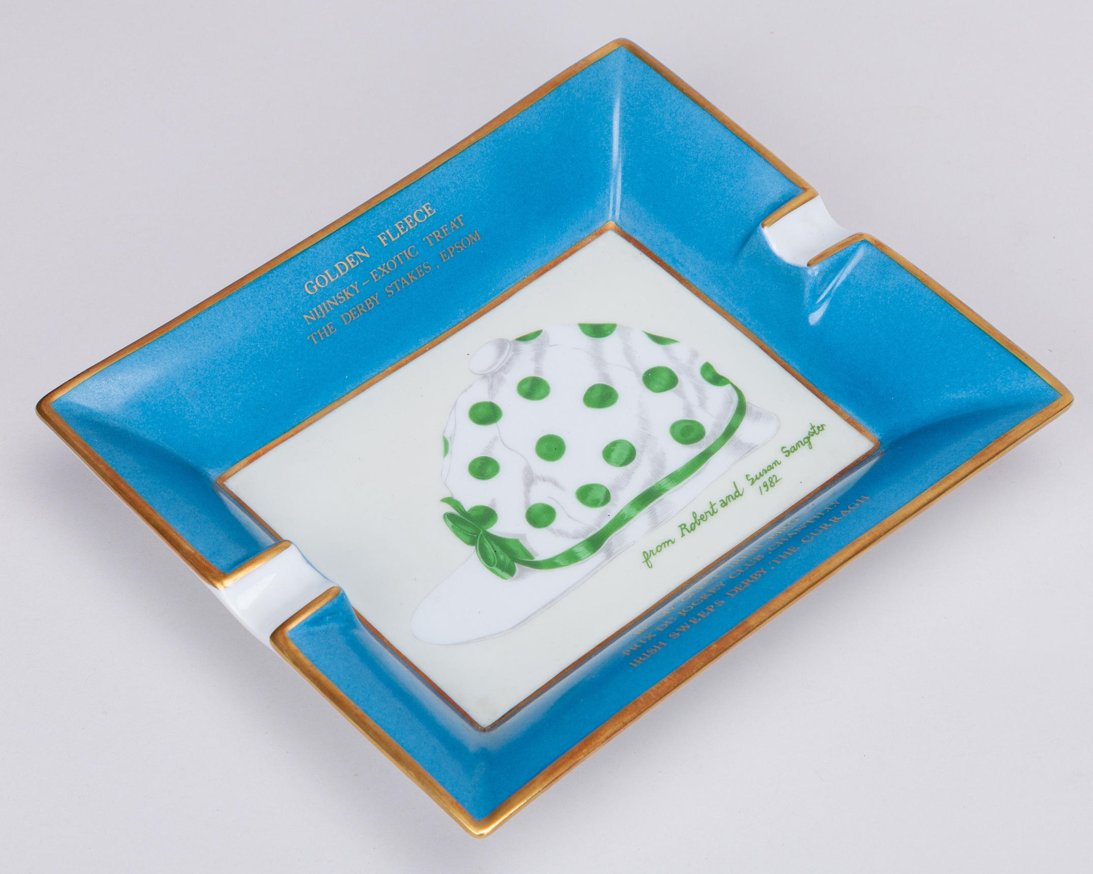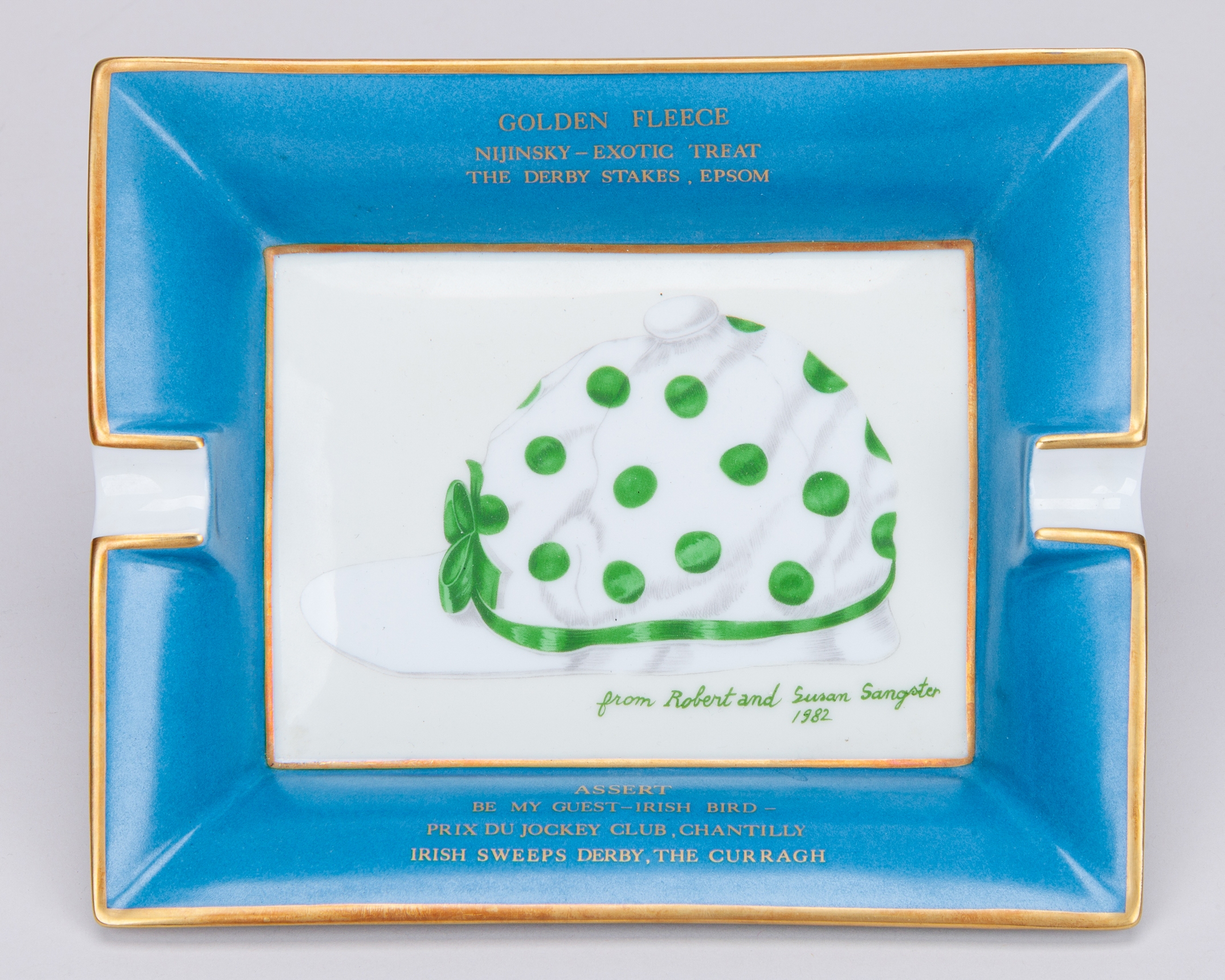 Hermes, Paris, porcelain ashtray privately commissioned by Robert and Susan Sangster as a gift to commemorate the 1982 Epsom Derby winner Golden Fleece,