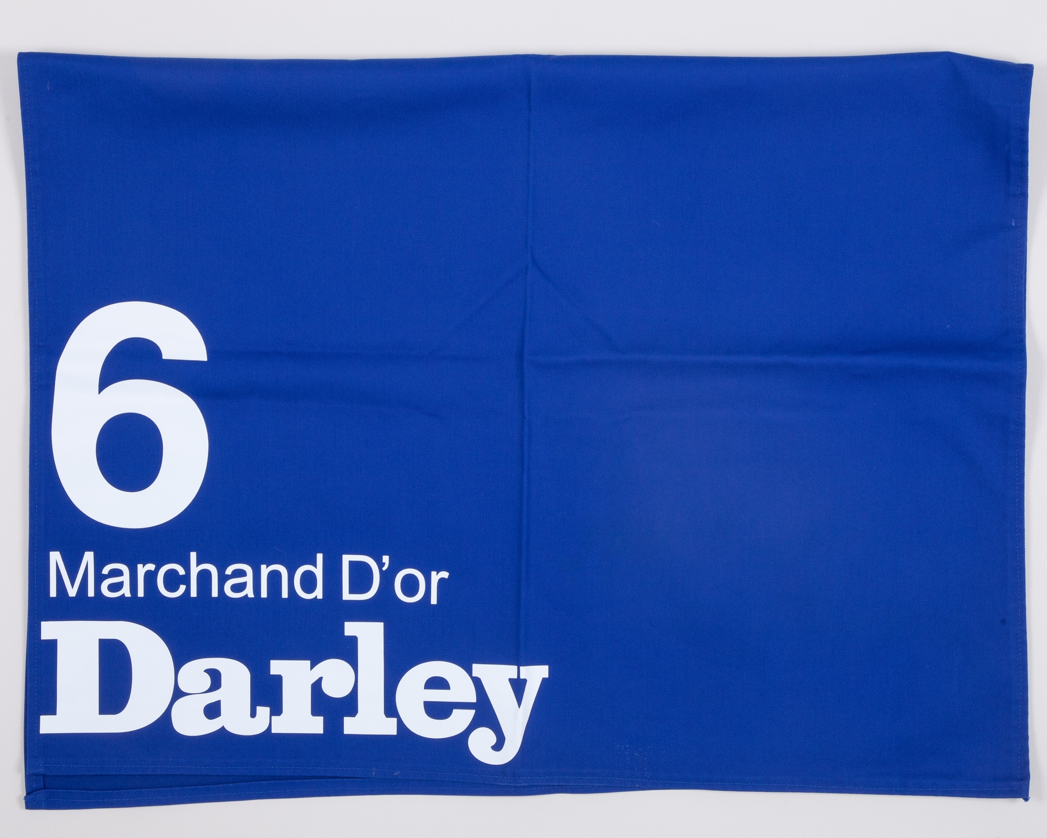 The No.6 number cloth race-used by Marchand D'Or when winning the 2008 July Cup at Newmarket,