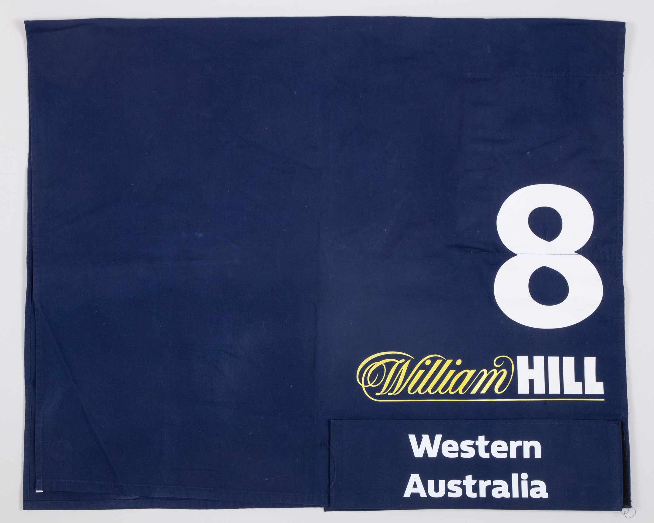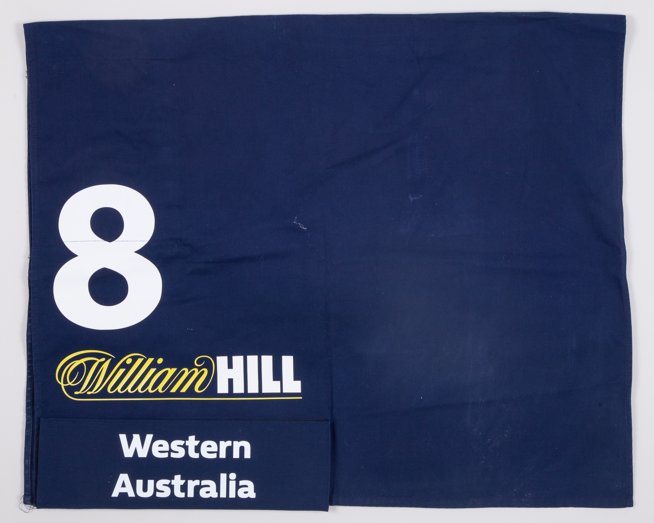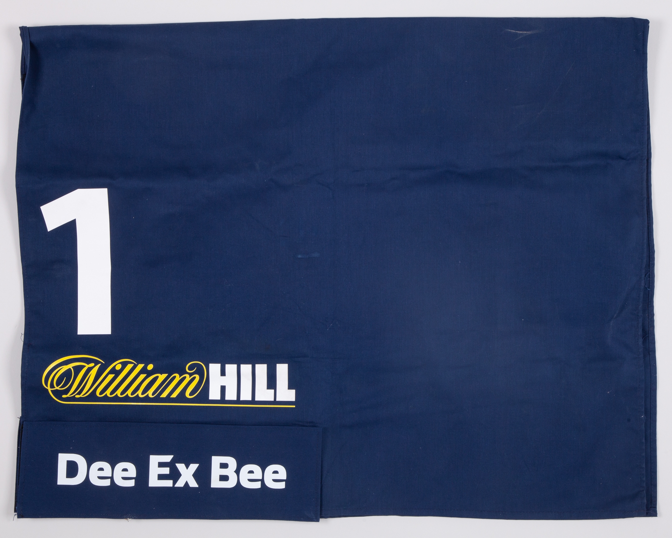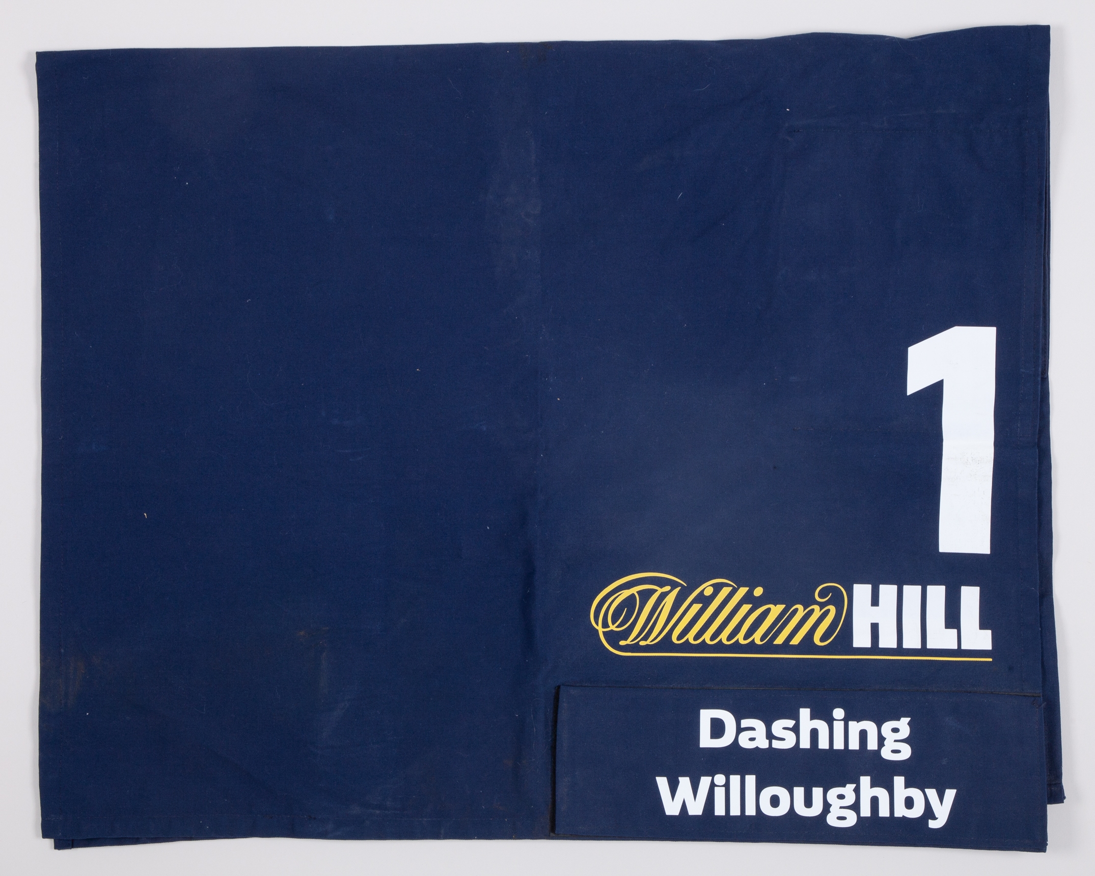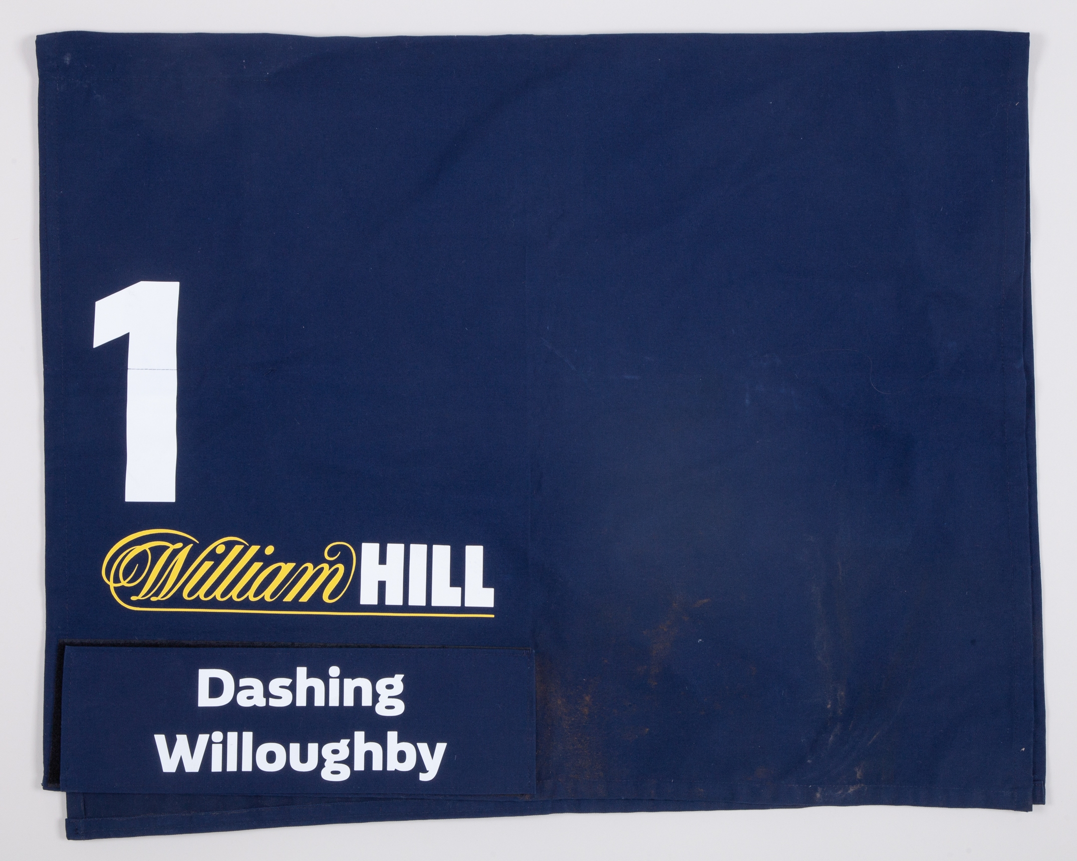 for DEE EX BEE No.1 in 2018, and from the 2019 renewal DASHING WILLOUGHBY No.1and WESTERN AUSTRALIA No.8, dark blue cloths with white number and lettering and William Hill race sponsor's logo