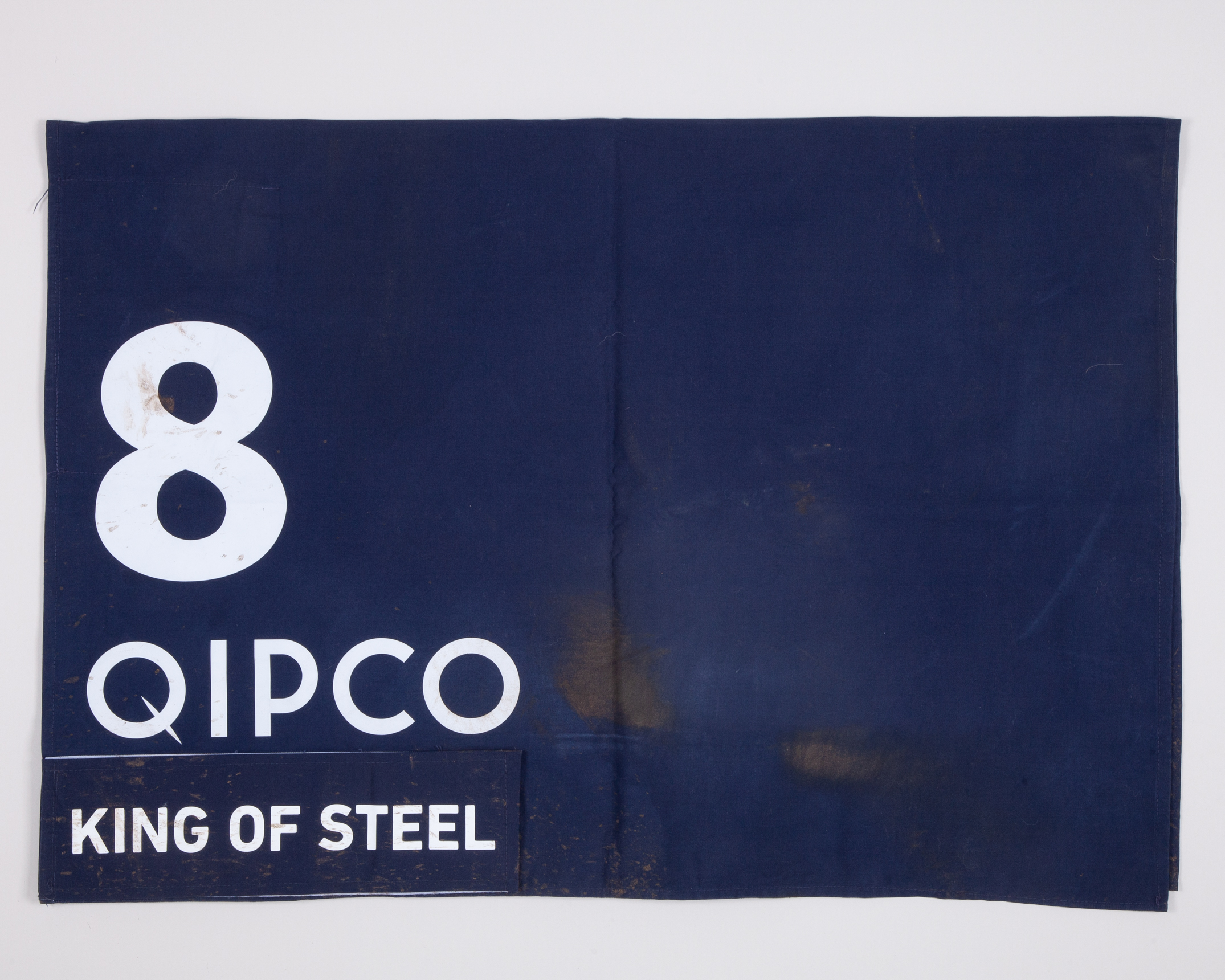 No.8 number cloth worn by King of Steel when winning the 2023 QIPCO Champions Stakes at Ascot: Frankie Dettori's Farewell Year final win in England,