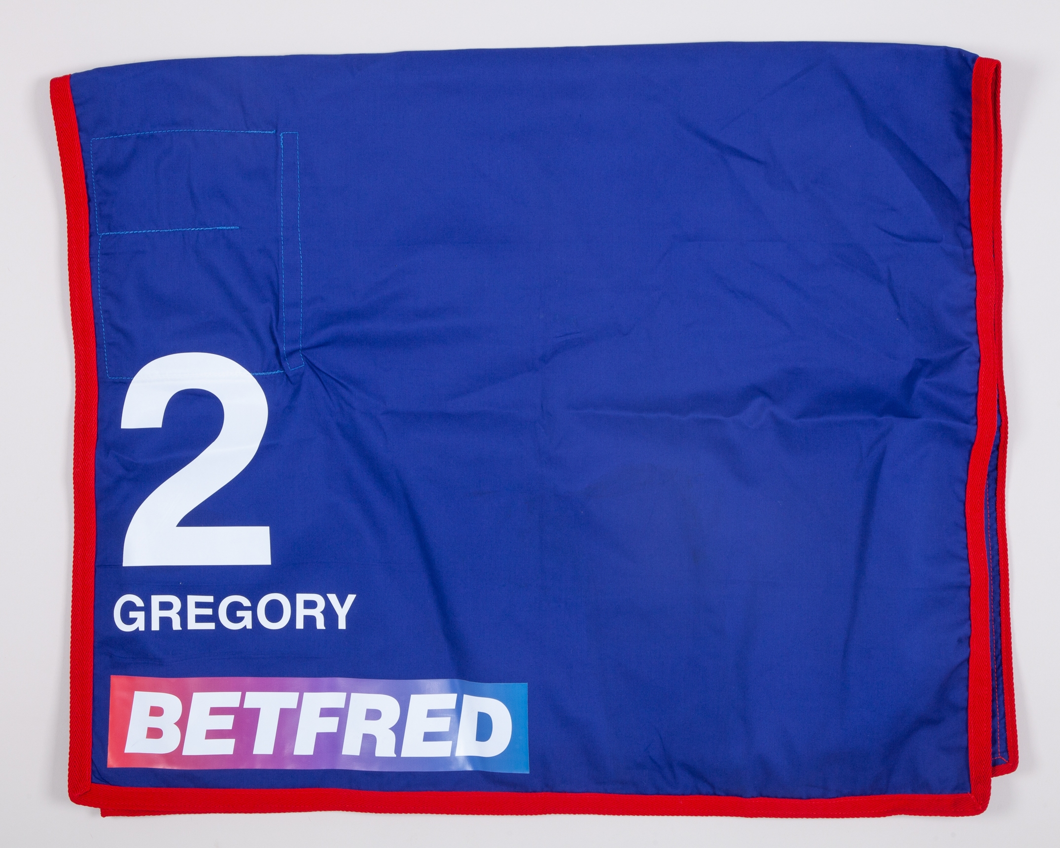 No.2 number cloth worn by Gregory in the 2024 Betfred Doncaster Cup at Doncaster