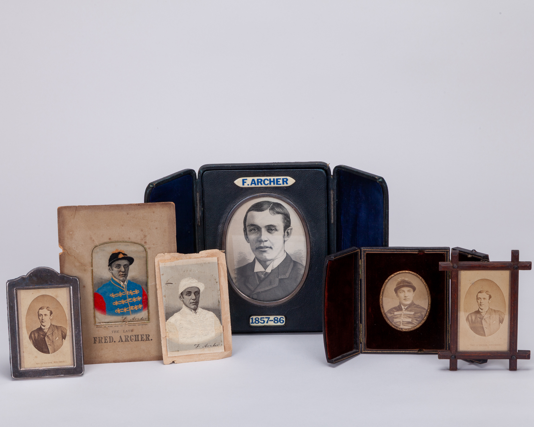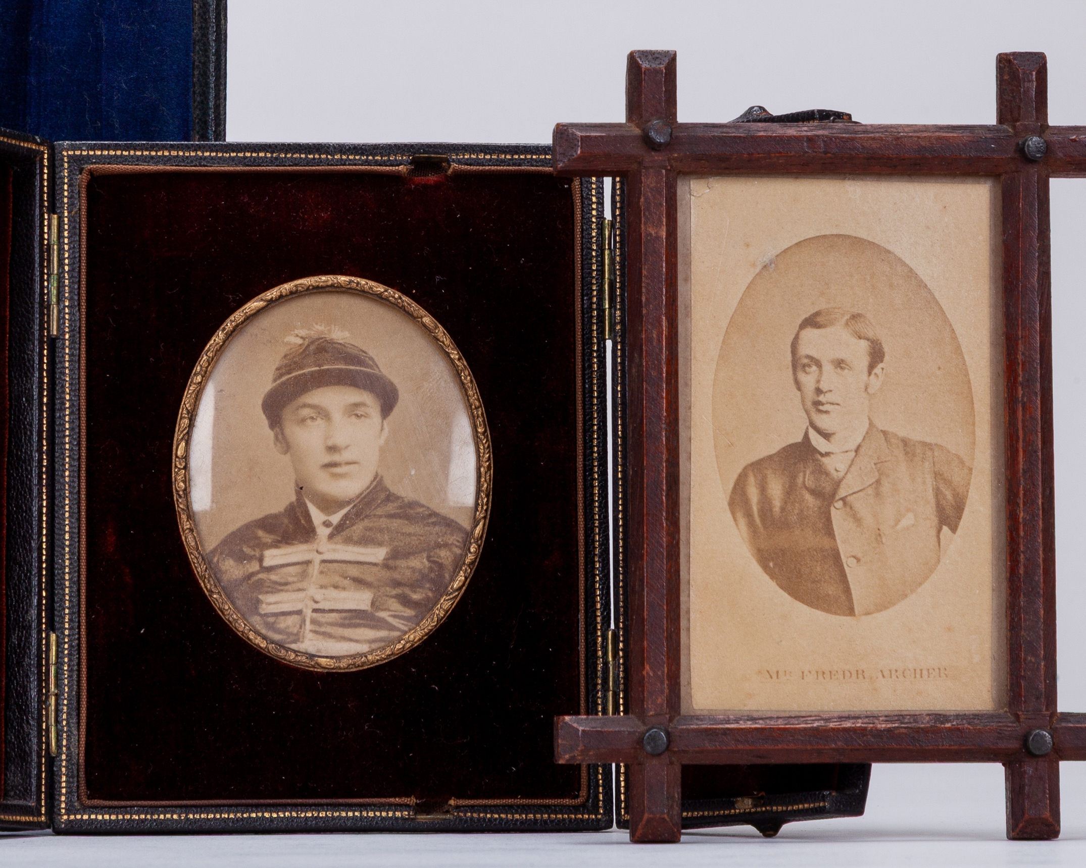 A group of photographs and collectibles relating to the Victorian jockey Fred Archer,