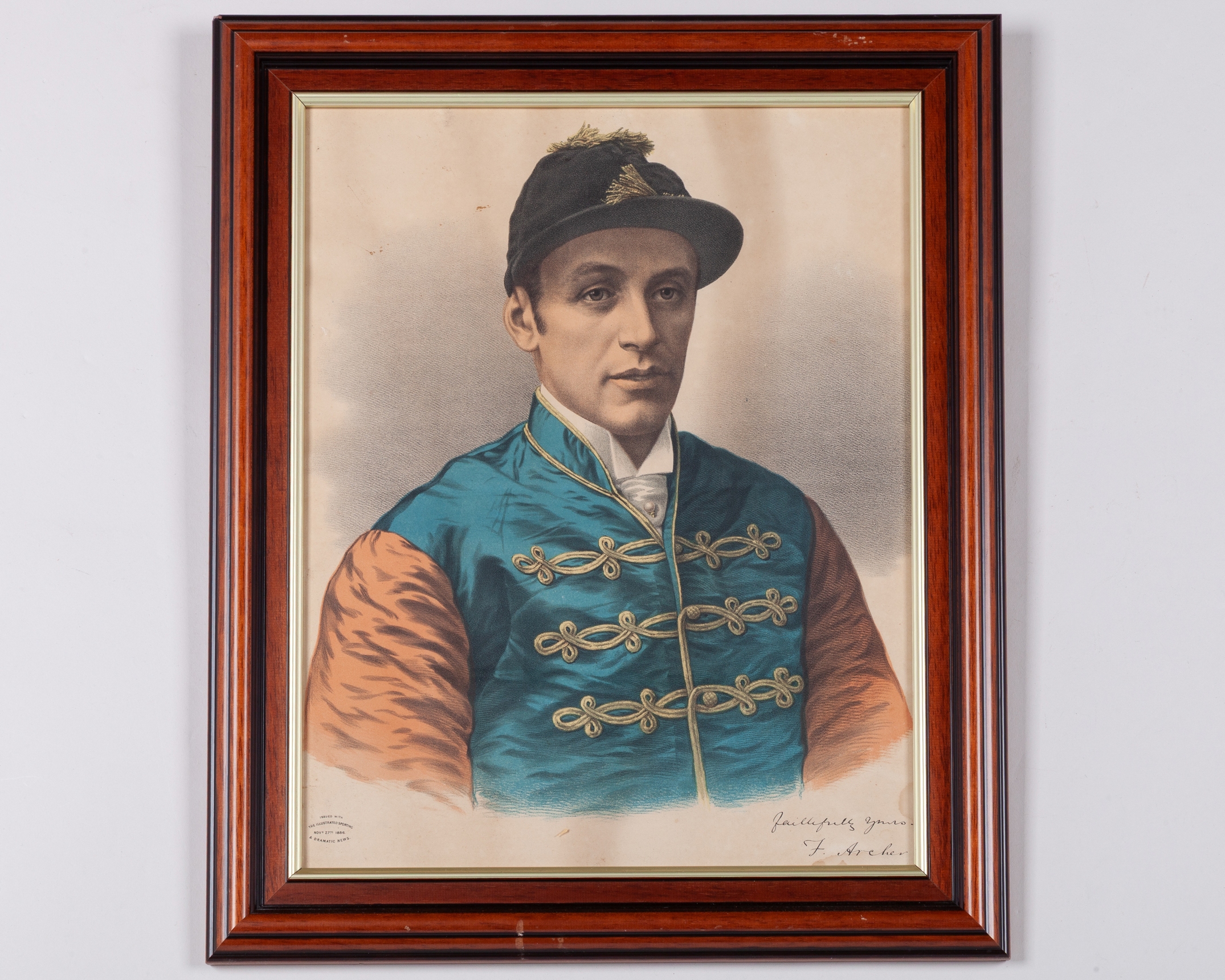 published 19 days after the jockey's death by The Illustrated Sporting & Dramatic News, 27th November 1886, in modern frame under glass, the title legend from the original print has been cut and pasted onto the backboard
