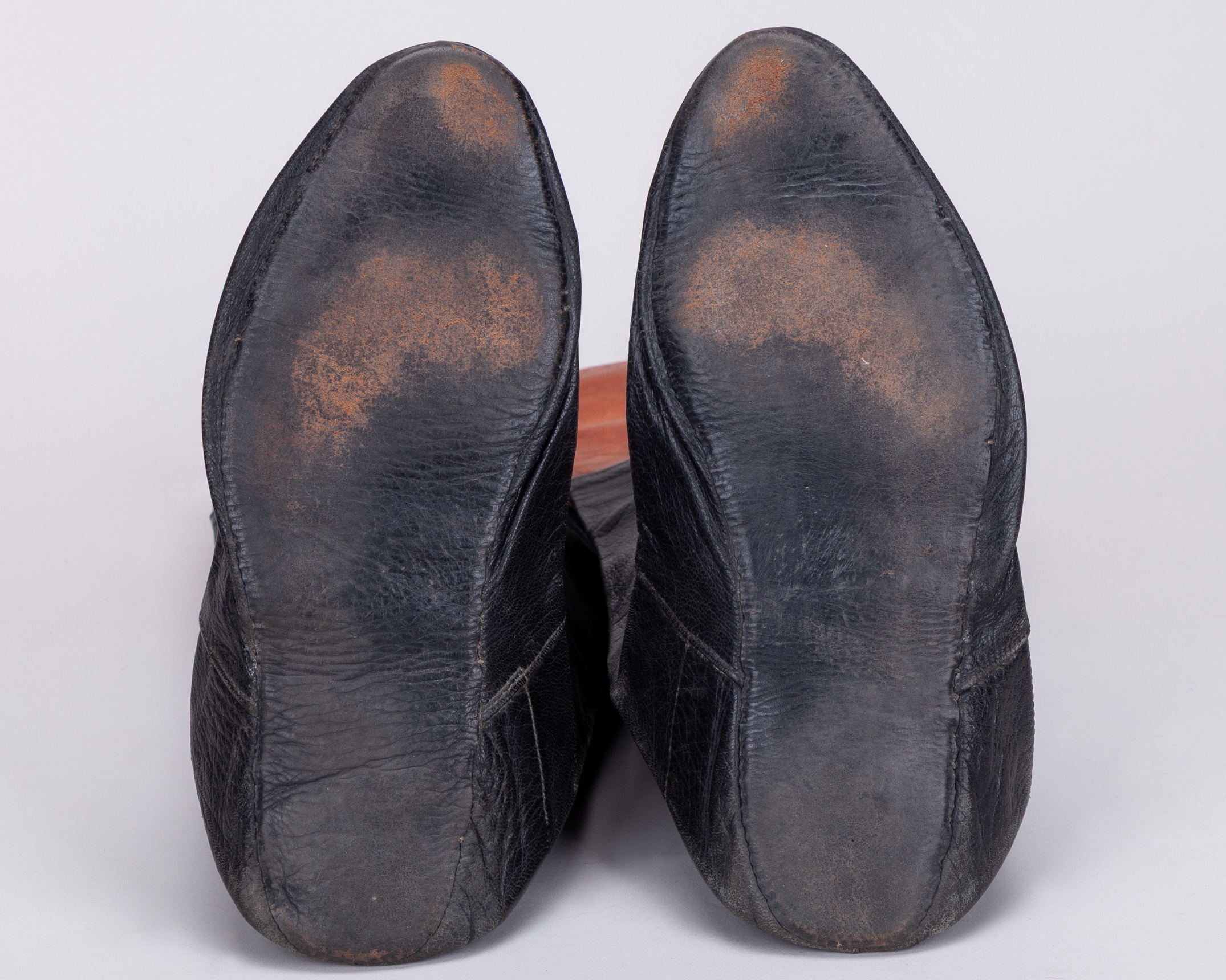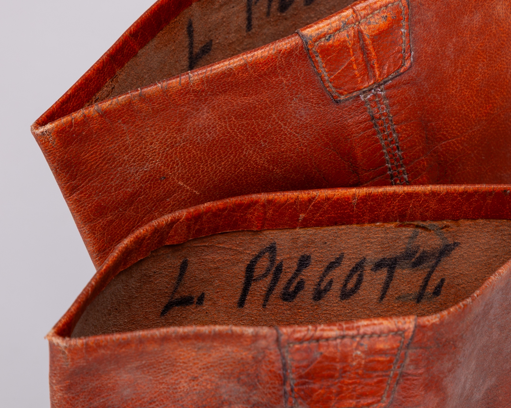 black & tan leather with no solid heels or soles, both signed by the legendary jockey and both named inside to Lester Piggott