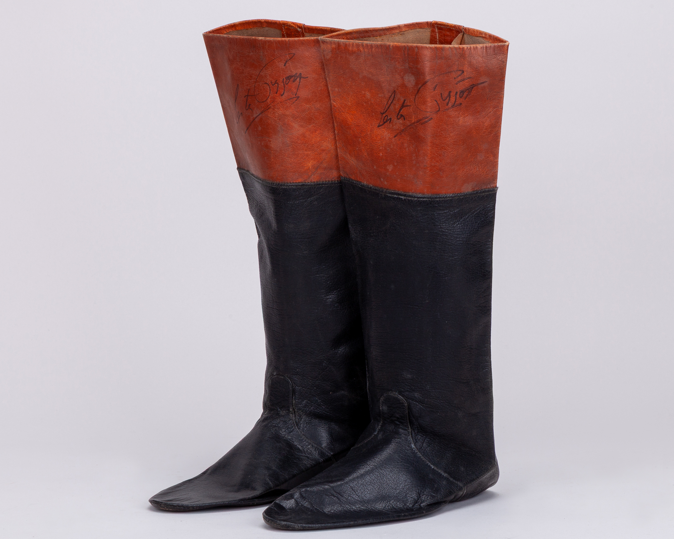 Signed pair of Lester Piggott lightweight jockey boots
