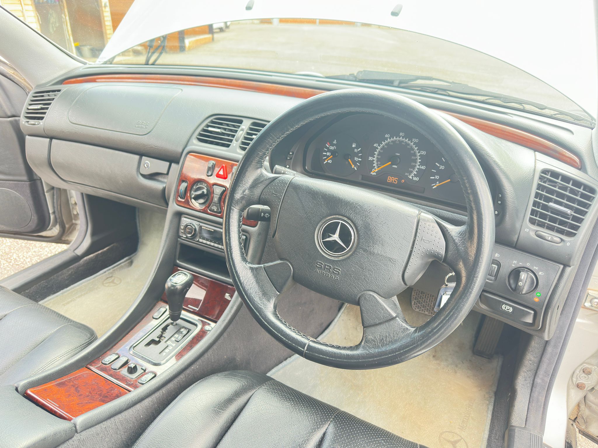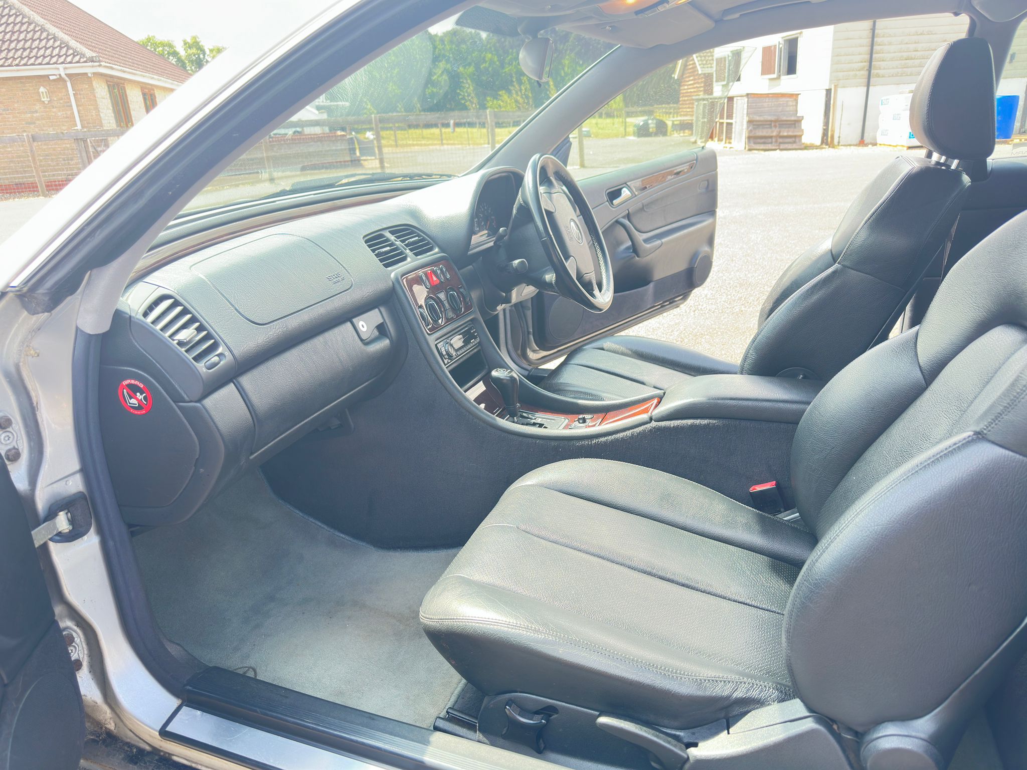 a unique opportunity to purchase an iconic modern classic Mercedes, purchased new by an iconic Jockey, this 1998 Mercedes CLK320 Elegance Automatic Coupe was purchased brand new by Lester Piggott on 6th February 1998, the vendor who was a personal friend of Mr Piggott and himself an experienced jockey purchased the vehicle directly from Mr Piggott in October 2002 and has owned it ever since, finished in Brilliant Silver with Anthracite leather and Walnut trim the car has all of the usual period refinements including automatic gearbox, power steering, antilock braking, electric windows, air-conditioning, electric mirrors, remote central locking, alloy wheels and the legendary 3.2 litre V6 engine, the car is in presentable condition for the age and mileage, the mileage is currently circa 147,000 miles which is barely run in for one of these models so it could either be driven and enjoyed or simply stored as a potential investment, It has the added benefit of qualifying for low cost classic car insurance as it is over 25 years old, documentation includes the original Mercedes wallet containing various handbooks including the original service booklet with assorted service stamps, Colour Registration Document showing Lester Piggott as the first owner, print out of all the old MOT tests back to 2006, various invoices including a recent fuel pump, an Hpi clear report and Hpi clear certificate and current MOT to April 2026, the vehicle registration number R792 AFC is as purchased by Lester Piggott in 1998