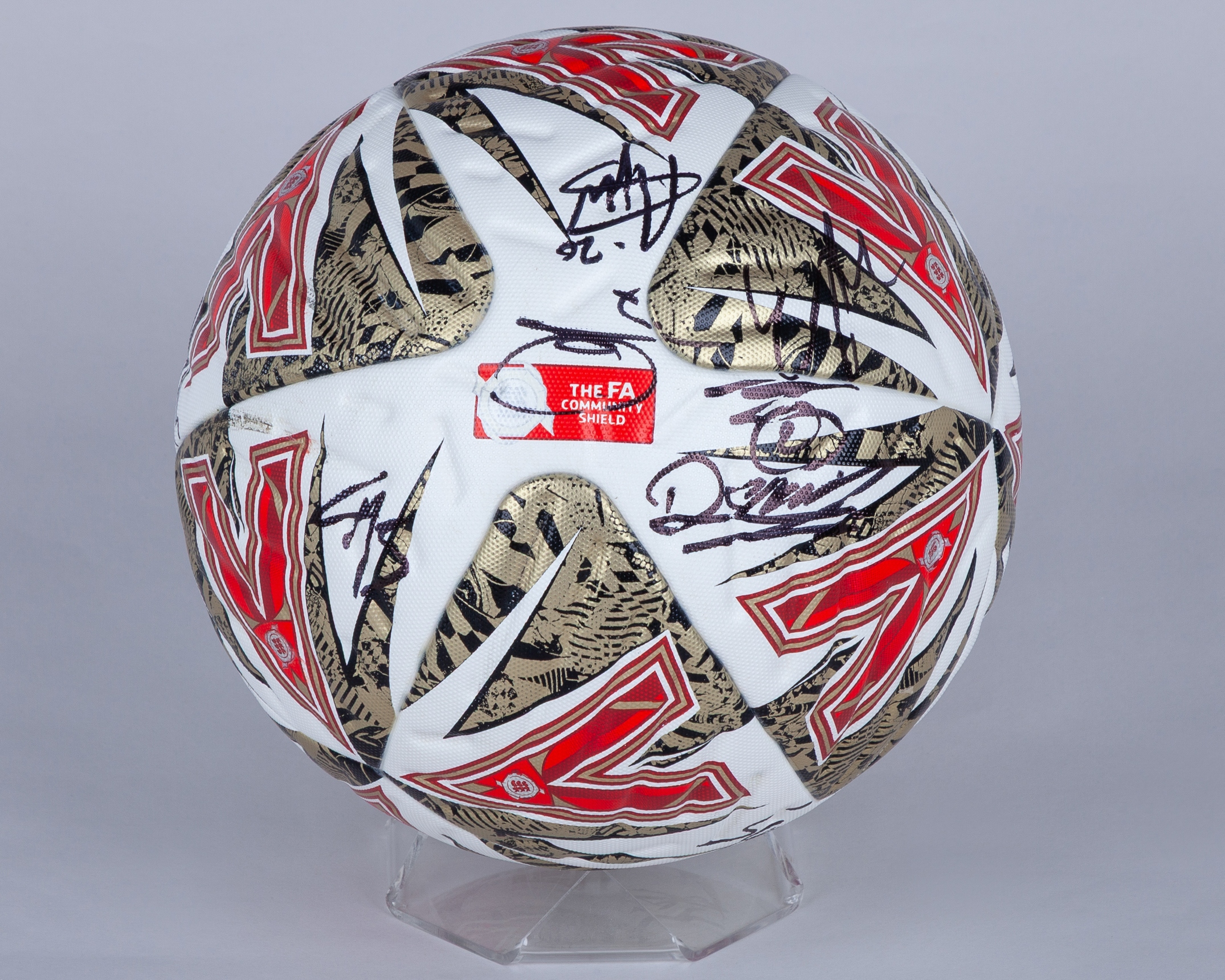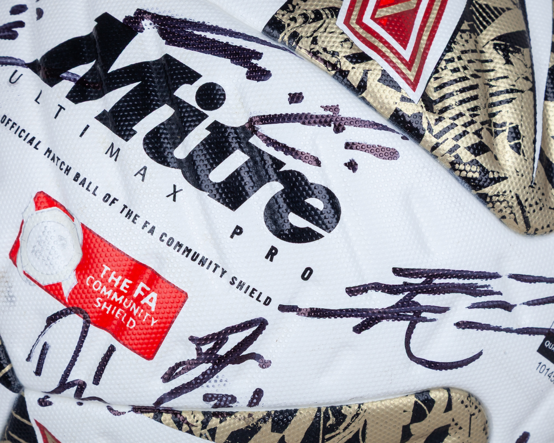 The ball is inscribed with  'Official Match Ball Of The FA Community Shield'