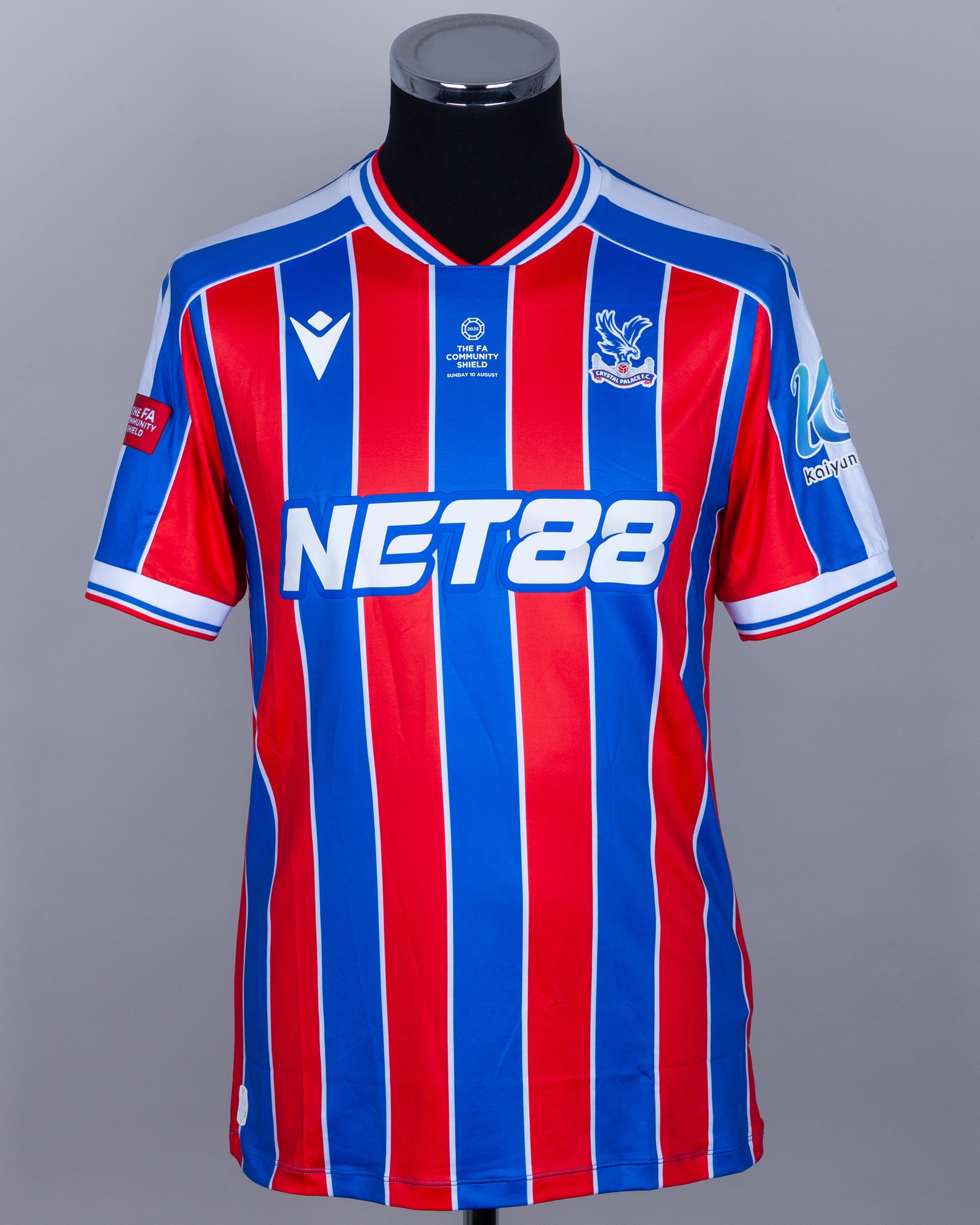 The above shirt was issued to Justin Devenny for the Community Shield match against Liverpool played on 10th August 2025 at Wembley, Crystal Palace winning the match 3-2 on penalties. Coming off the bench, the young Northern Ireland international showed great composure by scoring the decisive penalty to seal victory.