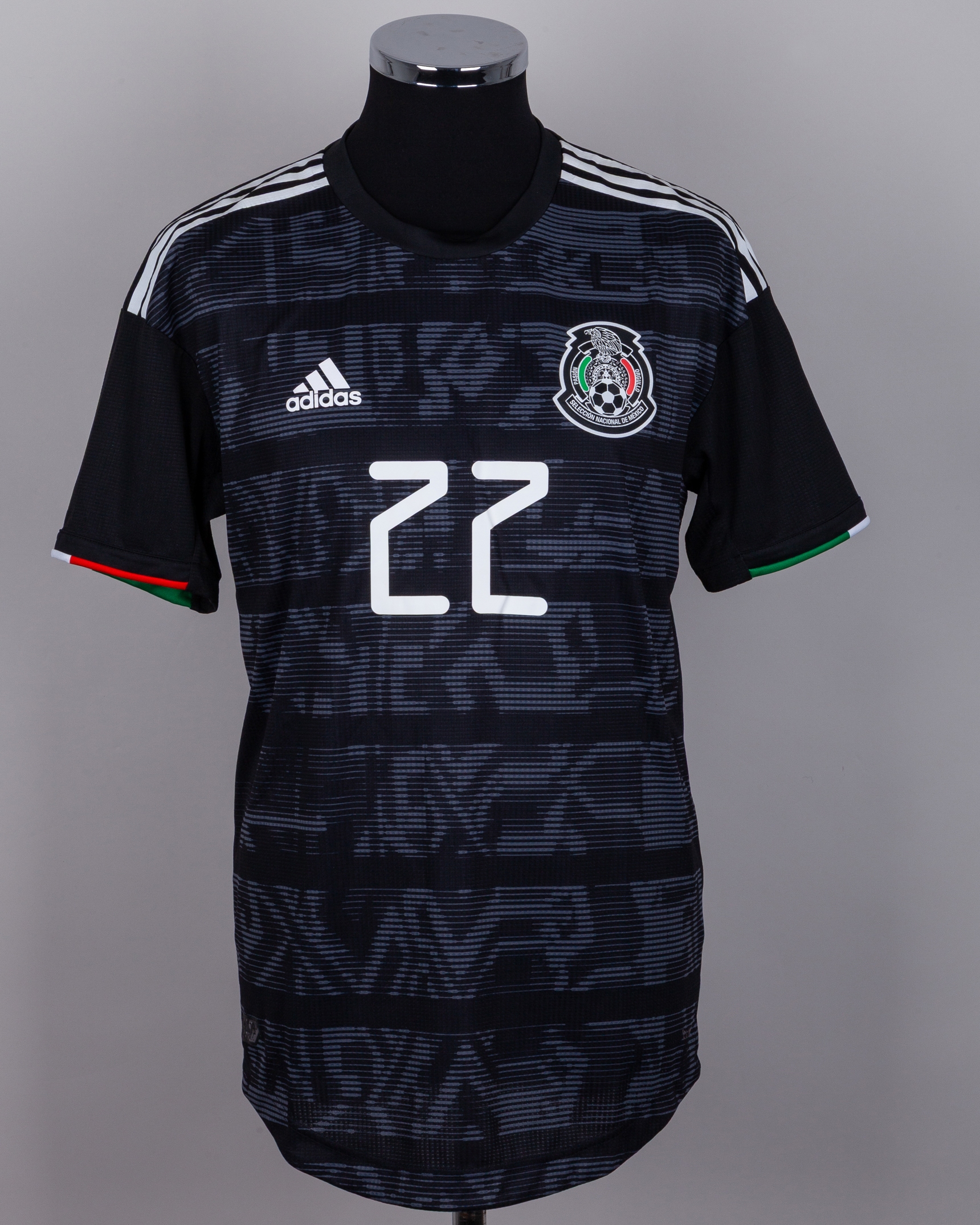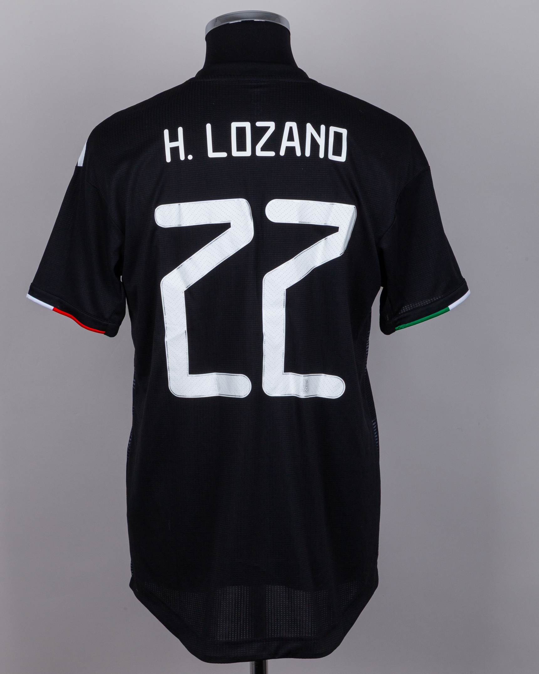 Hirving Lozano black No.22 Mexico short-sleeved shirt, Adidas, 6, with crew-neck collar and printed badge, the reverse lettered H. LOZANO