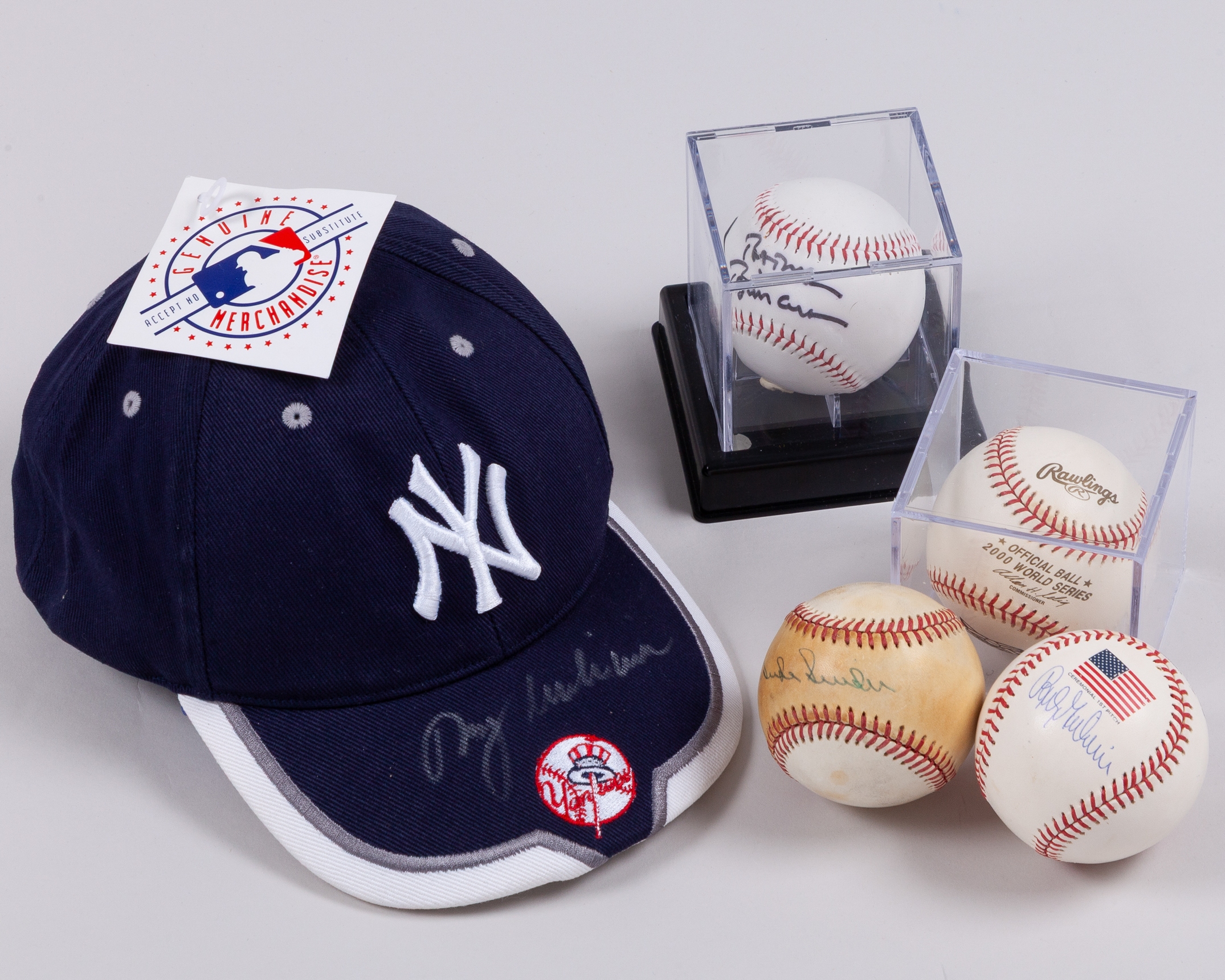 Collection of American Sport pennants, Topps trading cards and autographed baseballs