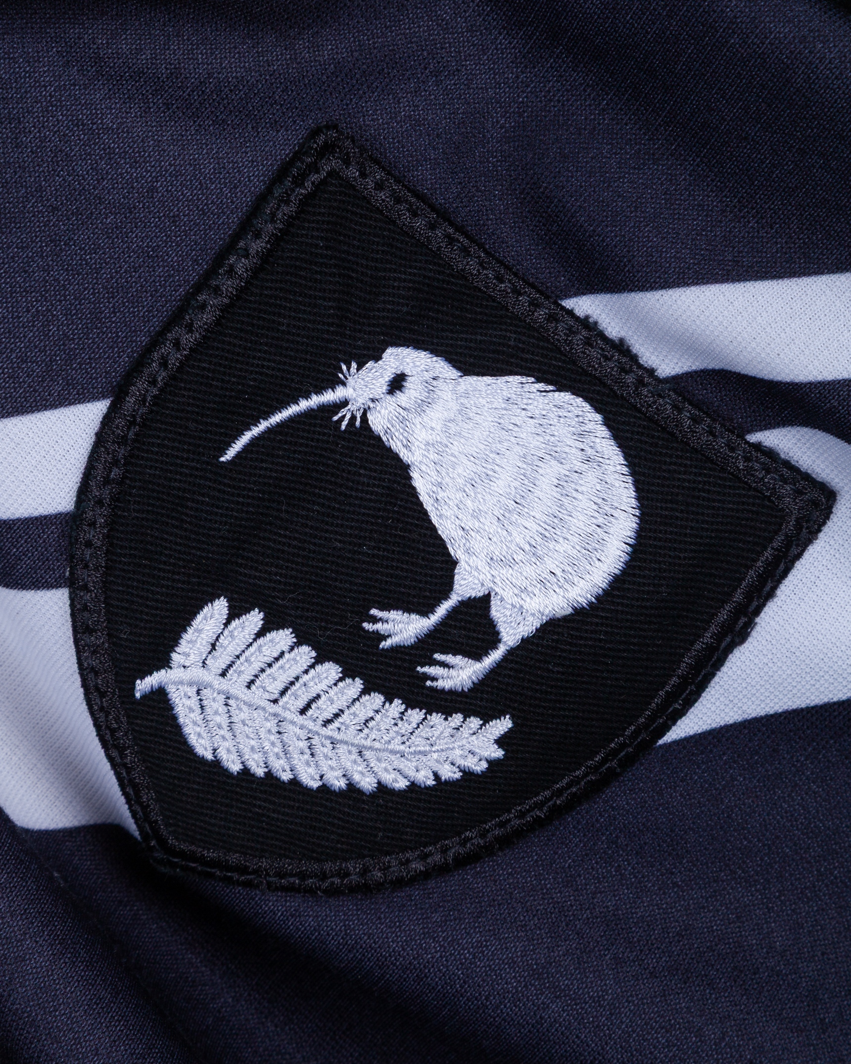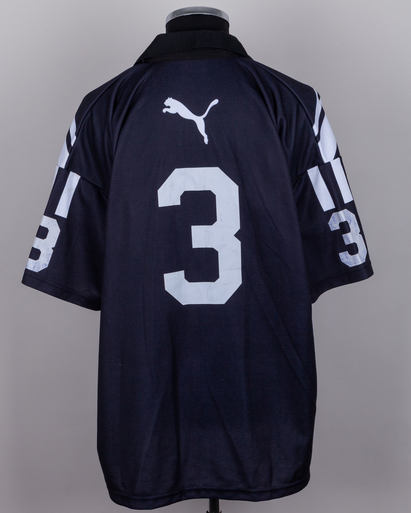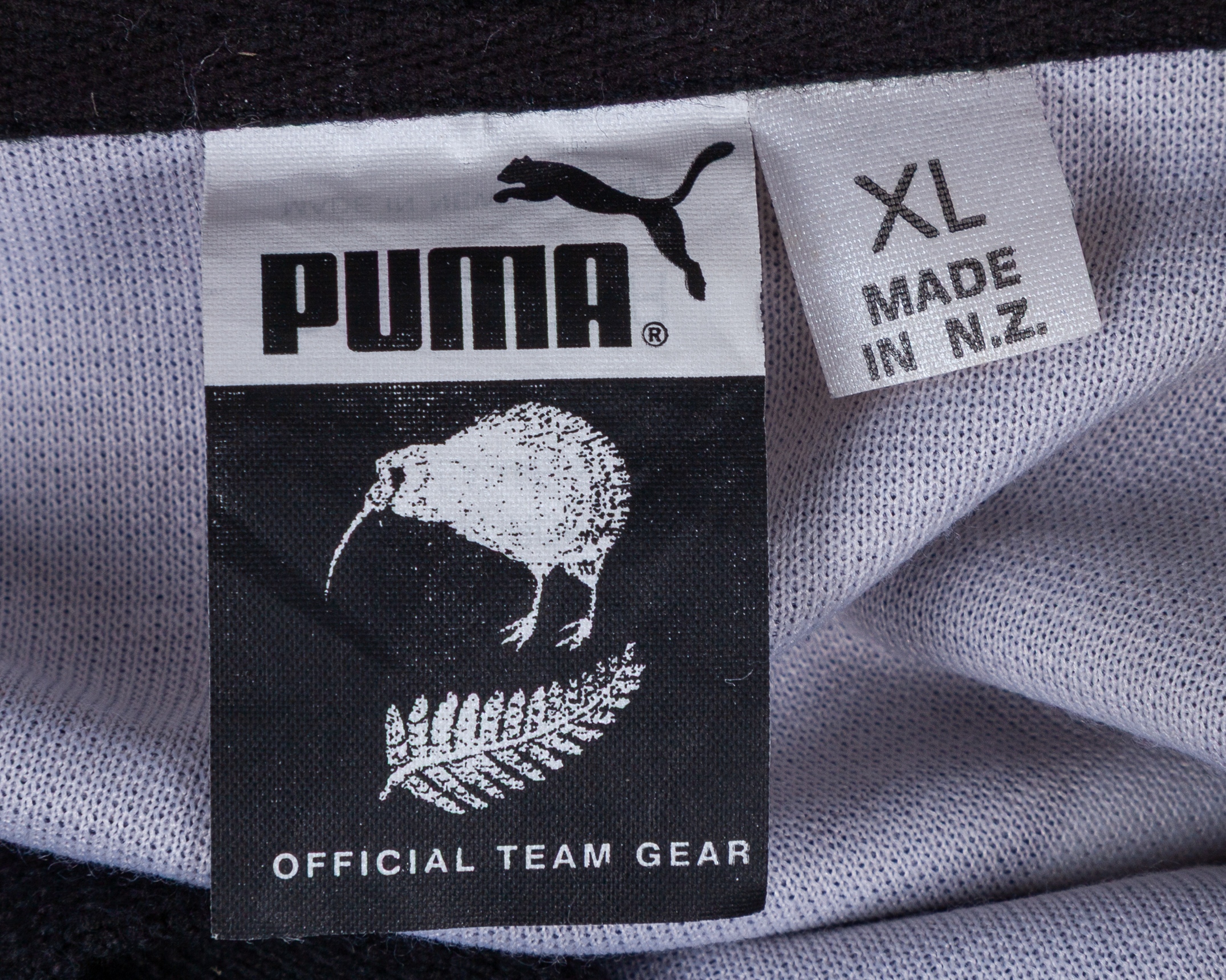 Black and white No.3 Rugby League New Zealand v. England shirt. 1998, Puma, XL, with button-up collar and embroidered badge, the collar inscribed KIWI'S 98 1st Test vs Eng
