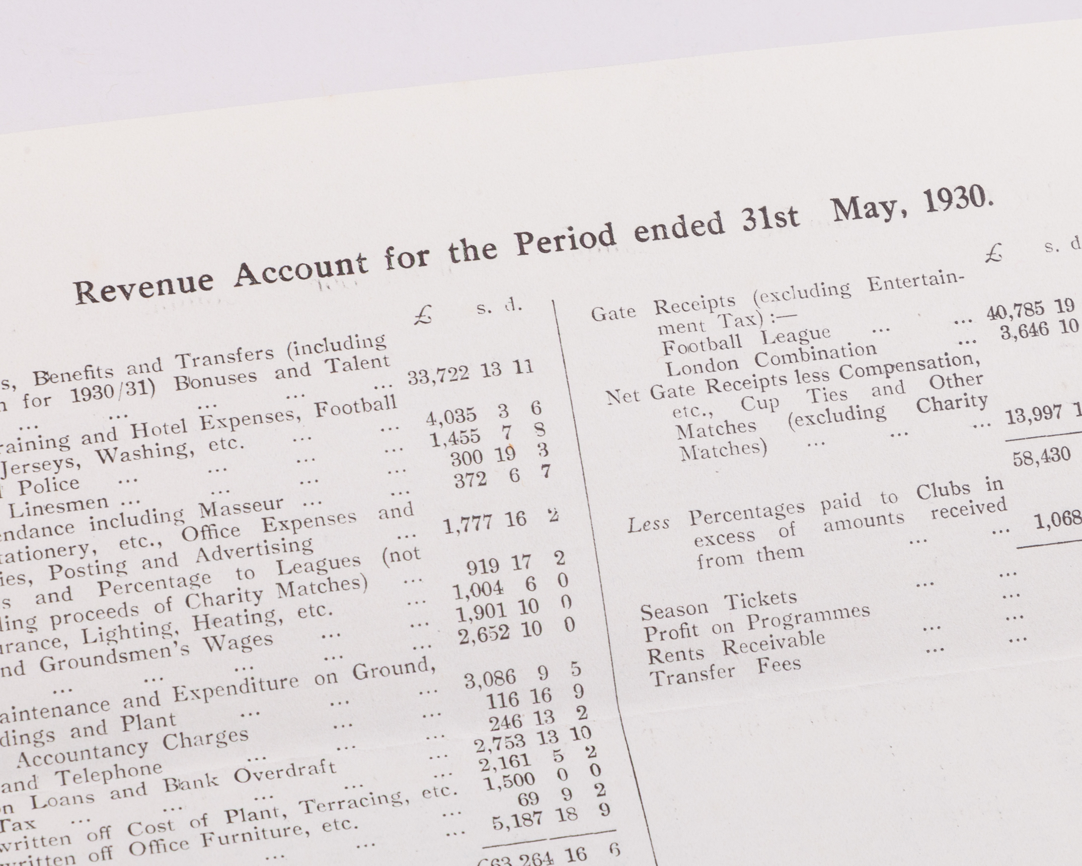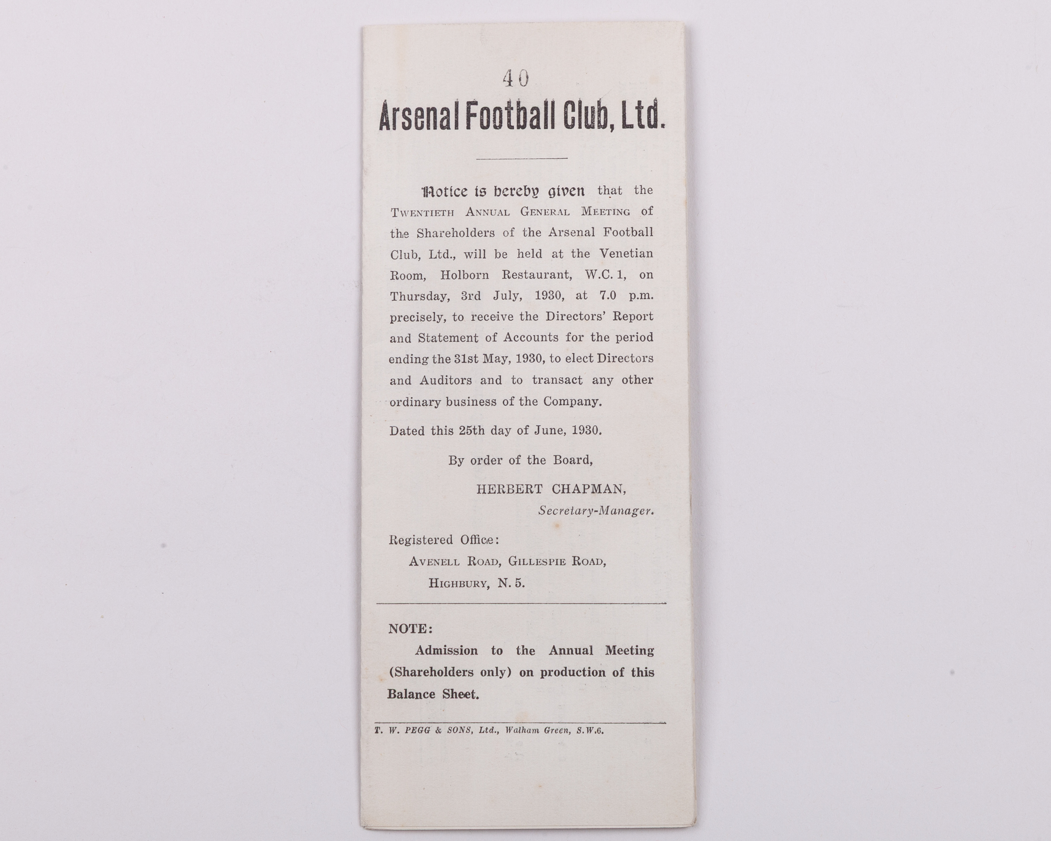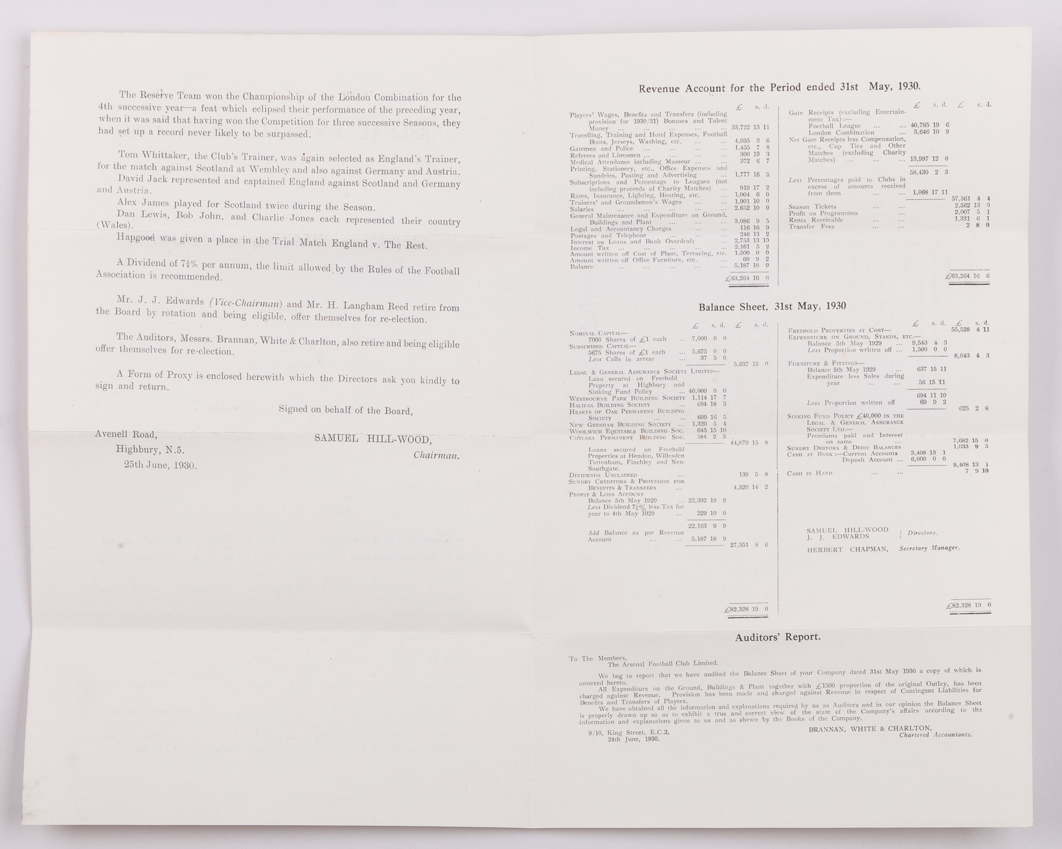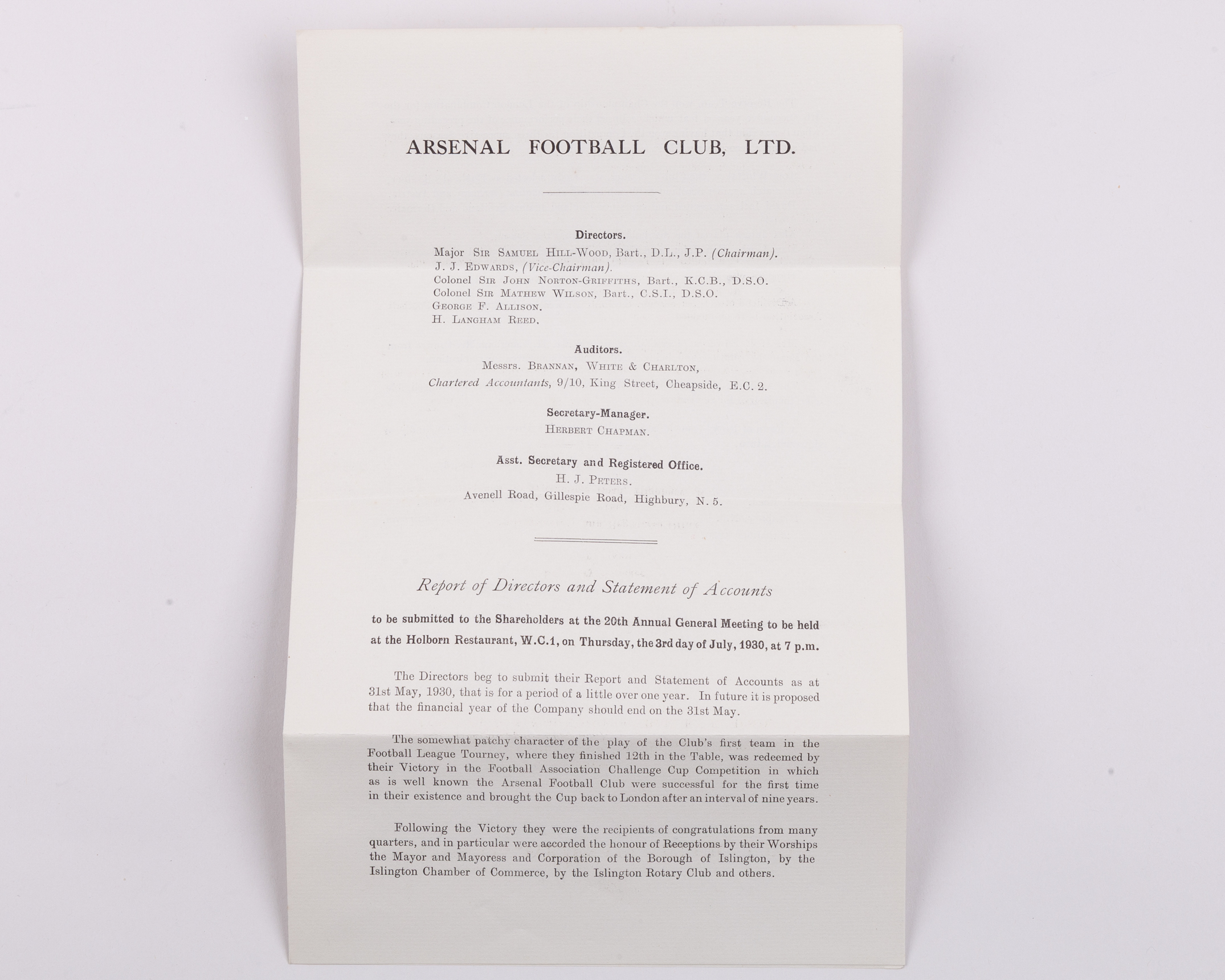 Arsenal - Report of Directors and Statement of Accounts , year ended 31st May 1930, in very good condition