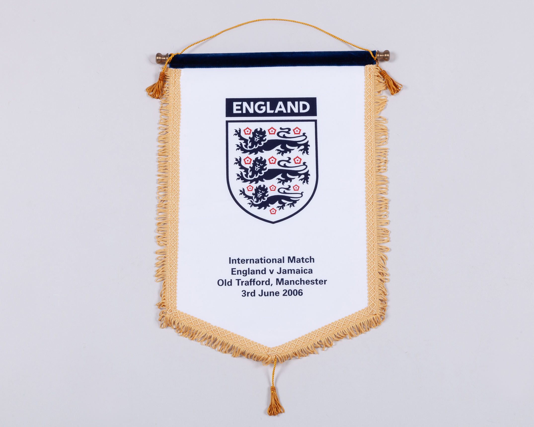 An England v. Jamaica pennant, 3rd June 2006, match played at Old Trafford, this was the first meeting between the two national, 42 x 30cm