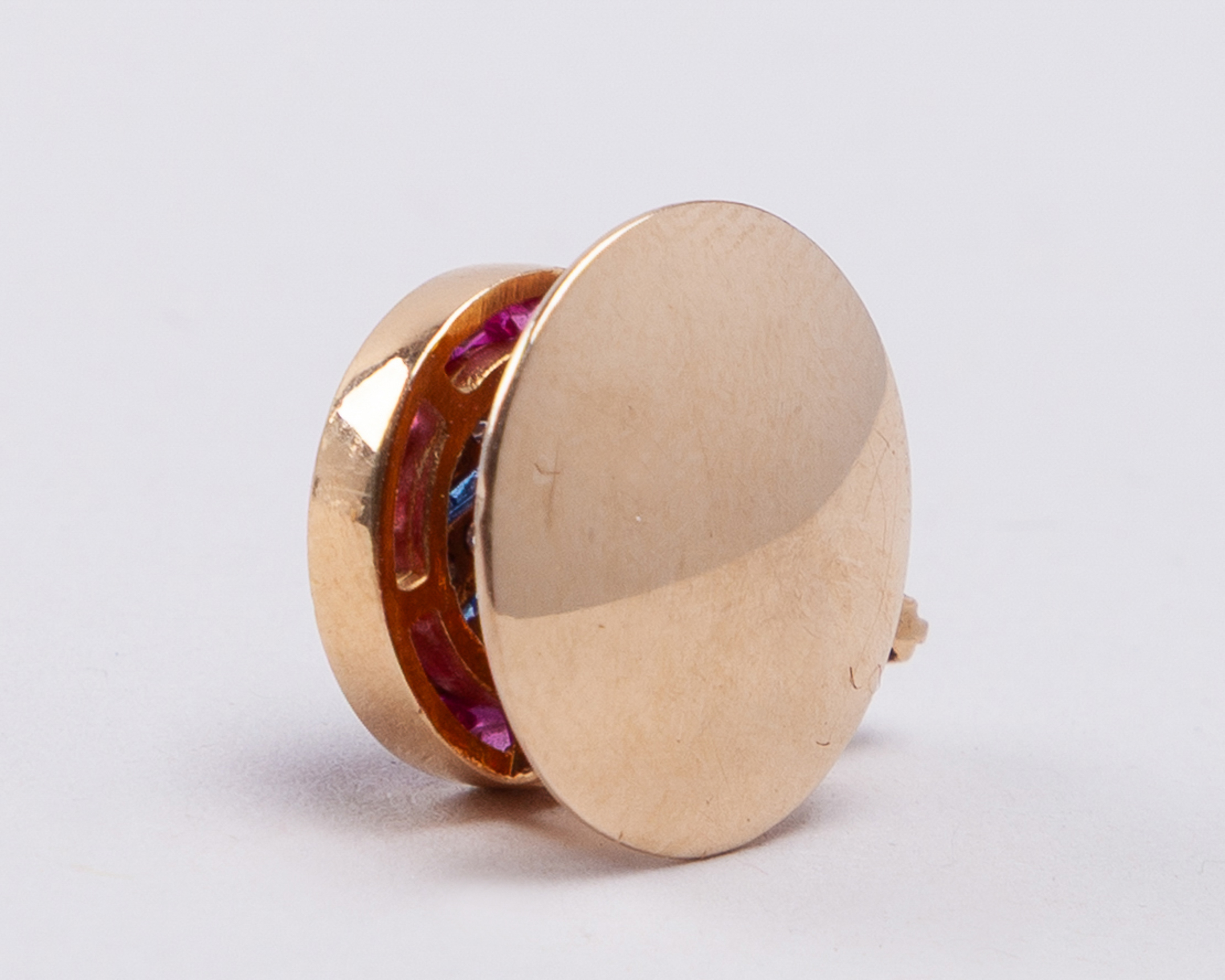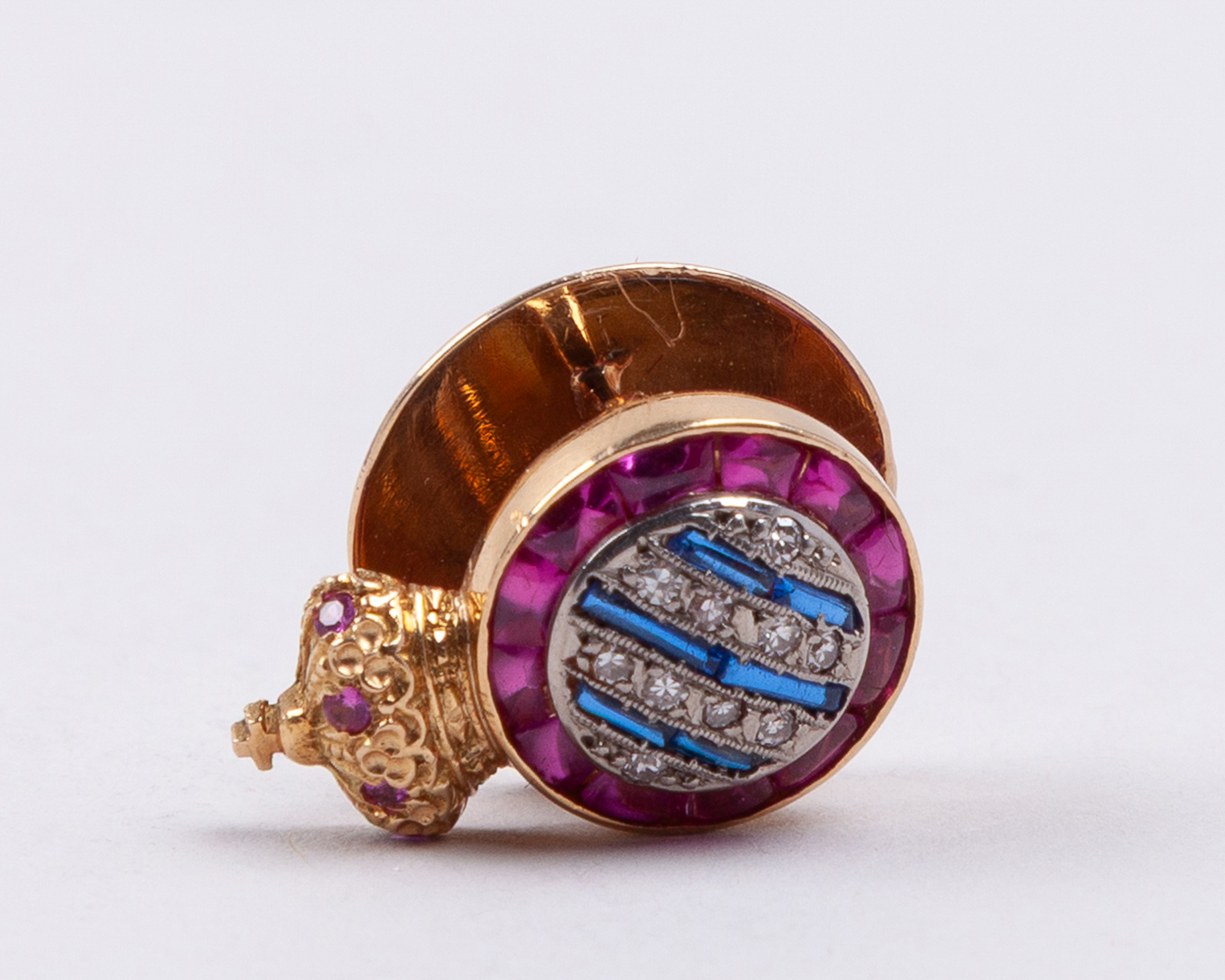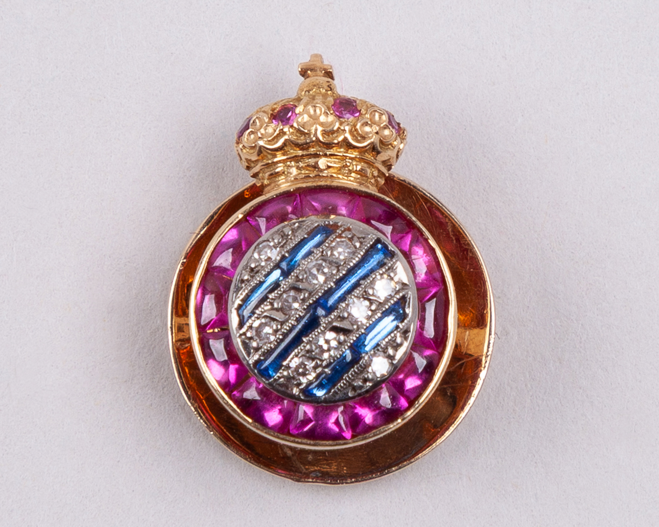A continental yellow-metal and gem set Espanyol lapel pin presented to Raymond Kopa by the then club president as a gift in the hope of signing him after his contract expired at Real Madrid