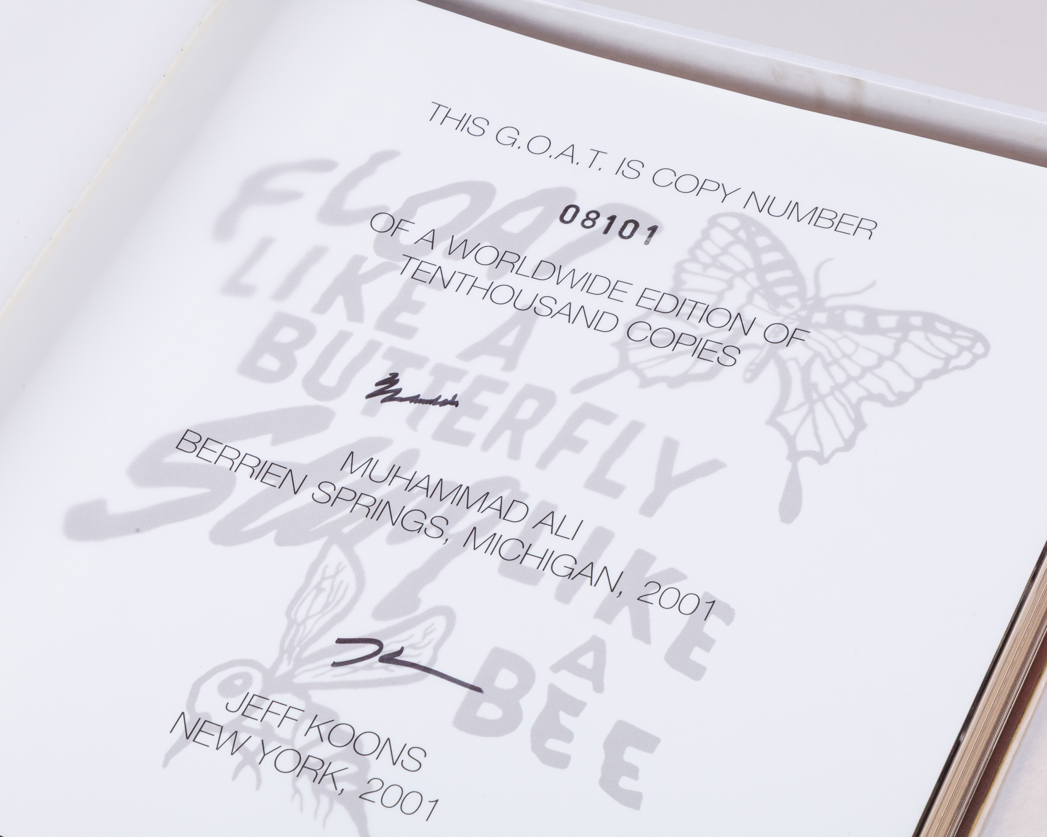 GOAT - a Tribute to Muhammad Ali, published by Taschen, 2001, No. 8101 of a limited edition, number of 10,000 copies, signed by Muhammad Ali and Jeff Koons, with numerous colour illustrations, and with padded covered boards, the outer box measuring 55.5cm x 54cm x 13.5cm.