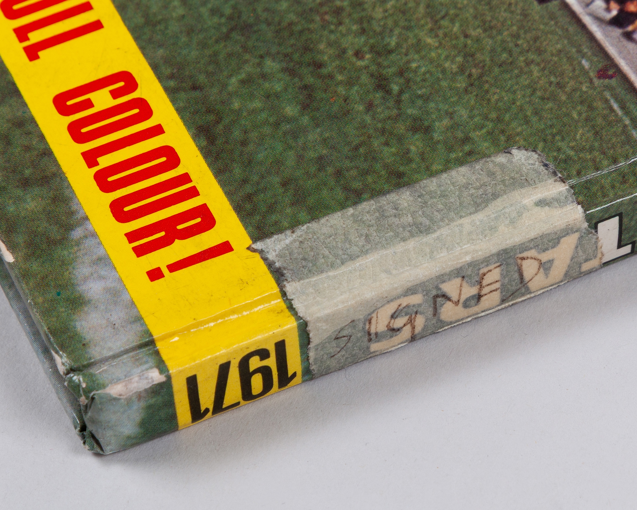 Tiger Book of Soccer Stars 1971, with thirty-four footballing autographs including Bobby Moore, Pat Jennings, George Graham, George Best and Geoff Hurst etc., with a page torn