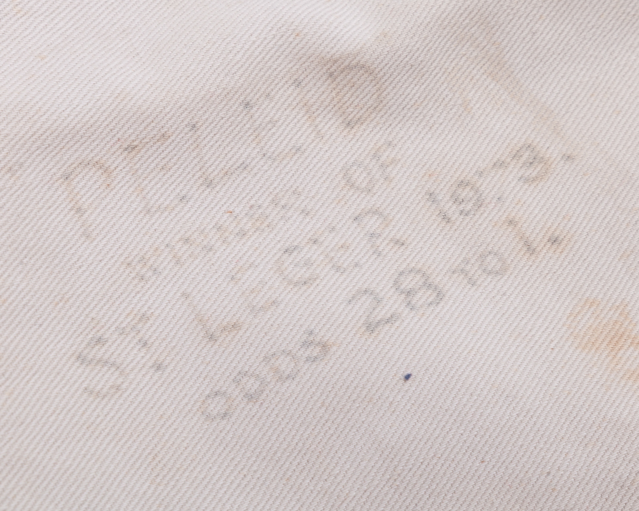 white cloth with black numbering, hand inscribed with race details