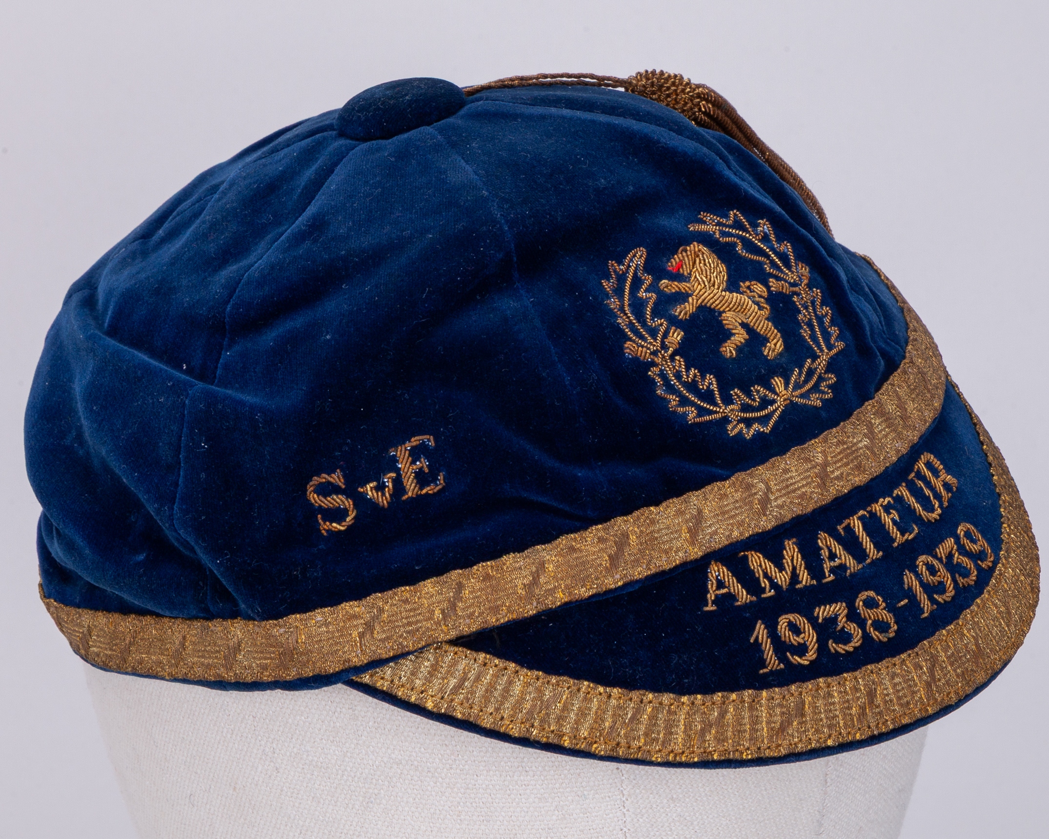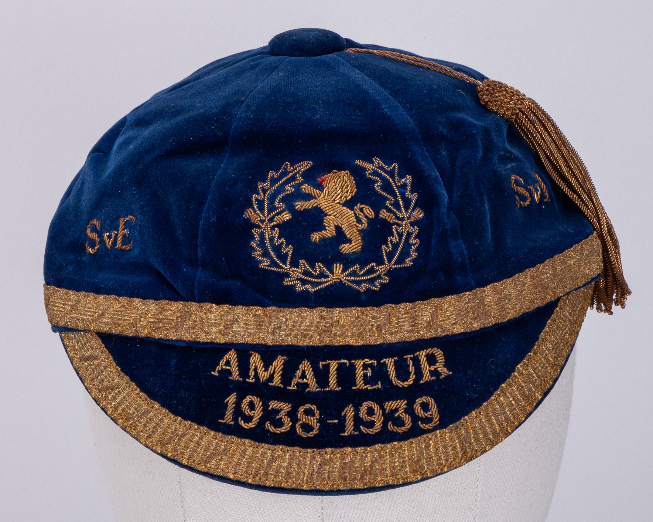 Blue Scotland v. England and Ireland International Amateur Cap, 1938-39, blue velvet with gilt tassel, embroidered S v E. S v I, AMATEUR 1938-39