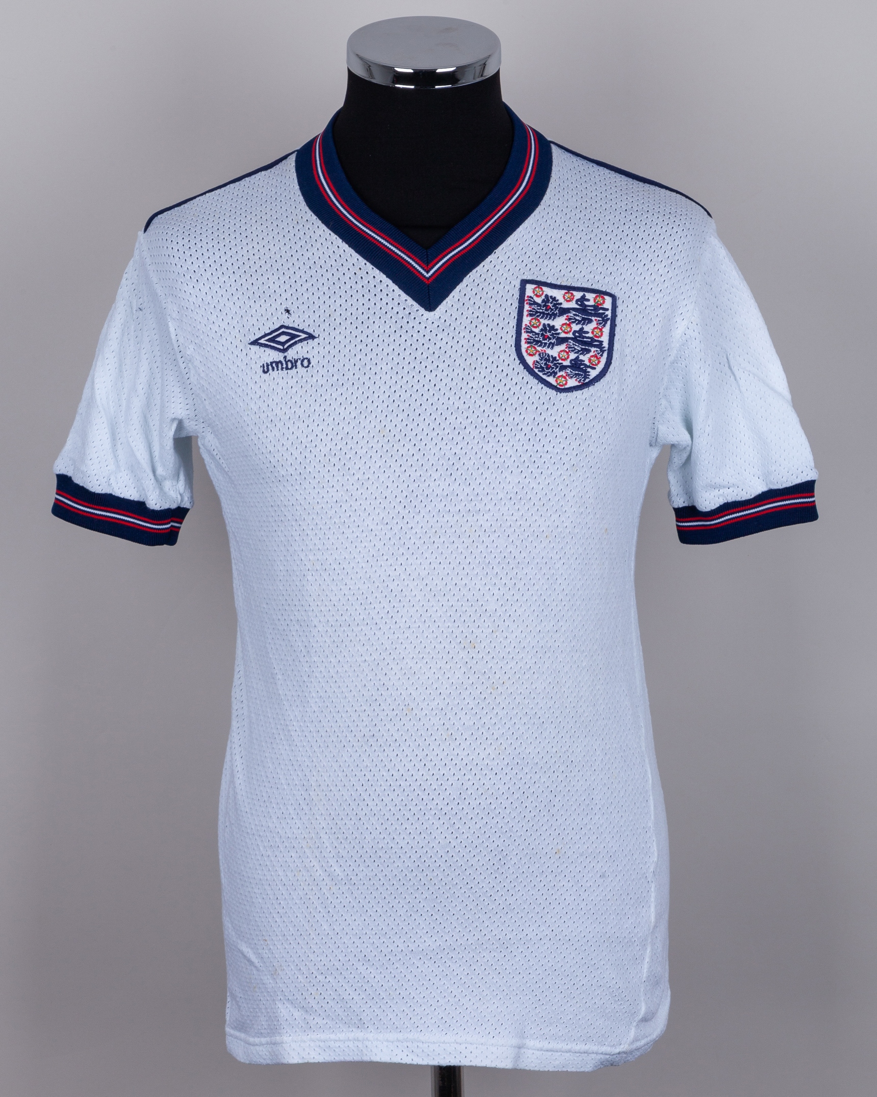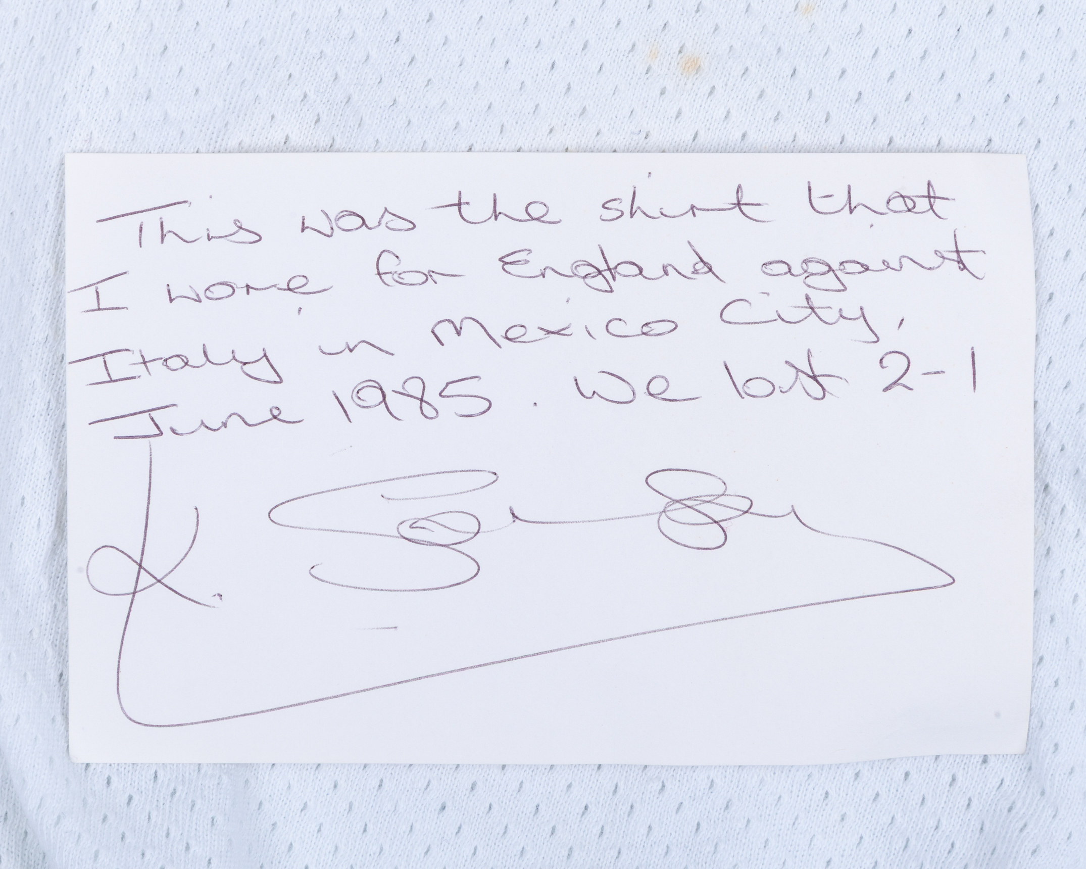 The above shirt was worn by Kenny in the City Tournament match against Italy played on 6th June 1985 at the Azteca stadium, Italy defeating England 2-1