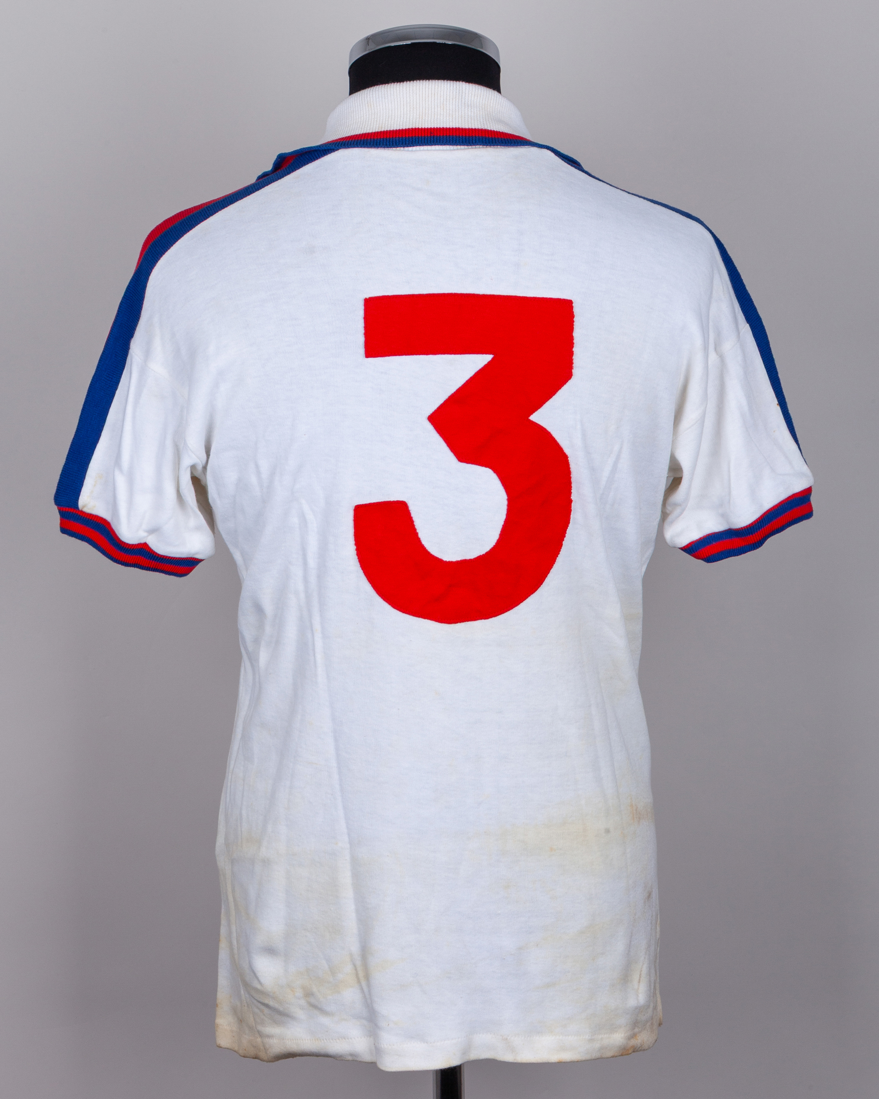 Kenny Sansom white England No.3 England v. Republic of Ireland short-sleeved shirt, 1980