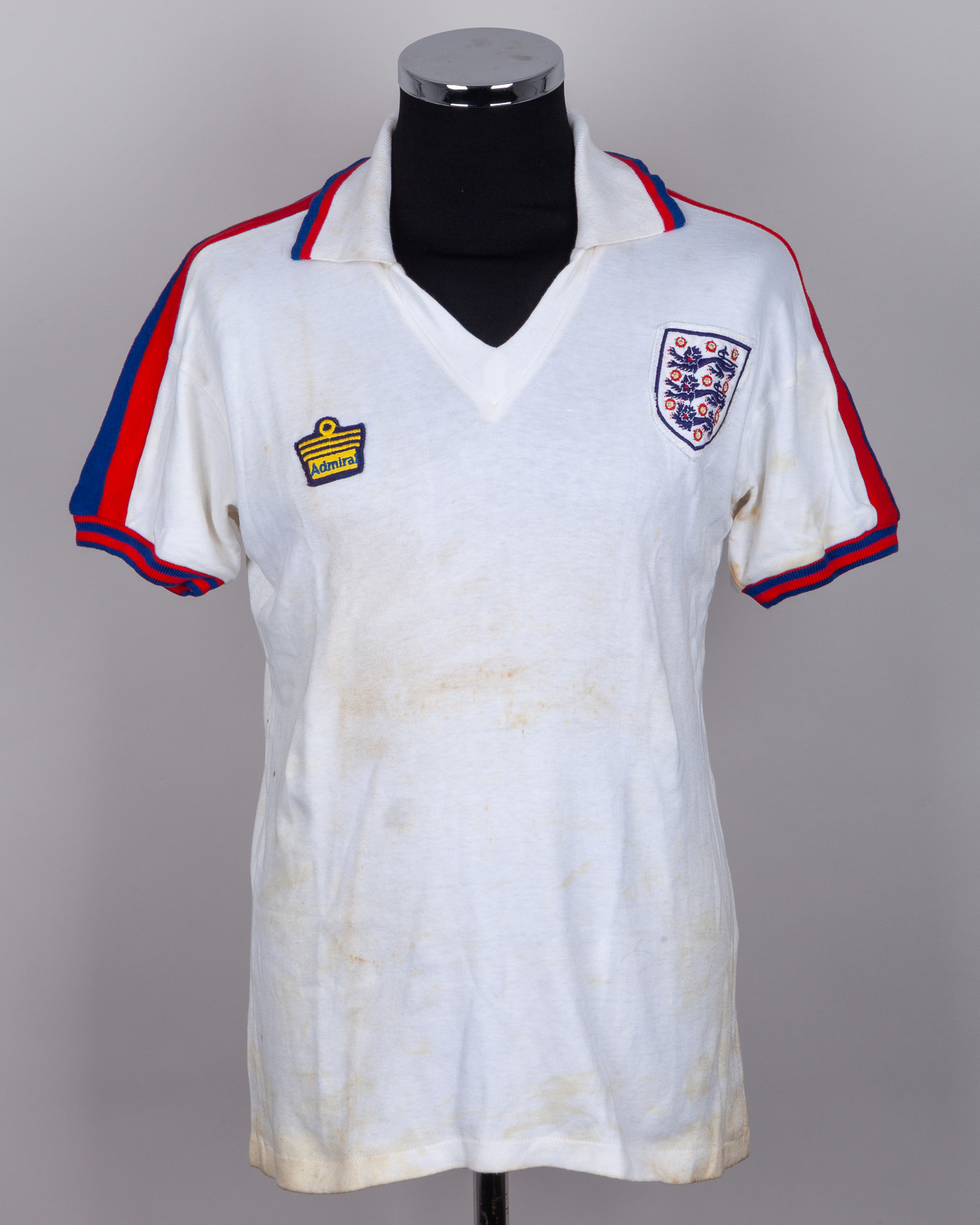 The above shirt was worn by Kenny Sansom and gained by Gerry Daly as a swap after the match against The Republic of Ireland played on 6th February 1980 at Wembley, England defeating the Irish 2-0