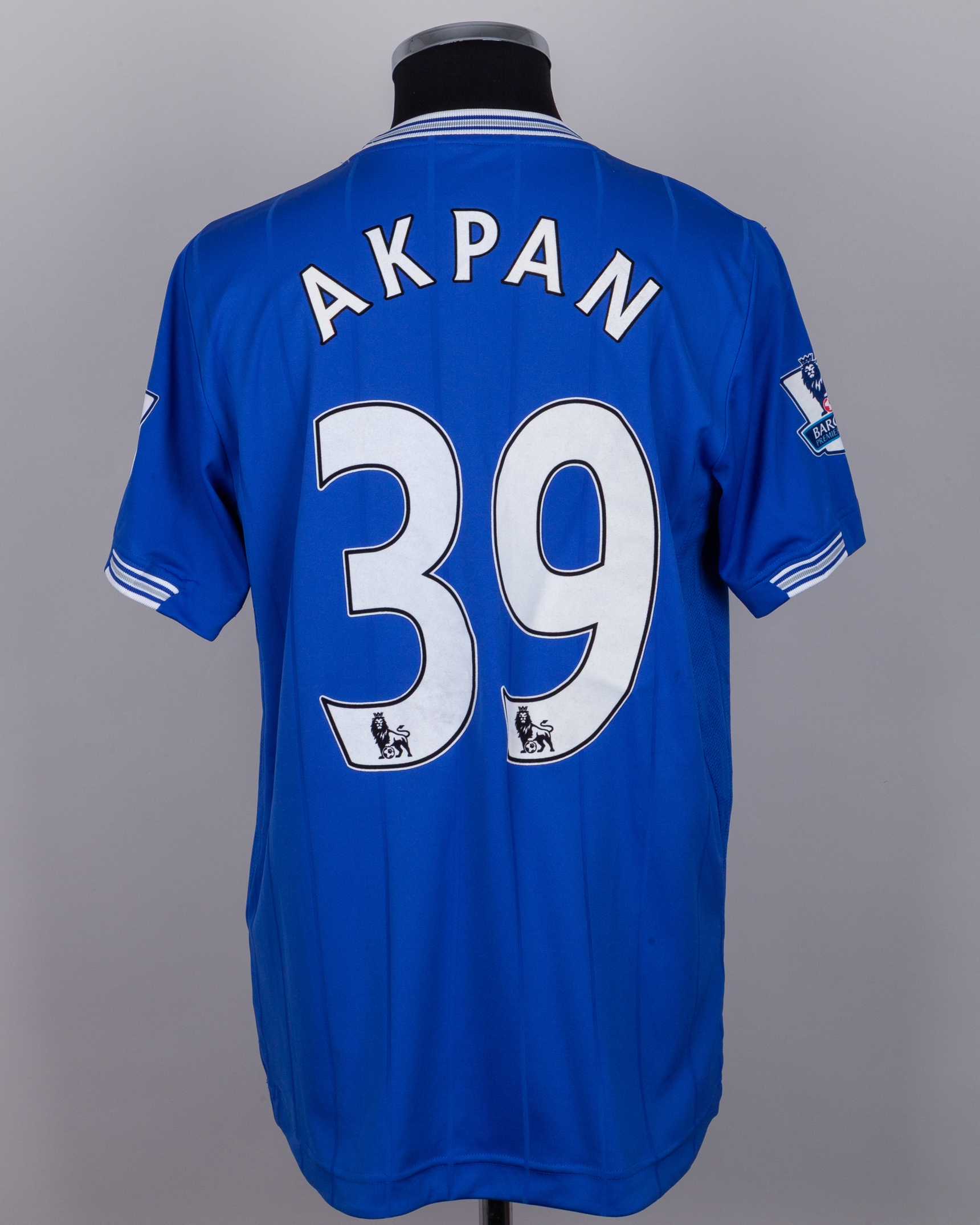Hope Akpan blue and white No.39 Everton v. West Ham United issued shirt, 2009