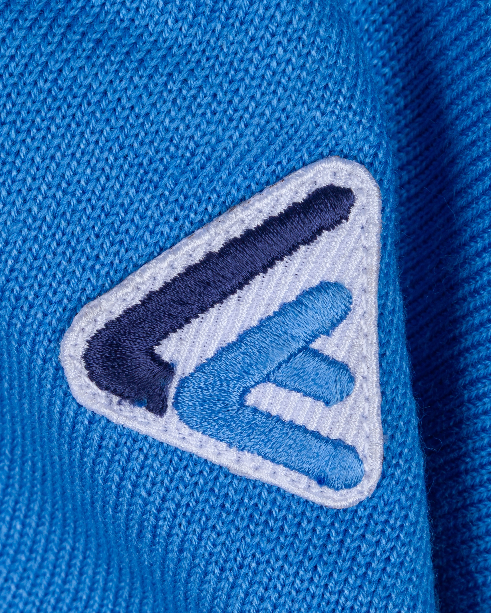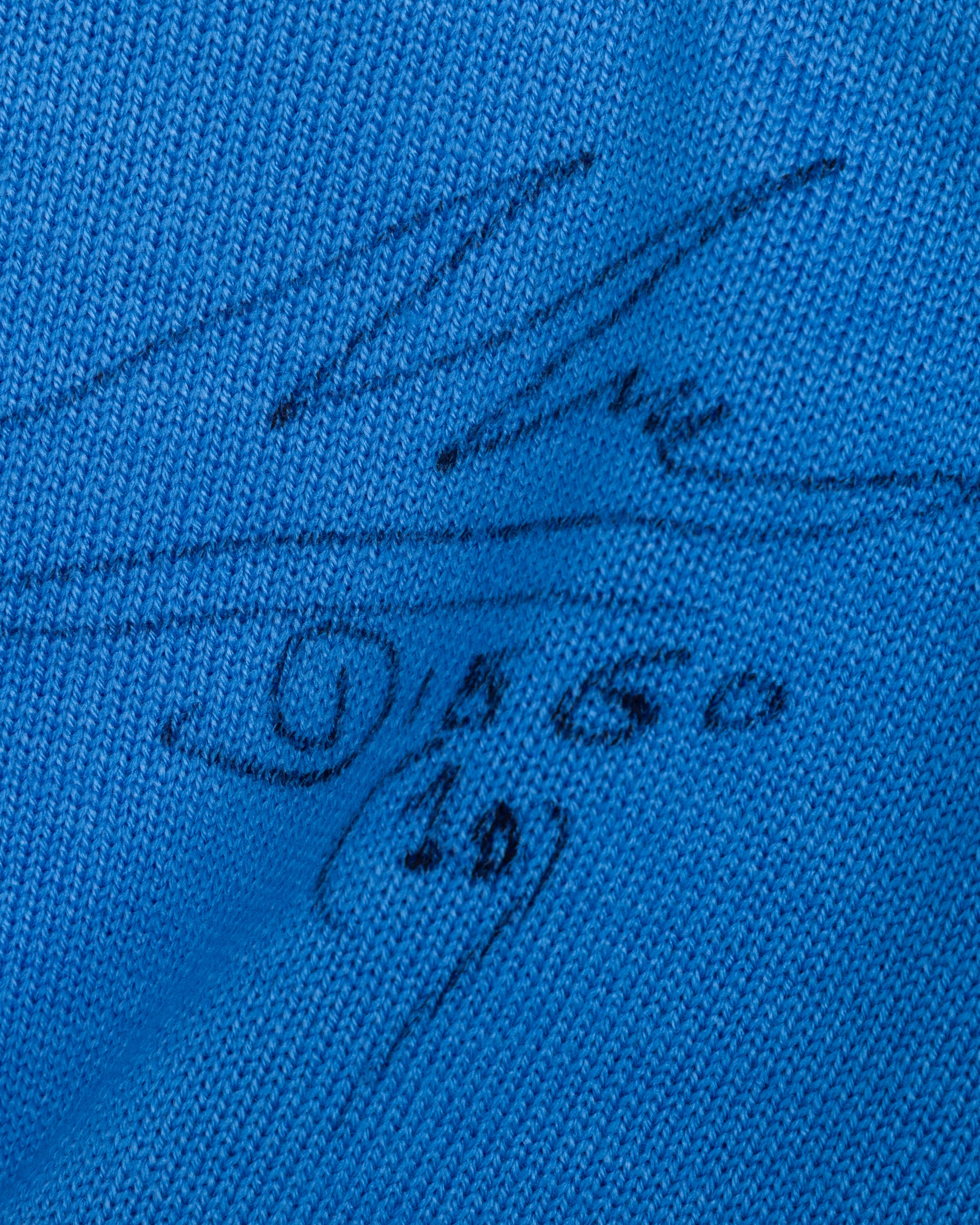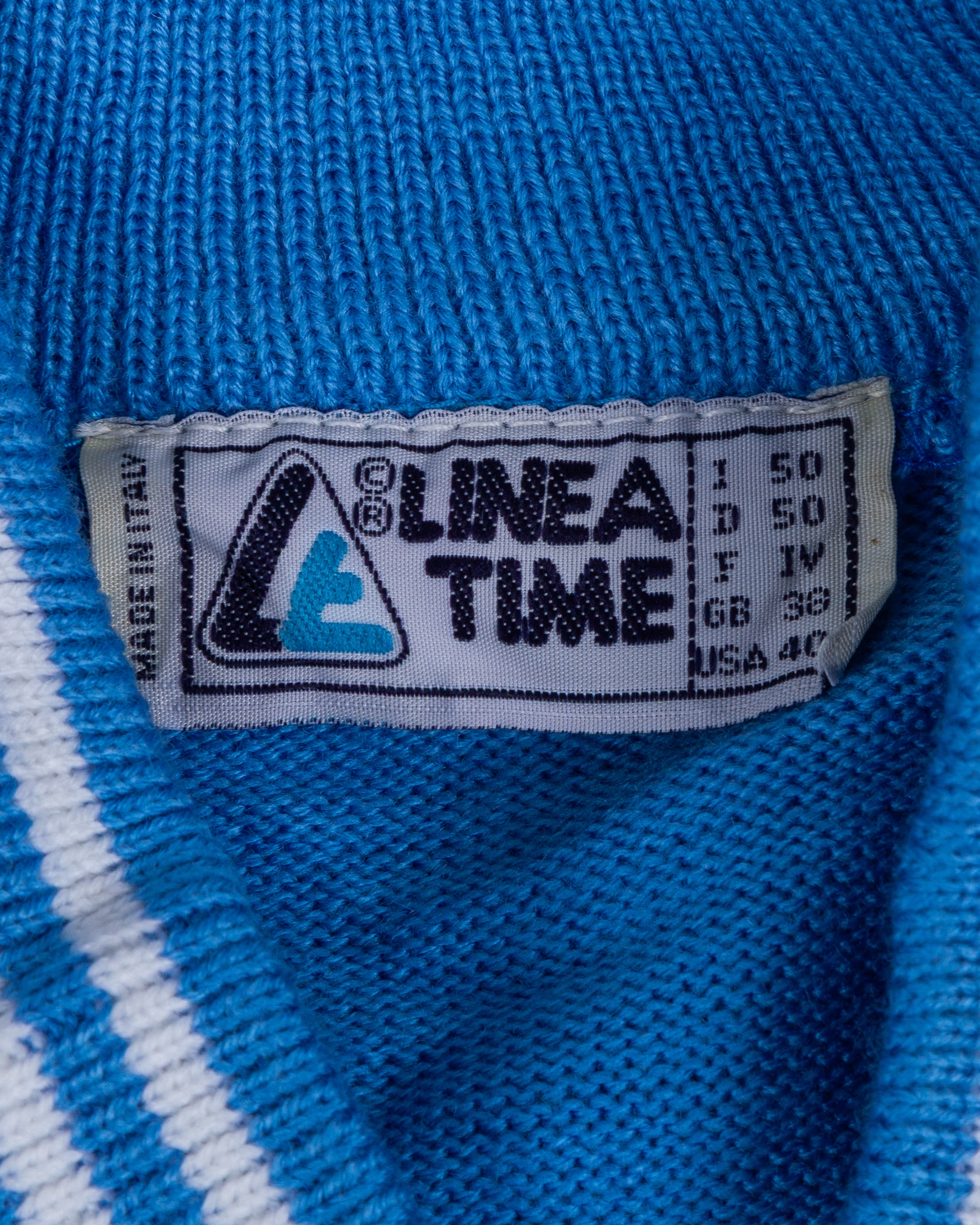 Diego Maradona autographed blue No.10 Napoli short-sleeved shirt, 1984-85, Linea Time, GB38, with v-neck collar and embroidered cloth badge, with signed COA from Giuseppe Longoni's wife and COA for the autograph, with staining by the number