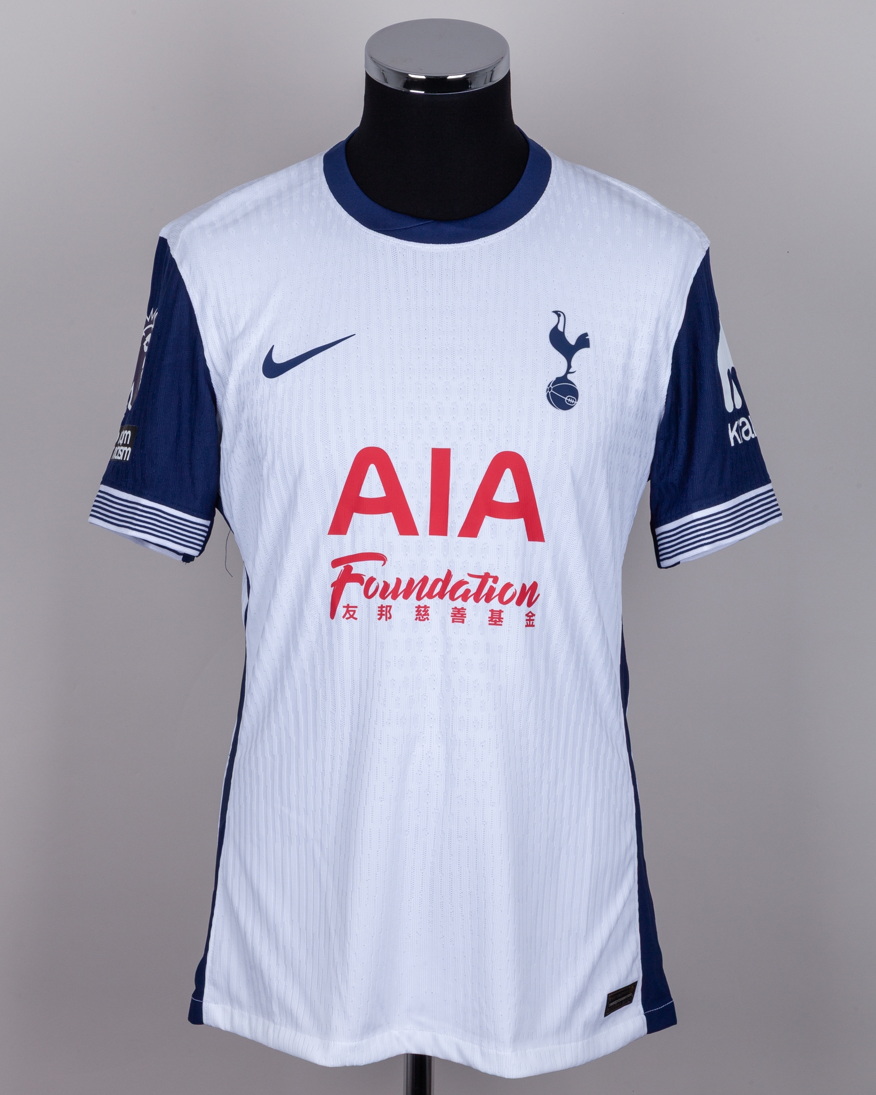 Destiny Udogie white and blue No.13 Tottenham Hotspur match issued short-sleeved shirt, 2025
