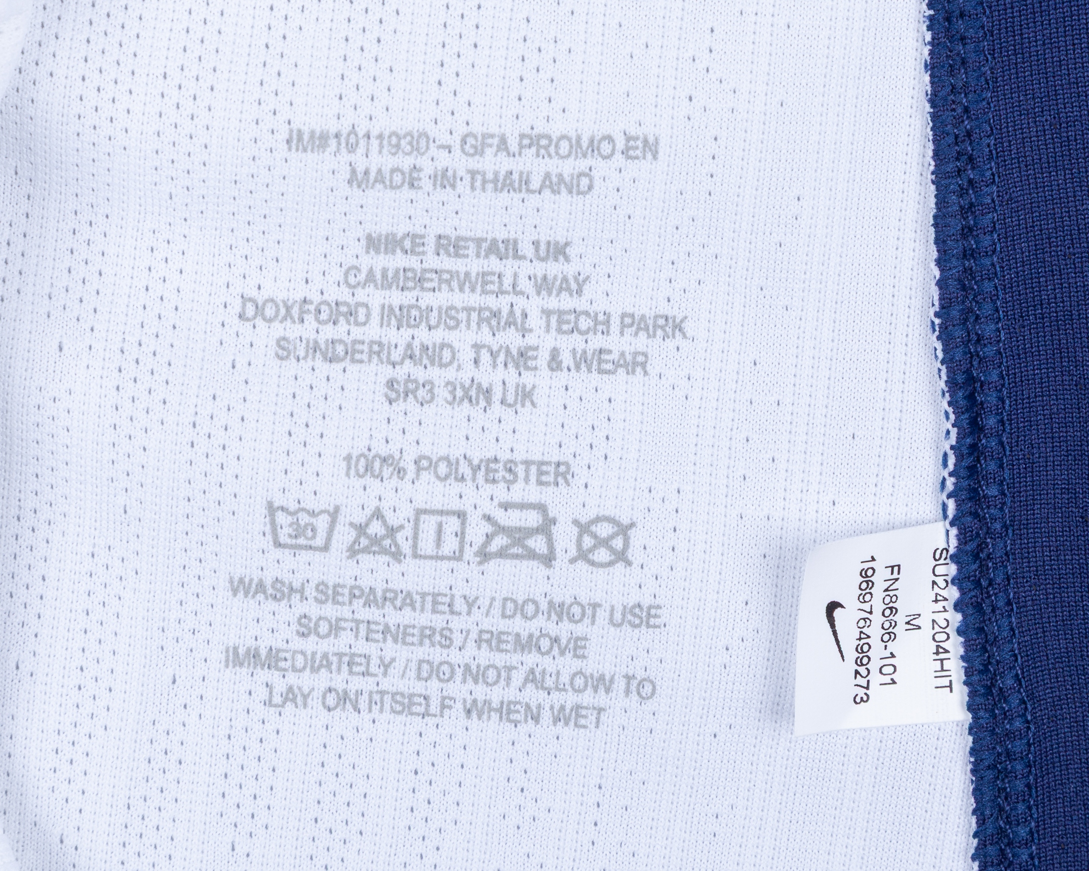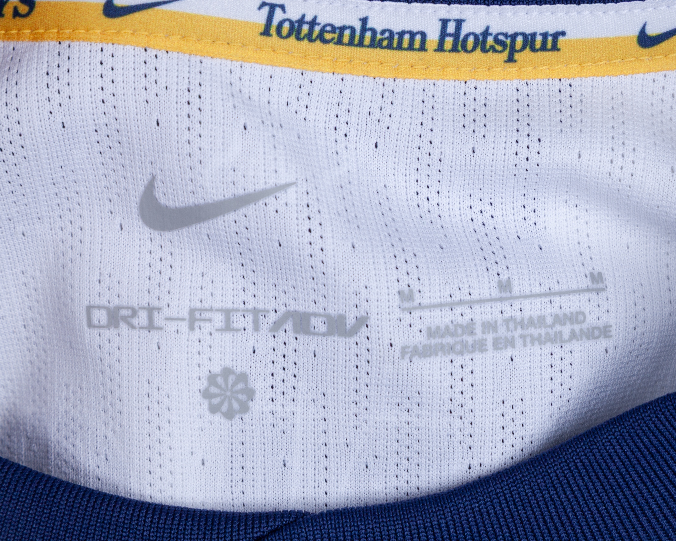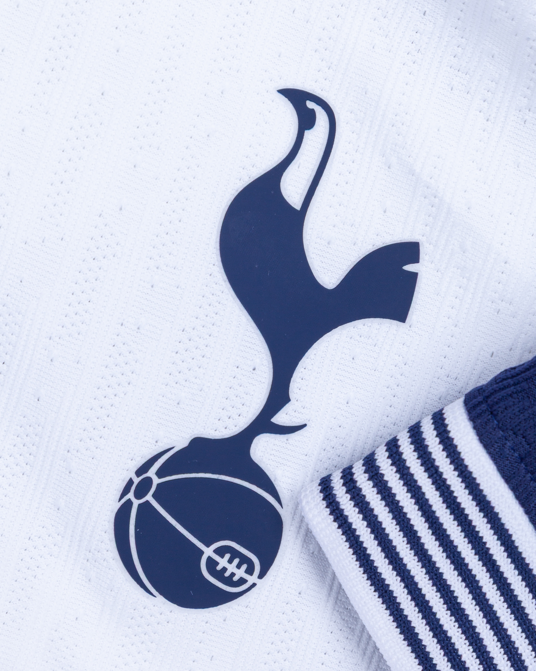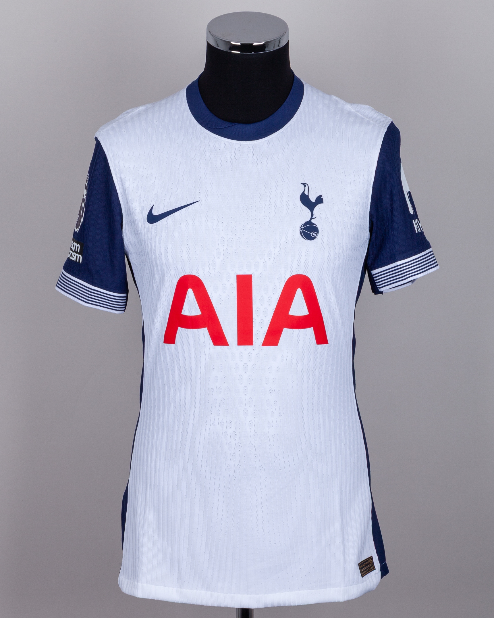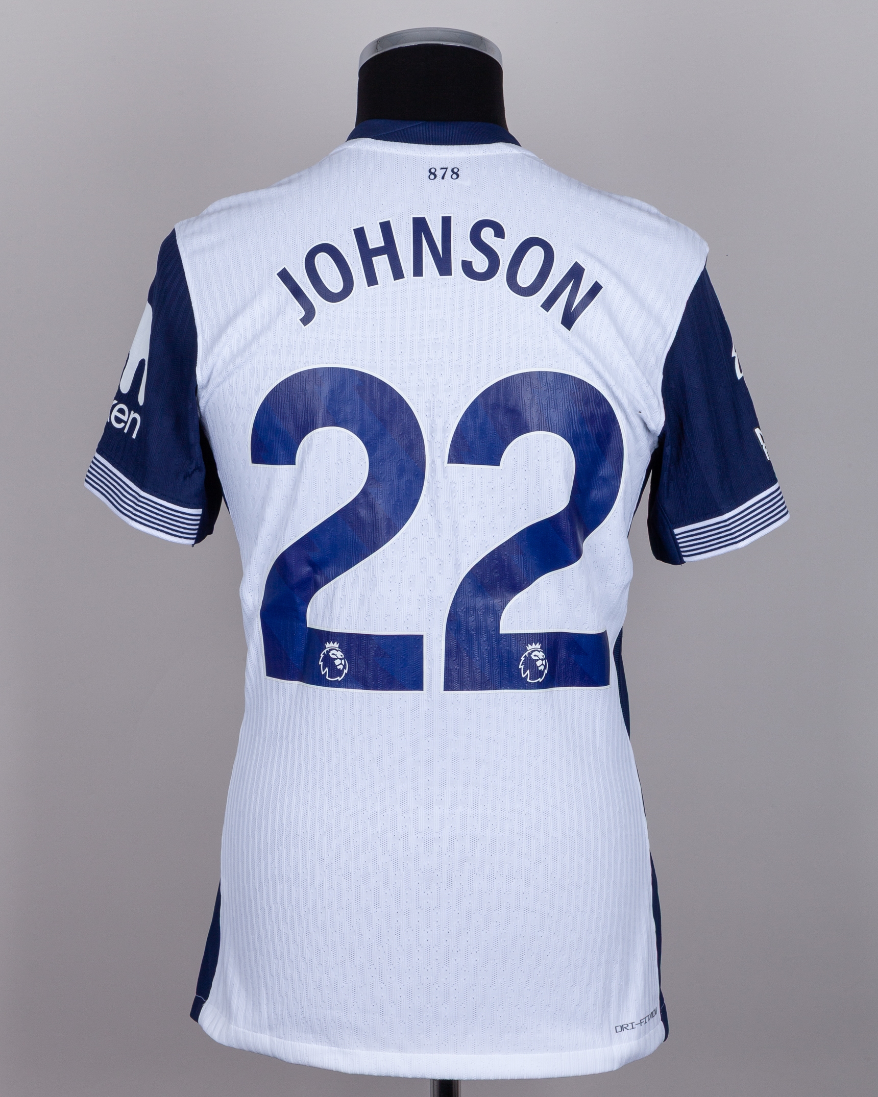 Brennan Johnson white and blue No.22 Tottenham Hotspur short-sleeved shirt, 2024-25, Nike, M, with crew-neck collar and printed badge, the reverse lettered JOHNSON, the right sleeve with Premier League flash