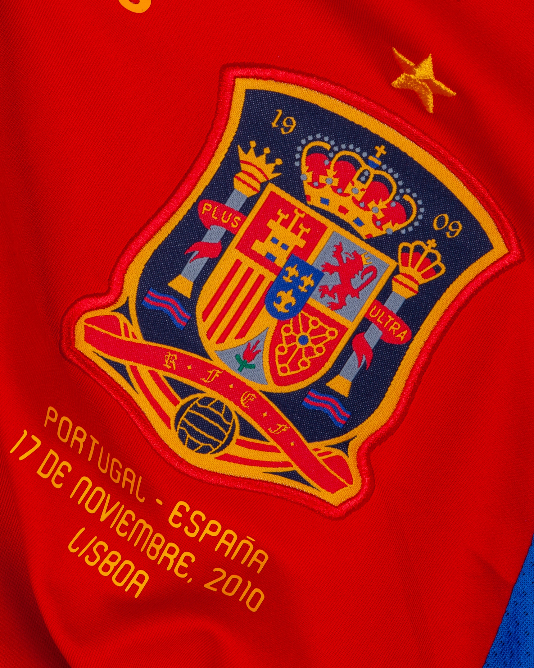 Iniesta red and blue No.6 Spain v. Portugal match issued long-sleeved shirt, 2010