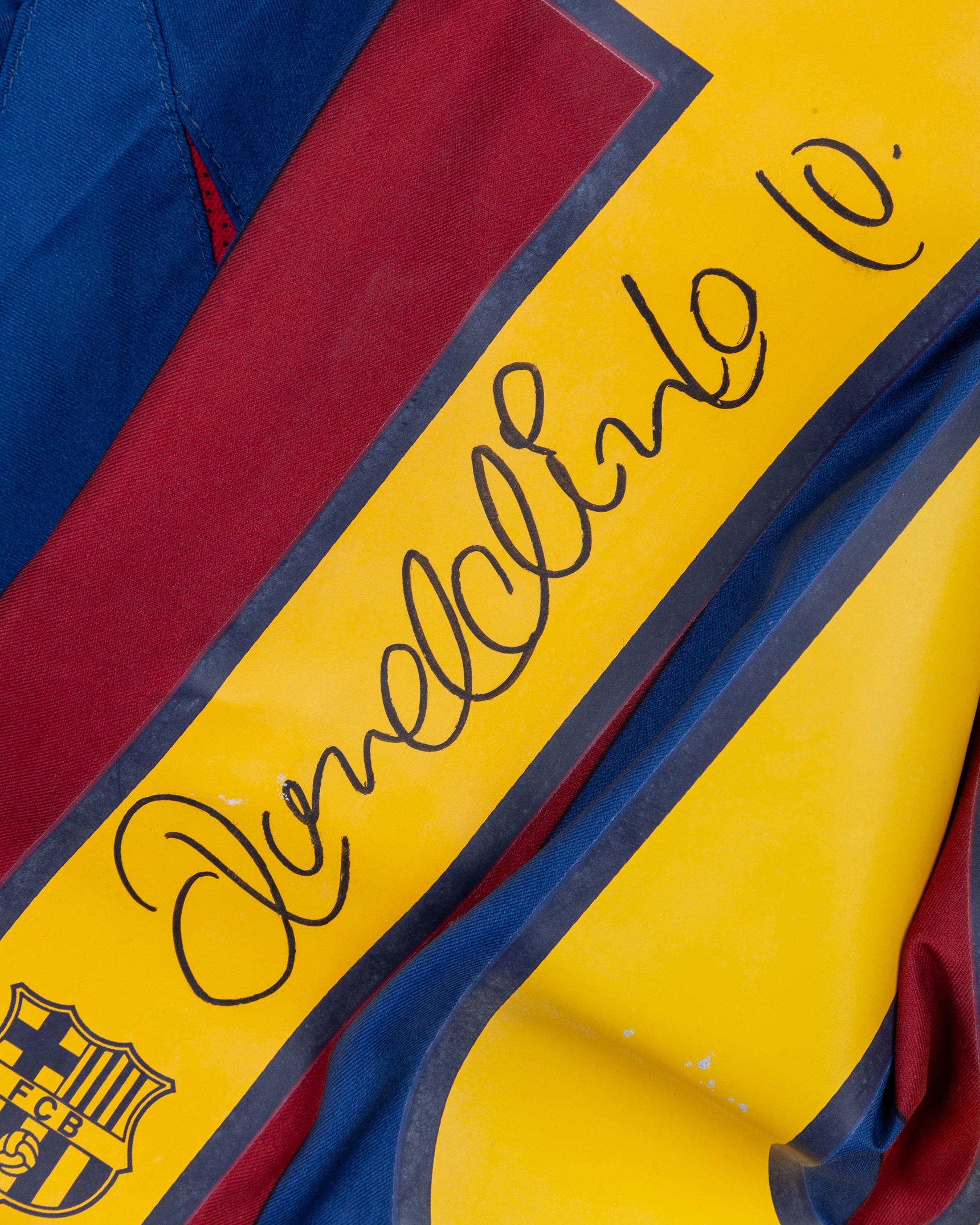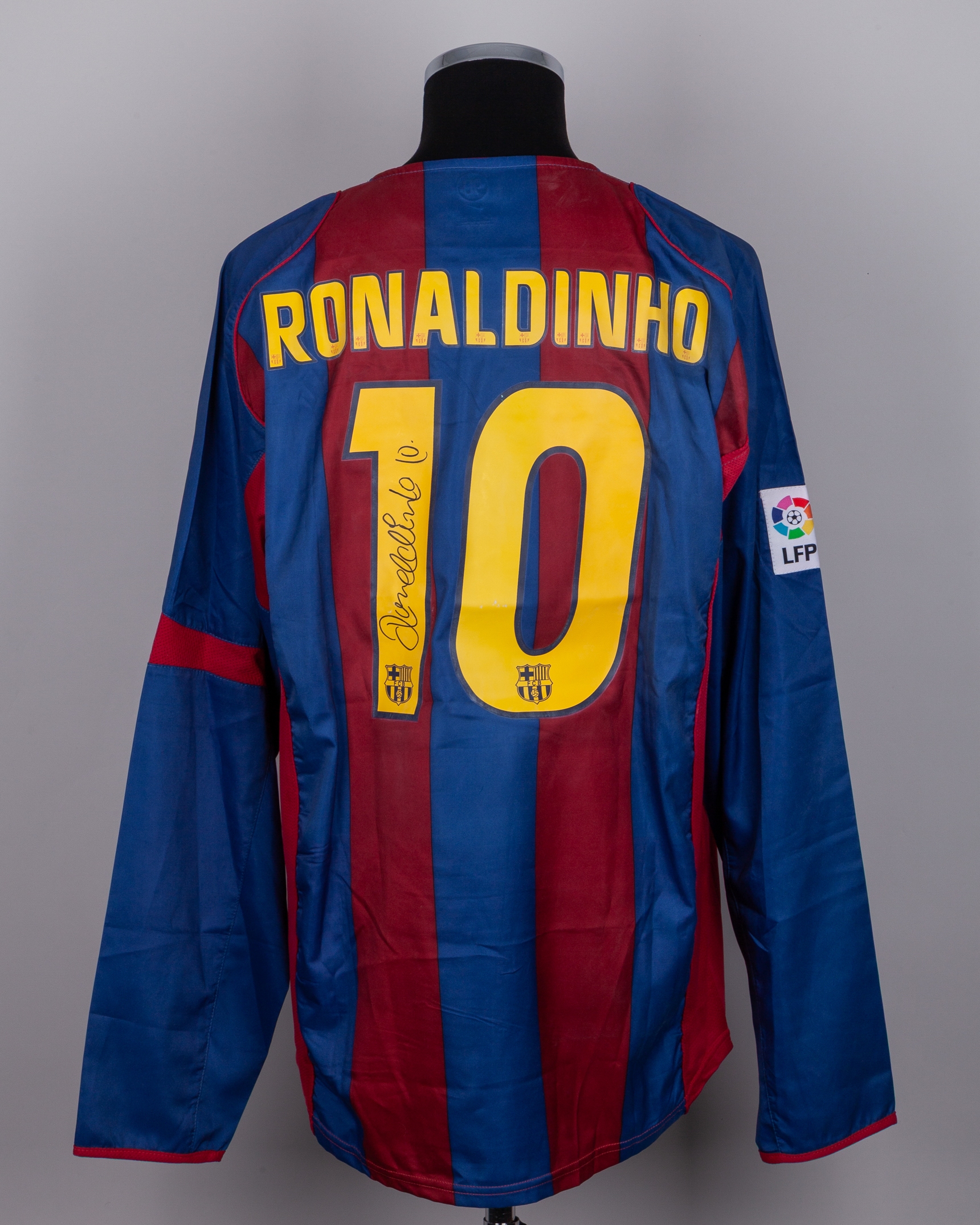 A Barcelona Ronaldinho autographed replica shirt, the number autographed