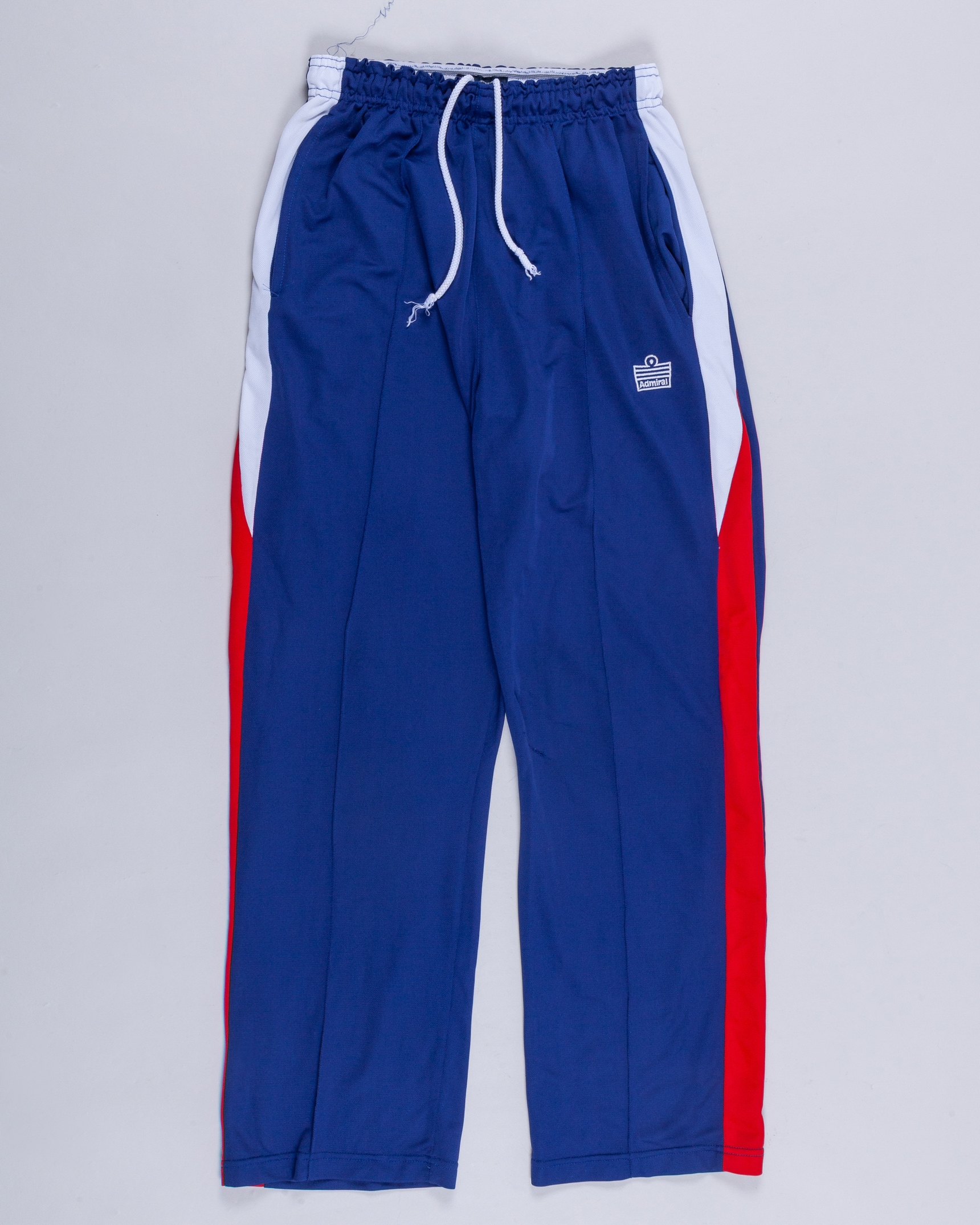 Andrew Strauss red, blue and white No.14 ICC Trophy short-sleeved shirt, 2004, Admiral, XL, with button-up collar and embroidered badge, with 180 decal, the reverse lettered STRAUSS and a pair of England tracksuit bottoms (2)