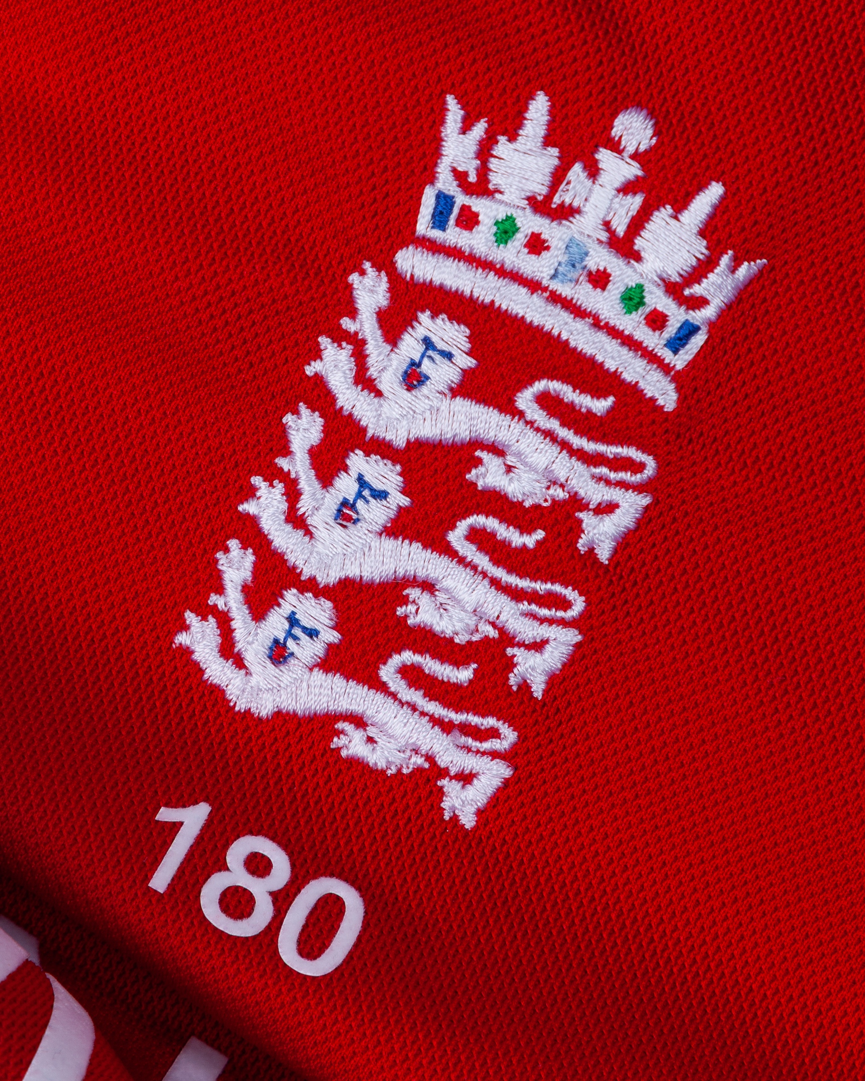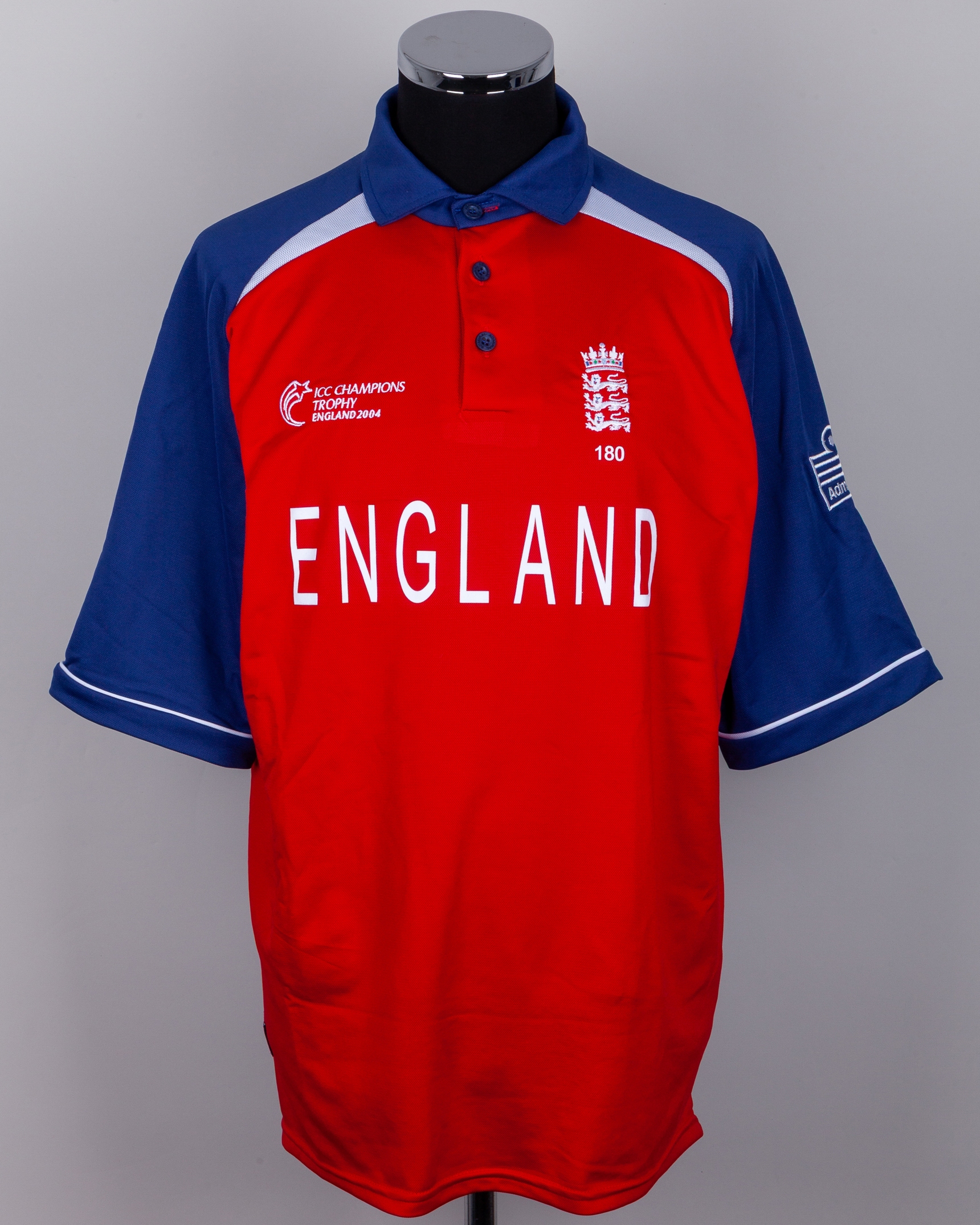 Andrew Strauss red, blue and white No.14 ICC Trophy short-sleeved shirt, 2004