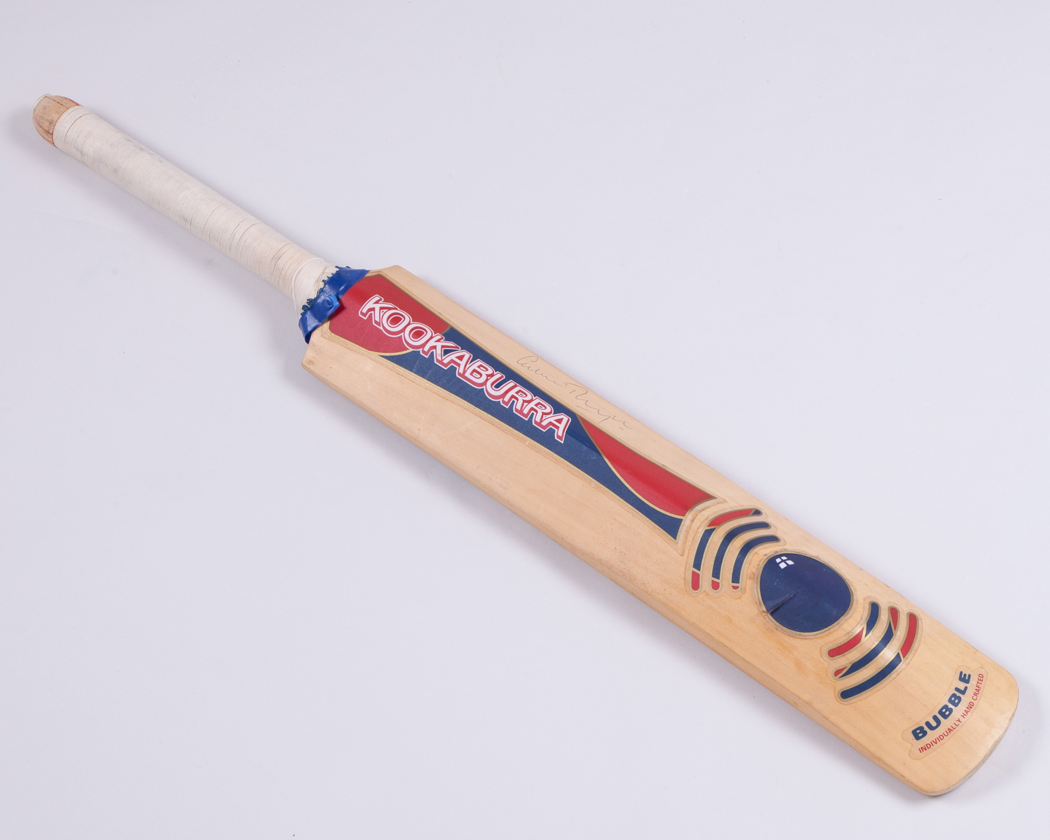 England touring squad 1999-2000 autographed Kookaburra Bubble cricket bat, with seventeen autographs including Michael Atherton, Alec Stewart, Phil Tufnell and Michael Vaughn etc., with Graeme Thorpe autograph on the back