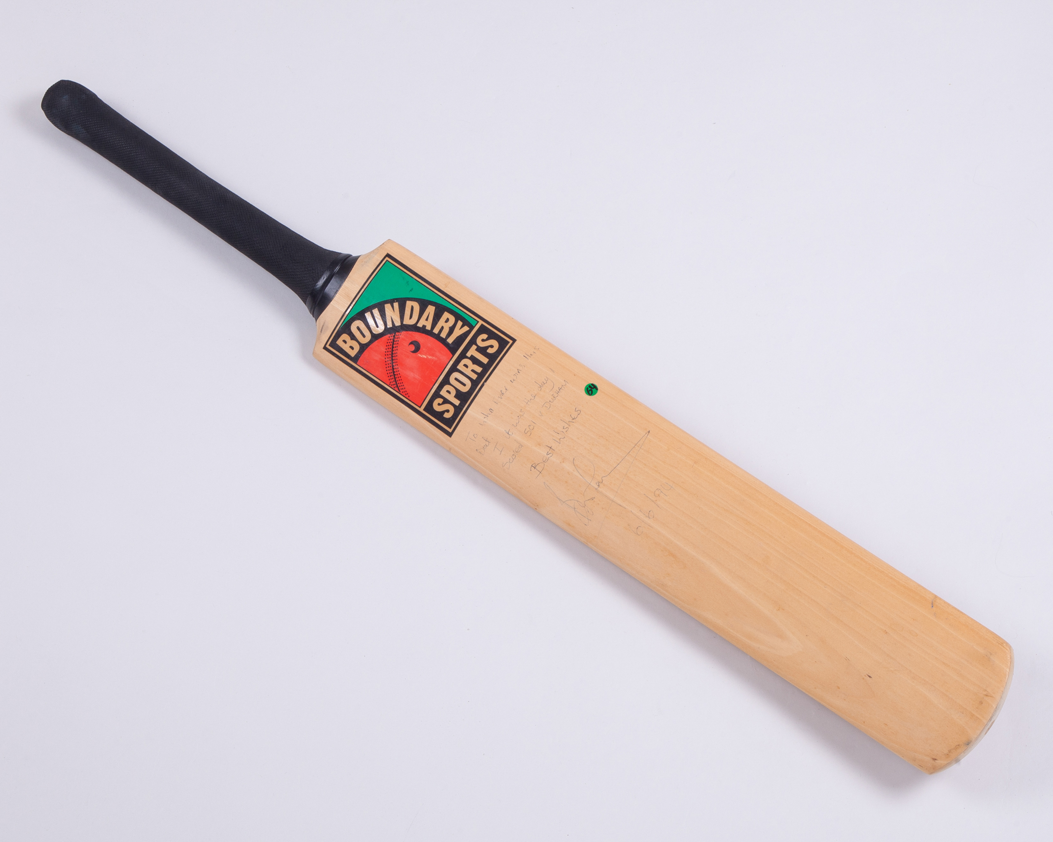 Brian Lara autographed Boundary Sports cricket bat scoring 501 for Warwickshire v. Durham, signed To who ever wins this bat. I it was the day I scored 501 v Durham Best Wishes 6/6/94
