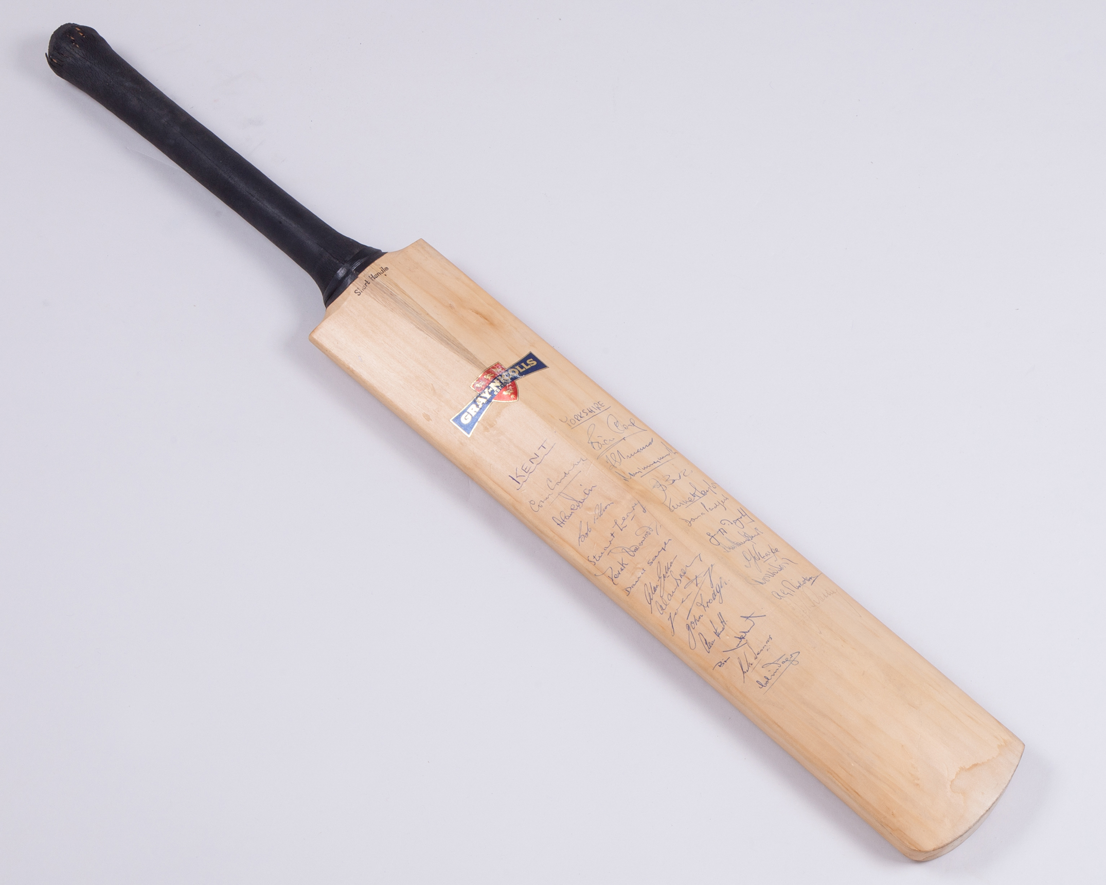 England, Kent and Yorkshire autographed Gray Nicolls cricket bat, with approximately forty-eight autographs including Colin Cowdrey, John Snow, Derek Underwood and Trevor Bailey etc.