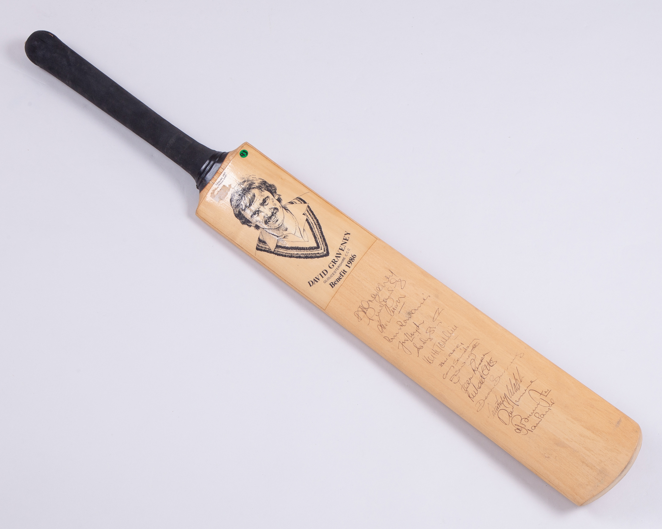 David Graveney Gloucestershire CCC Benefit 1986 autographed cricket bat