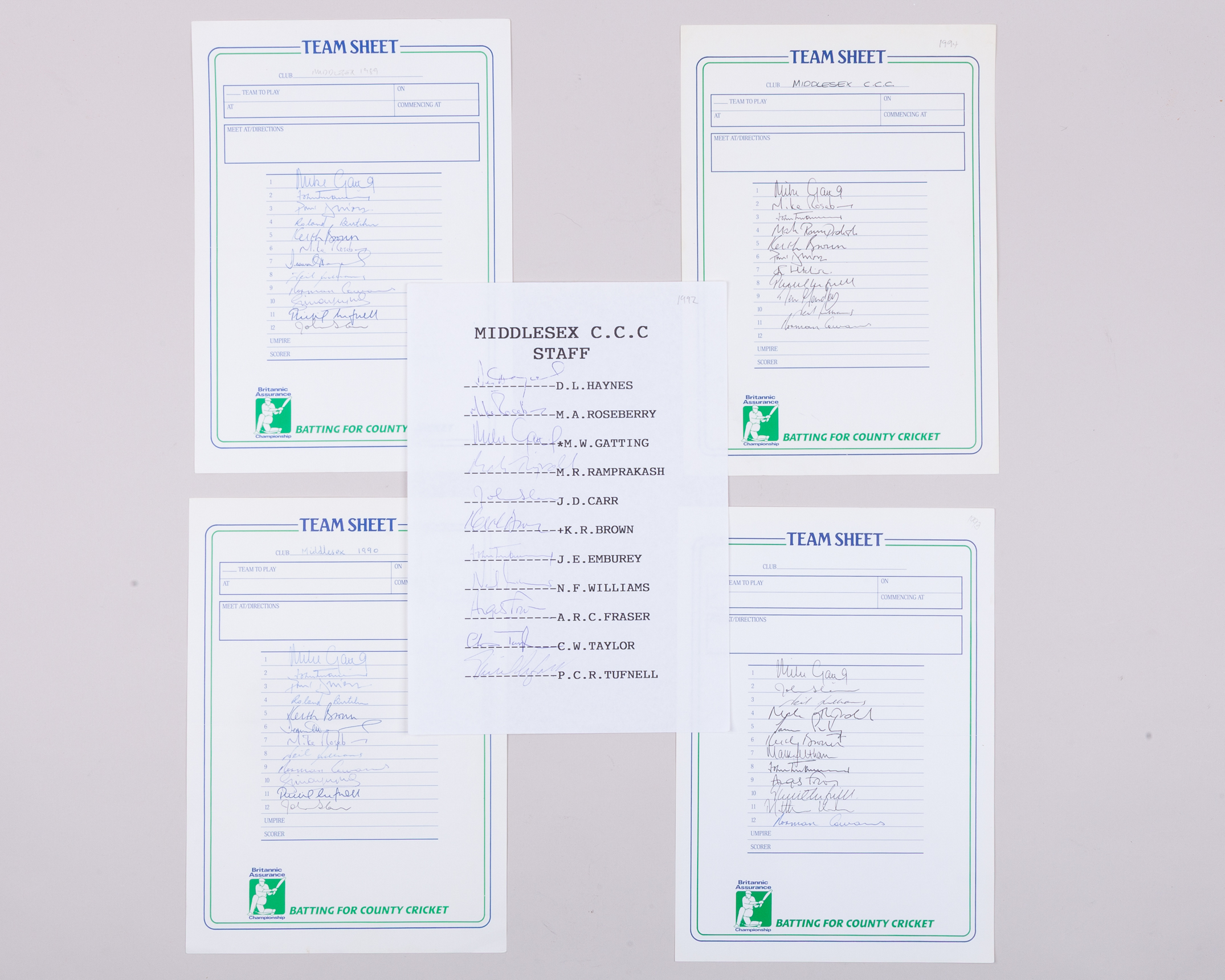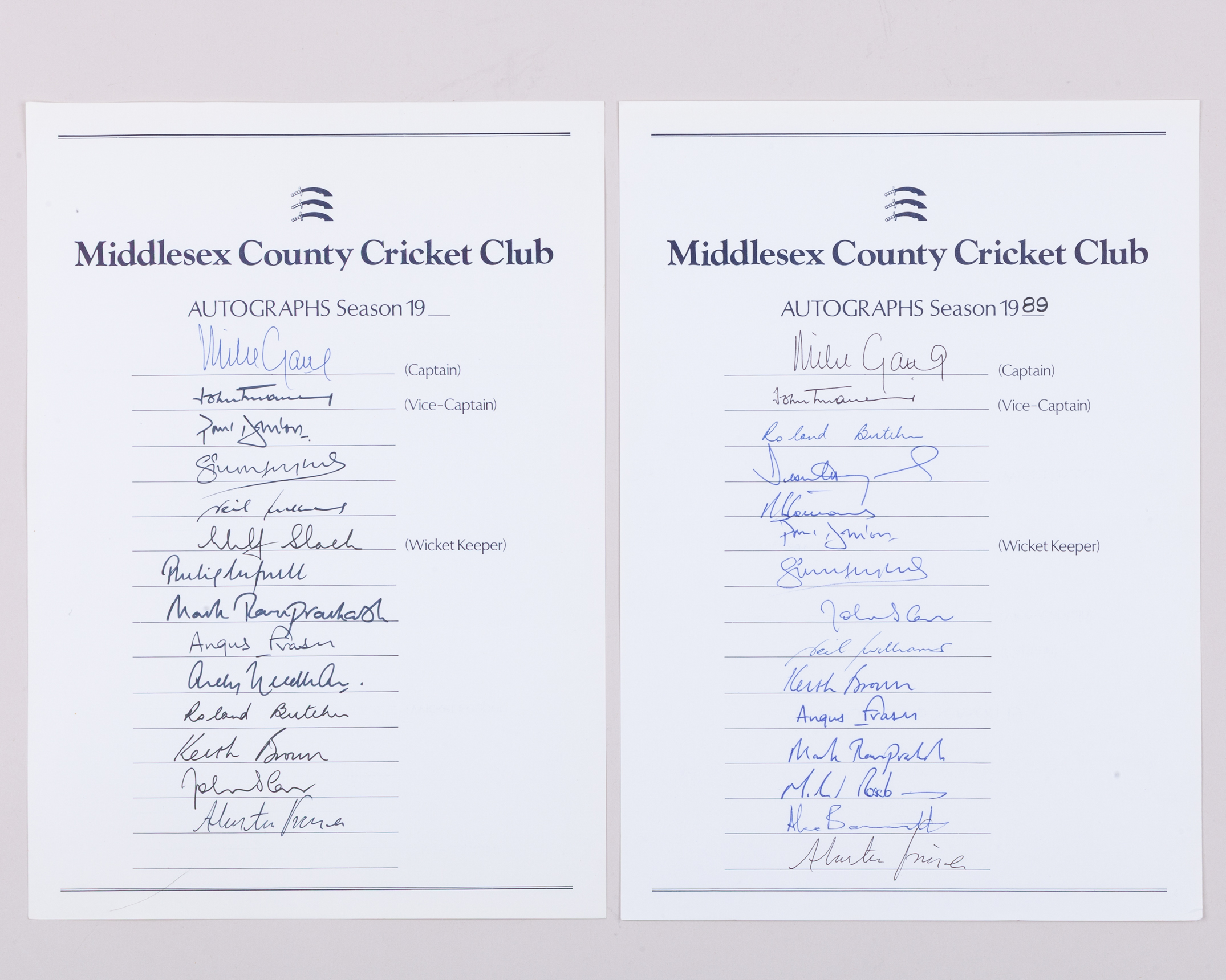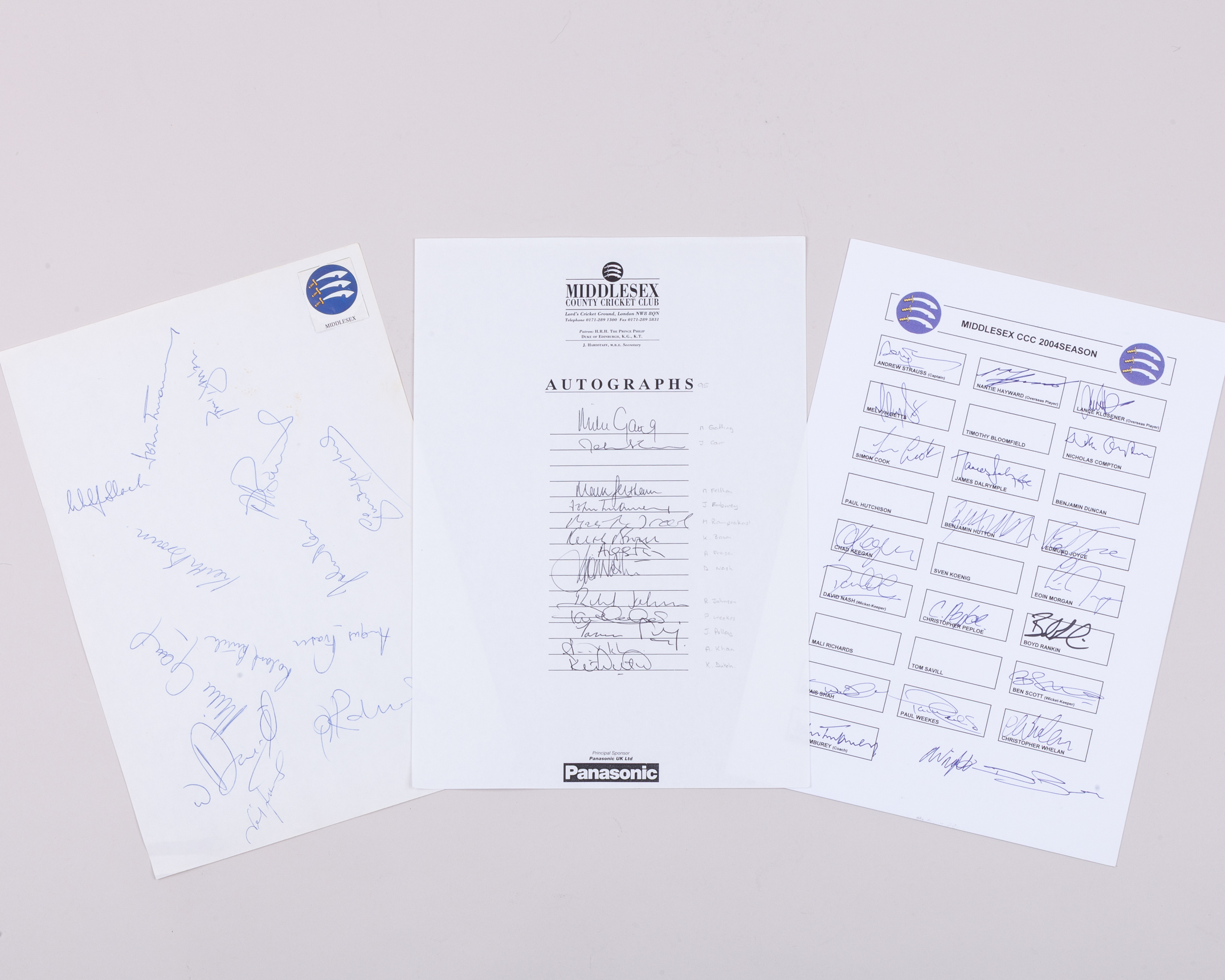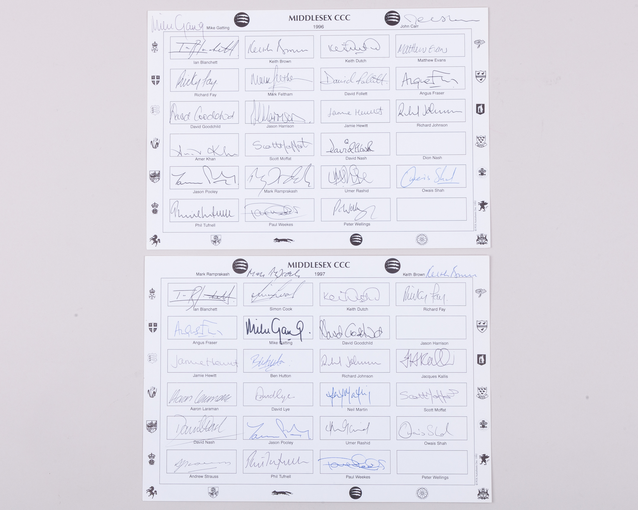Beyond the Boundary Cricket Live Auction Previous Next Lot 1522 Twelve Middlesex autographed team sheets, 1989 to 2004Current Bid:Estimate:£100 - £150Register to BidTwelve Middlesex autographed team sheets, 1989 to 2004