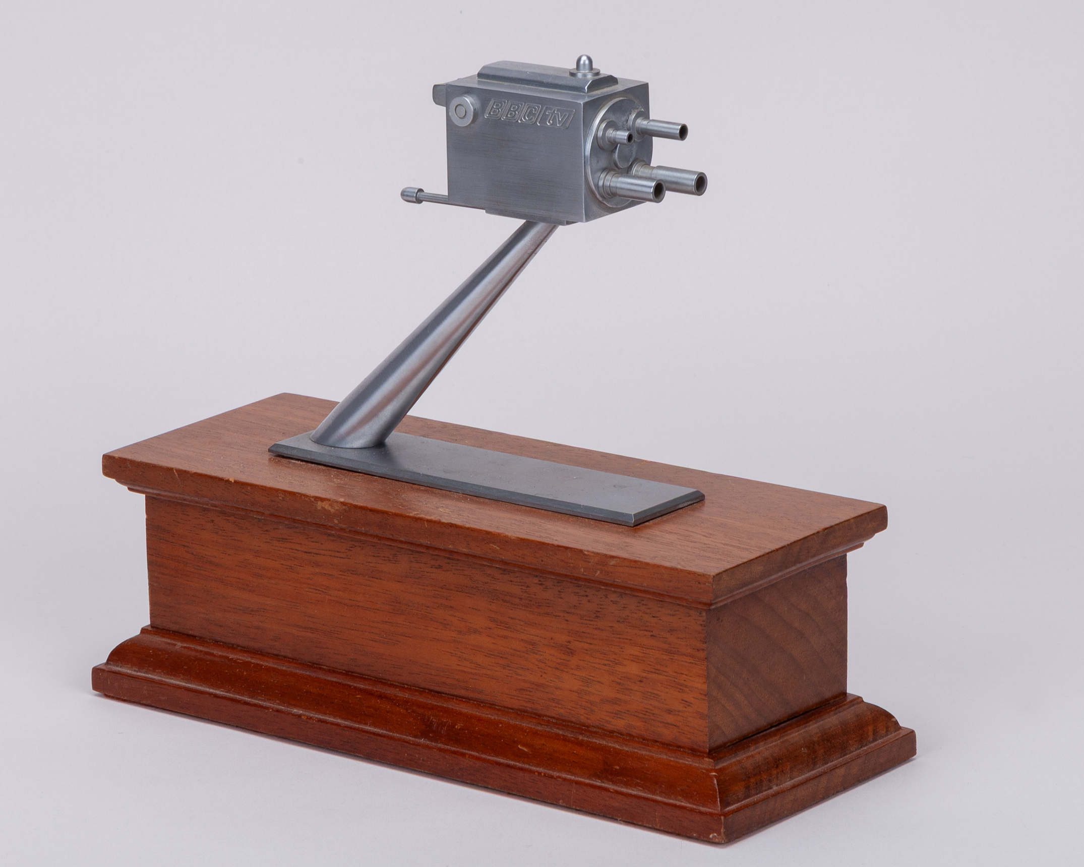 Ian Botham The Grandstand Cricket Award, 1979, in the form of a BBC TV camera on wooden plinth, with white-metal plaque inscribed THE GRANSTAND CRICKET AWARD, 1979, BBC TV SPORT IAN BOTHAM, 25cm high x 22cm high