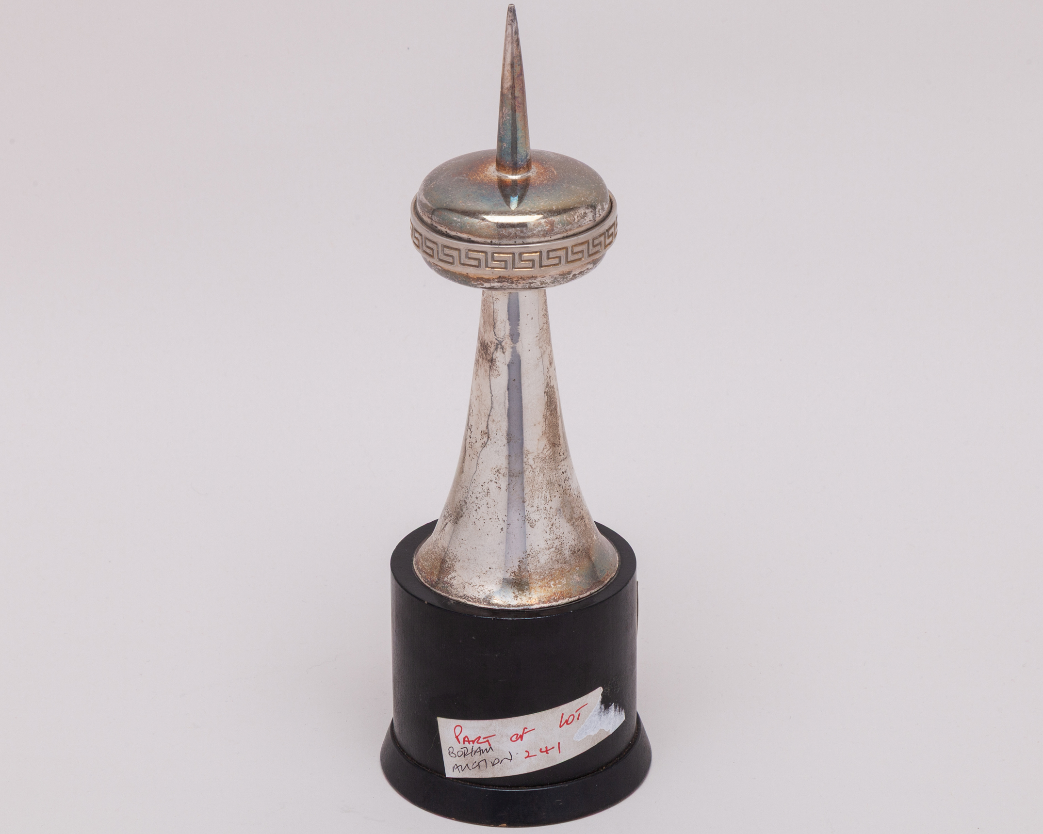 Ian Botham - a silver-plated Sportsman of the Month Award, 1979, with white-metal plaque inscribed THE SPORTSMAN'S Award of the Month, February 1979, Ian Botham, 26cm high