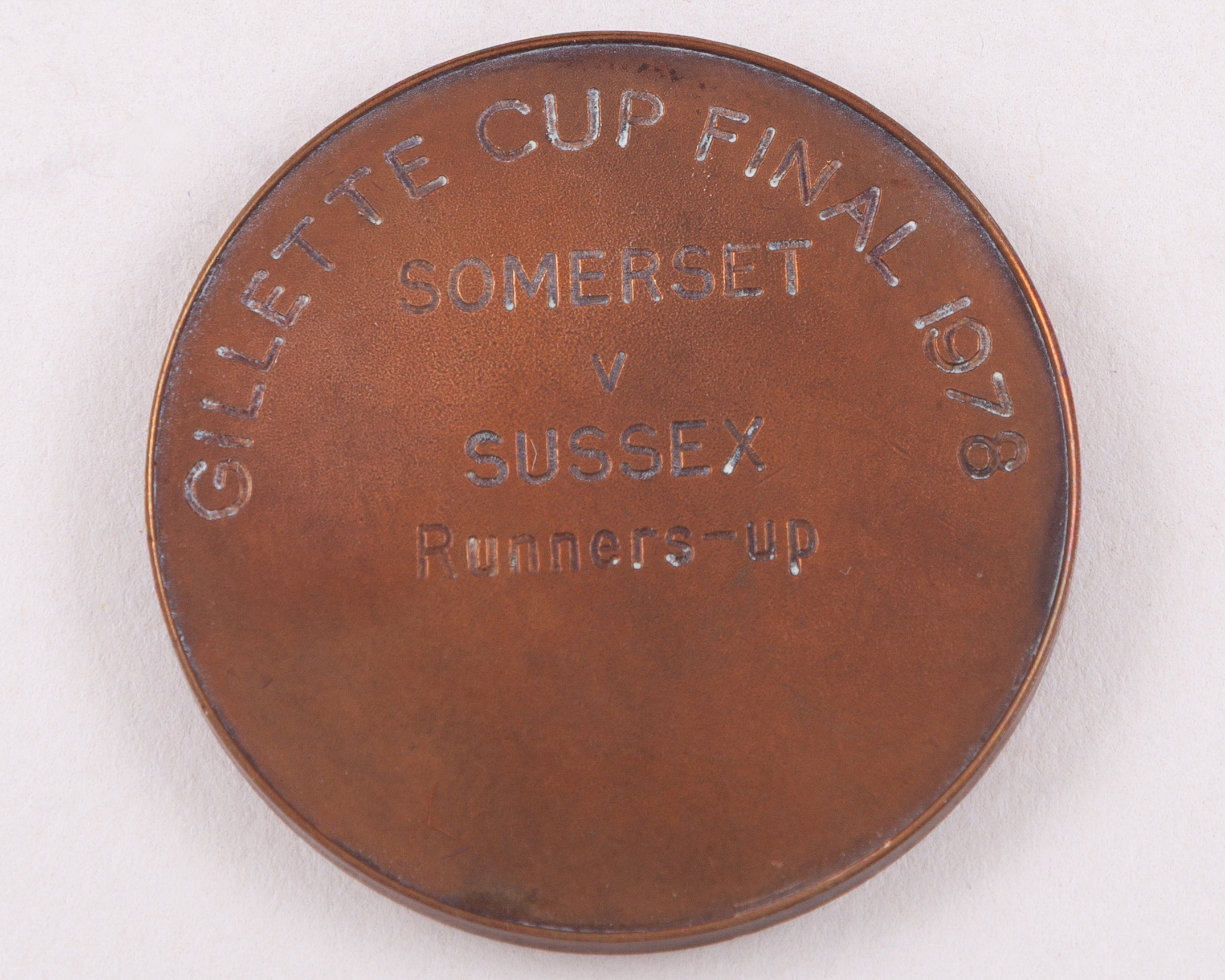 The medal awarded to Botham playing for Somerset against Sussex in the Gillette Cup Final played at Lord’s, 2nd September 1978, in their second appearance in a Gillette Cup Final, Somerset lost to Sussex by five wickets. Botham top scored in the match with 80, and took 2/65 of his twelve overs