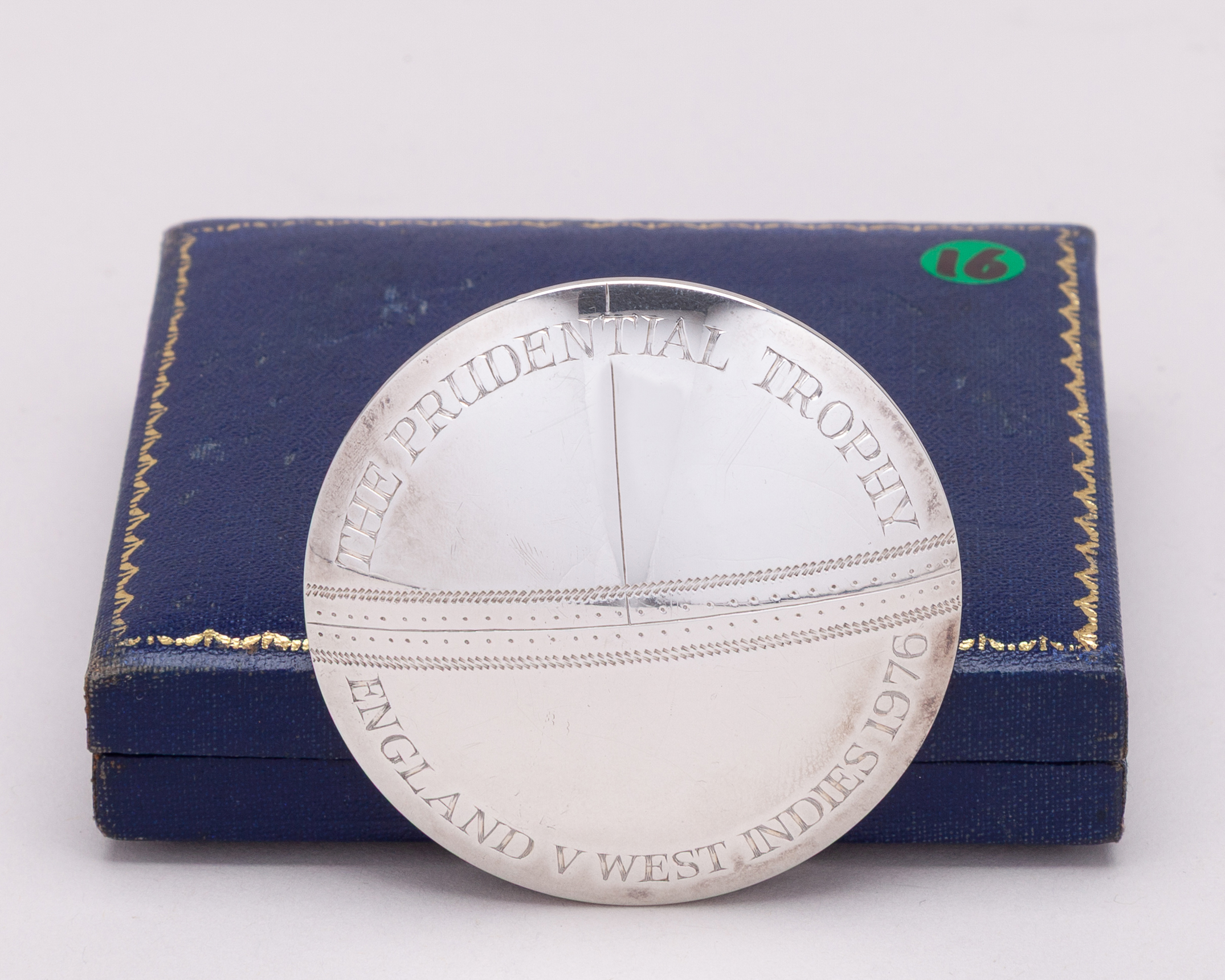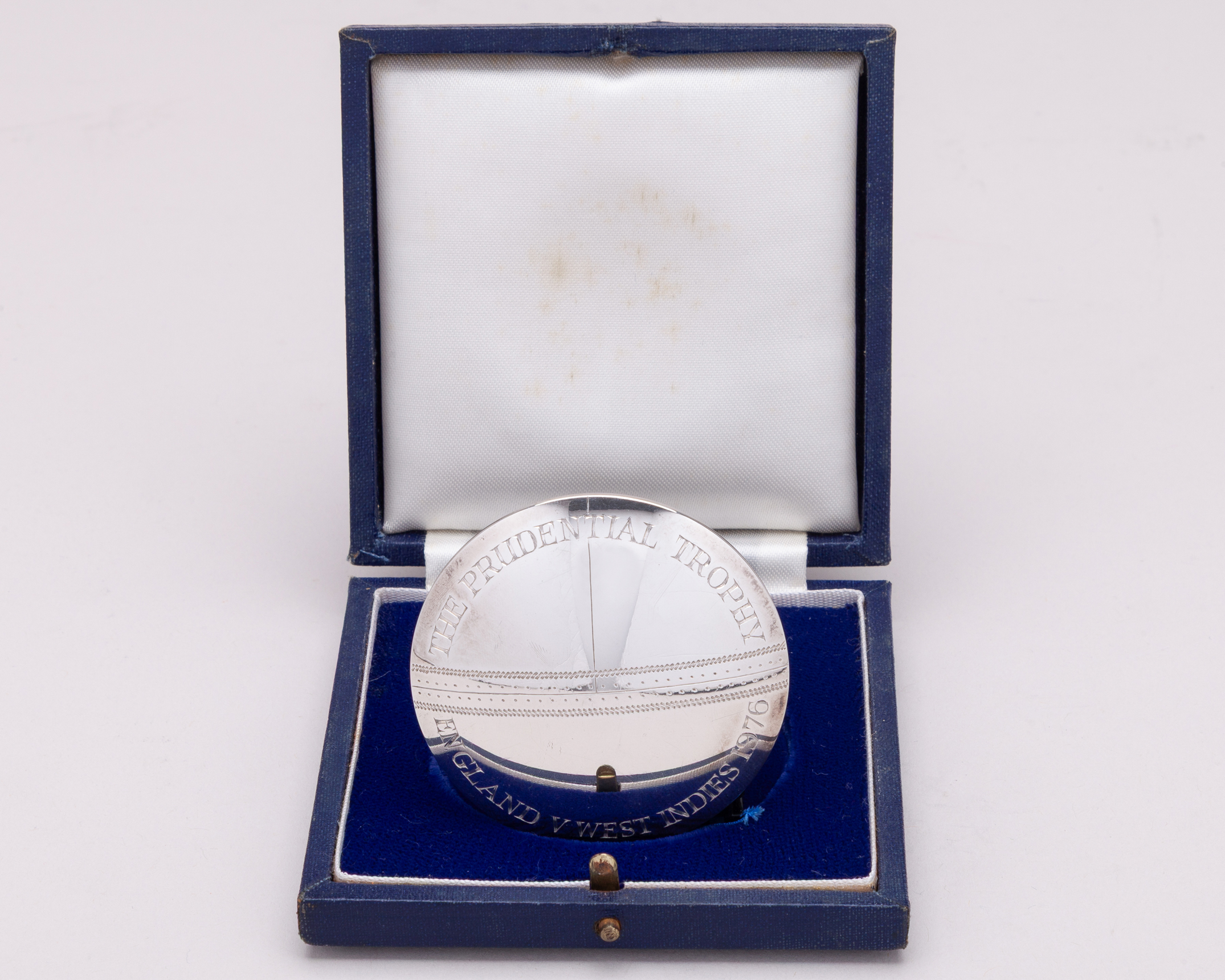 Ian Botham - silver medal, the obverse inscribed The Prudential Trophy, England v West Indies 1976, the medal formed a cricket ball was presented to Botham for the one day international series, in original fitted case