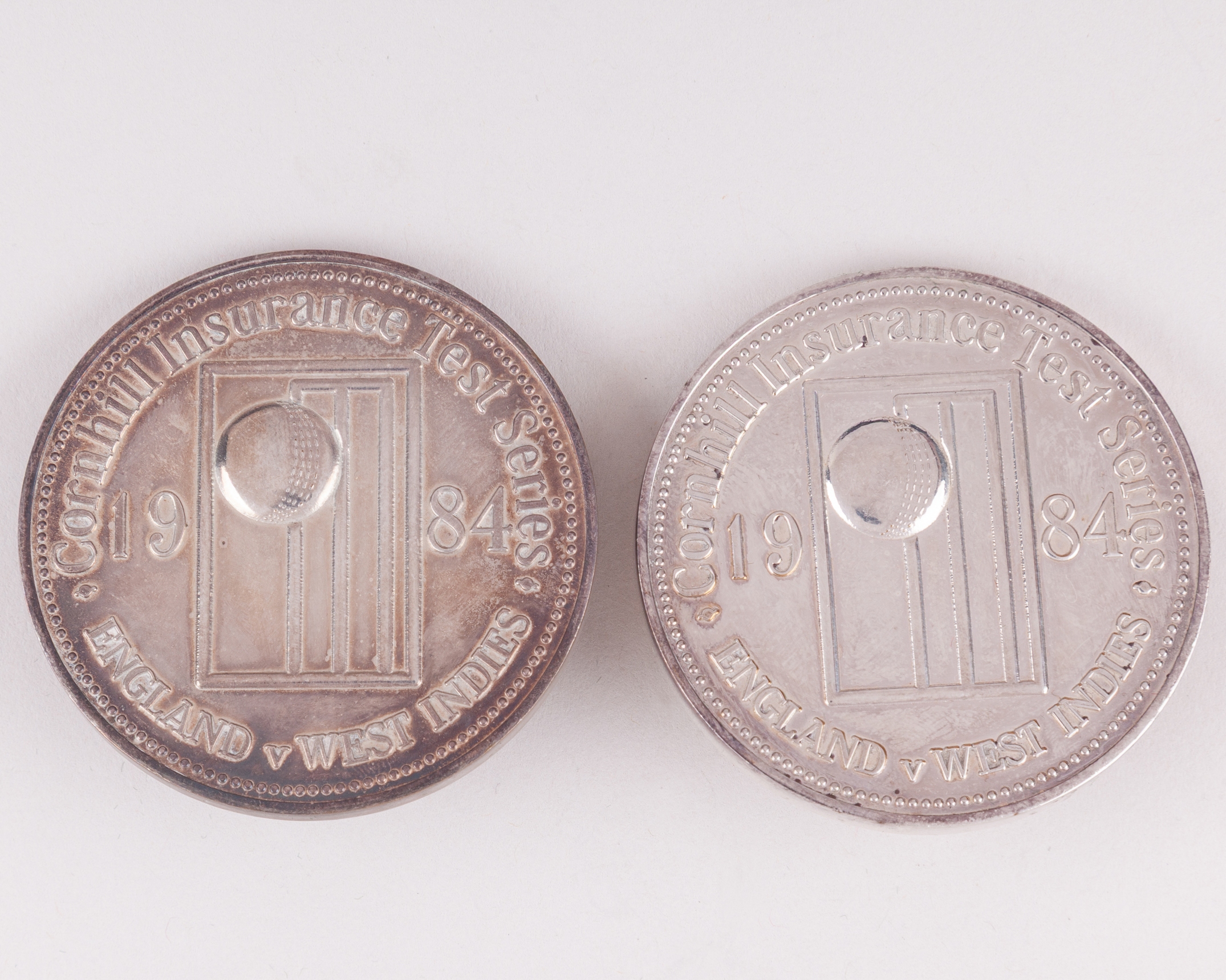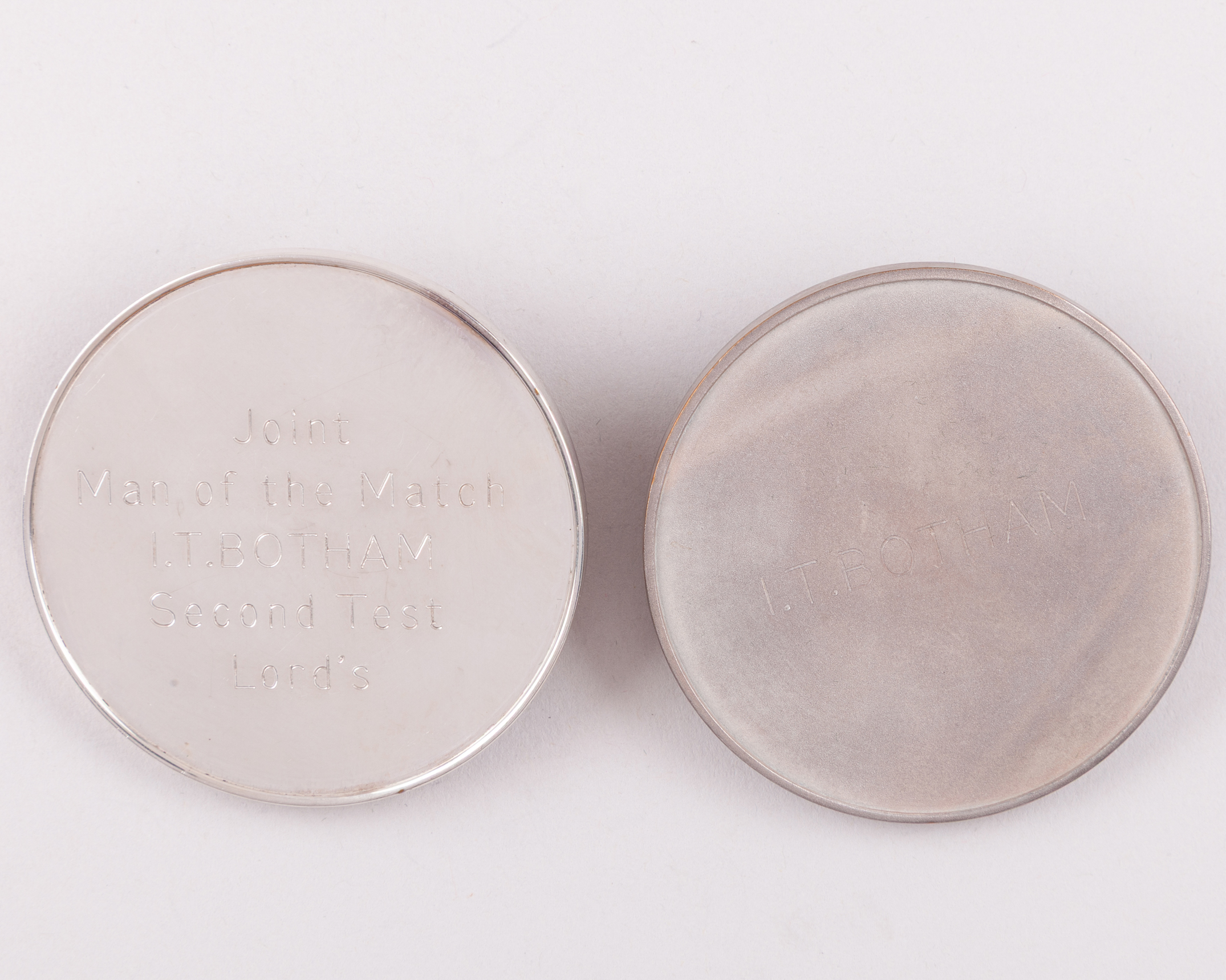 Ian Botham - two white-metal England v. West Indies Test Series medals, 1984